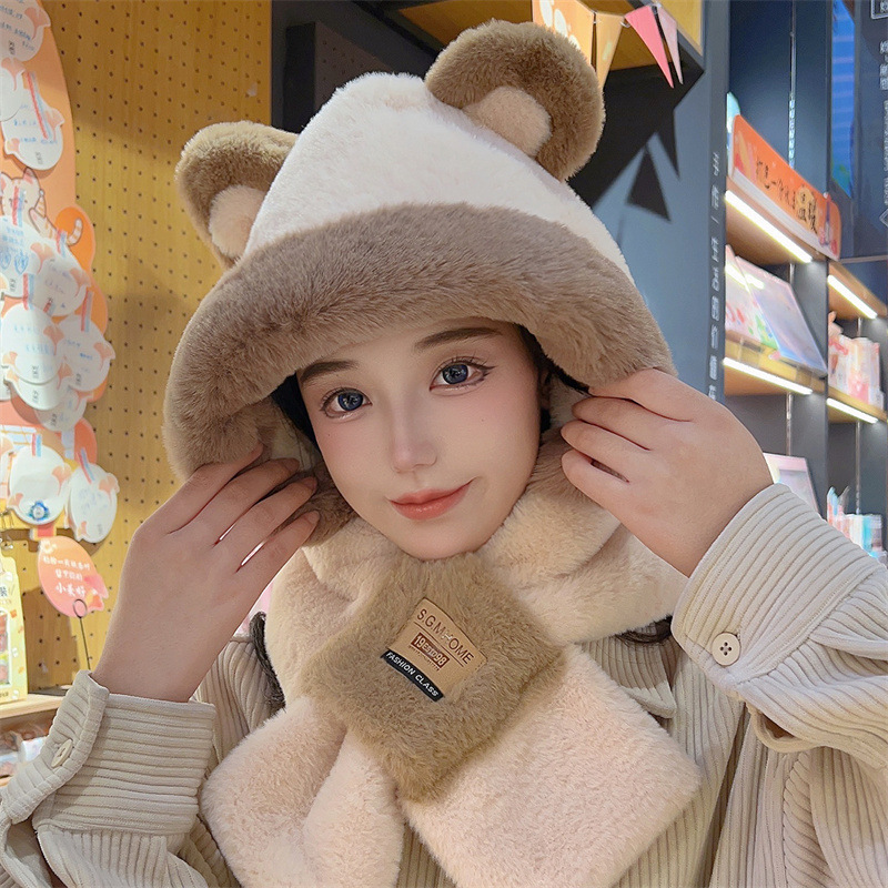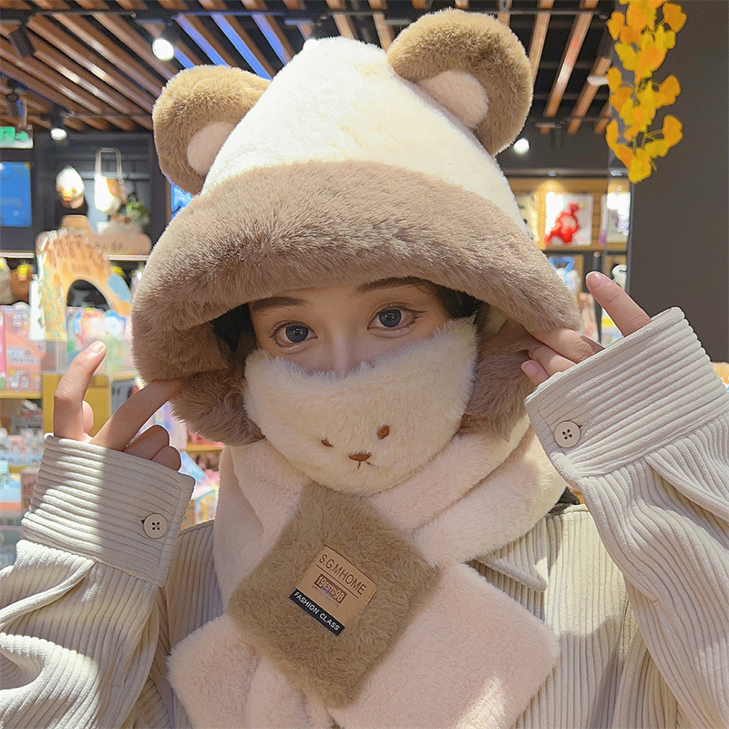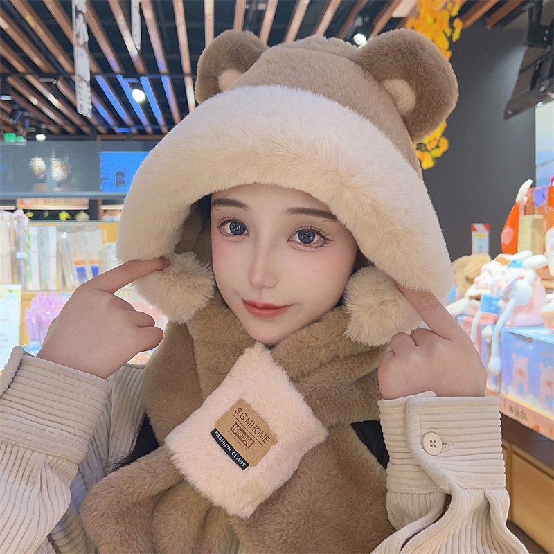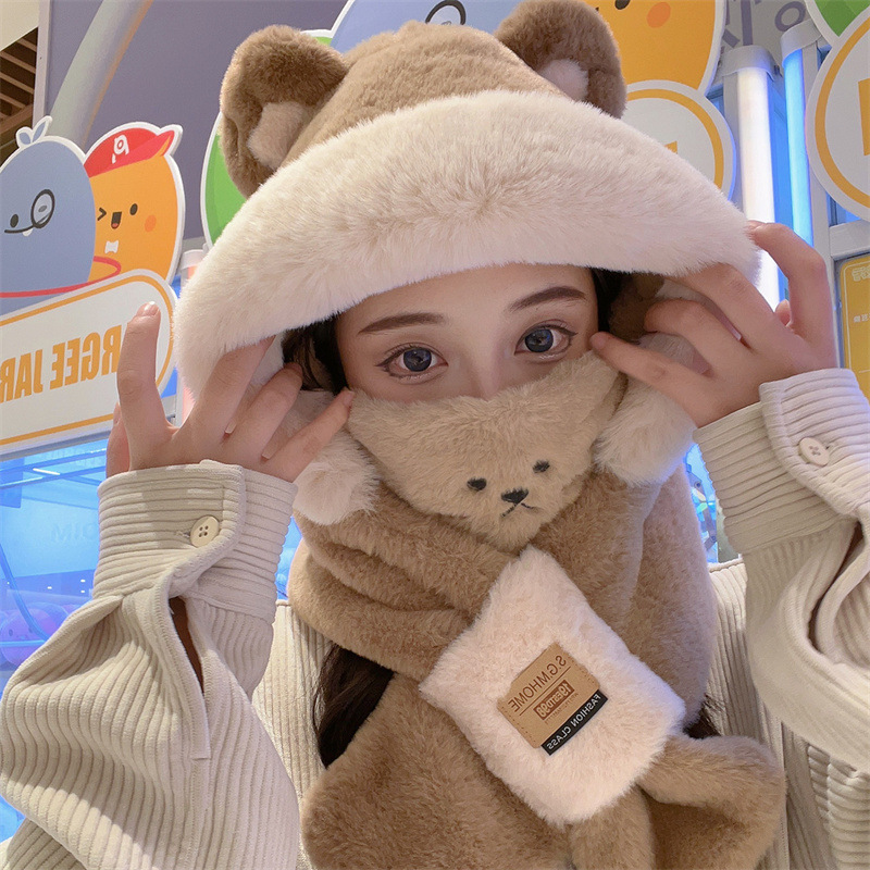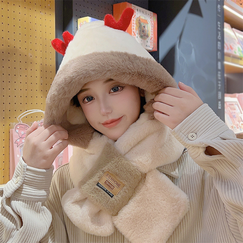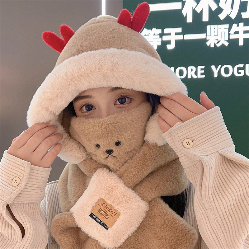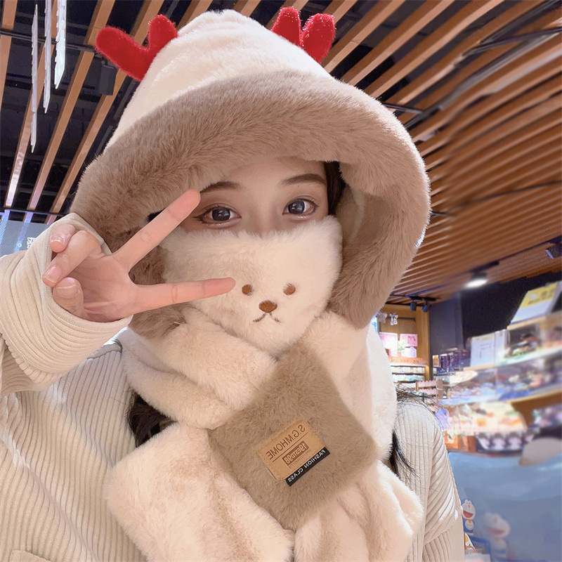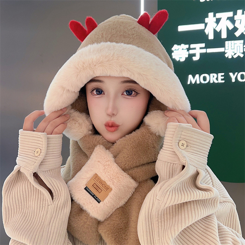 모자 여자의 겨울 따뜻한 귀여운 스카프 봉제 모자 크리스마스 새끼 사슴 장갑 스카프 원피스 세트 모든 매치 겨울스토어 가기