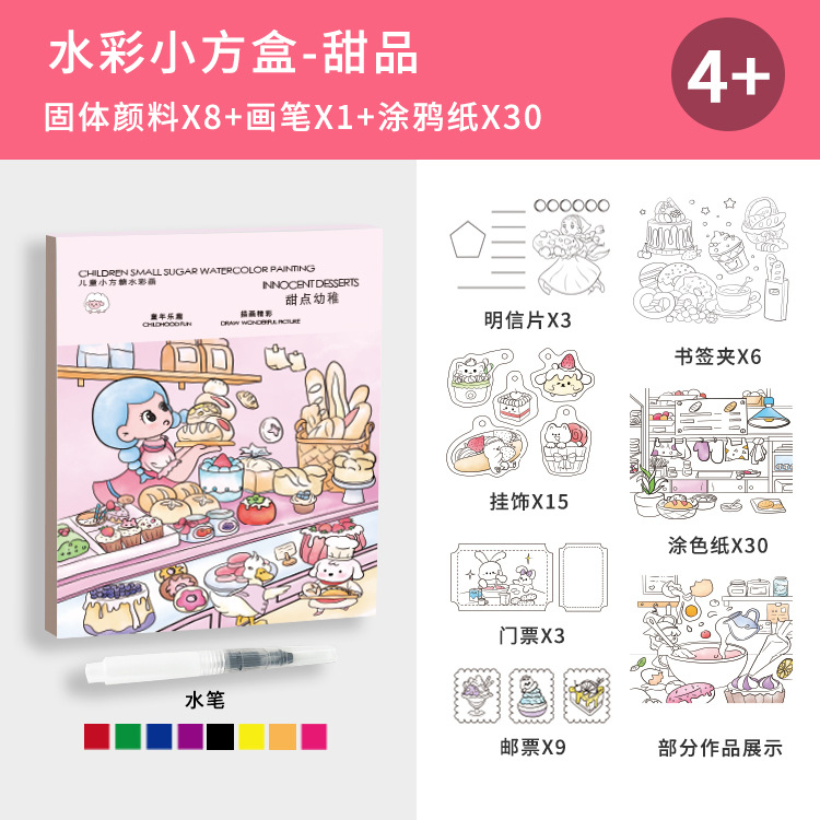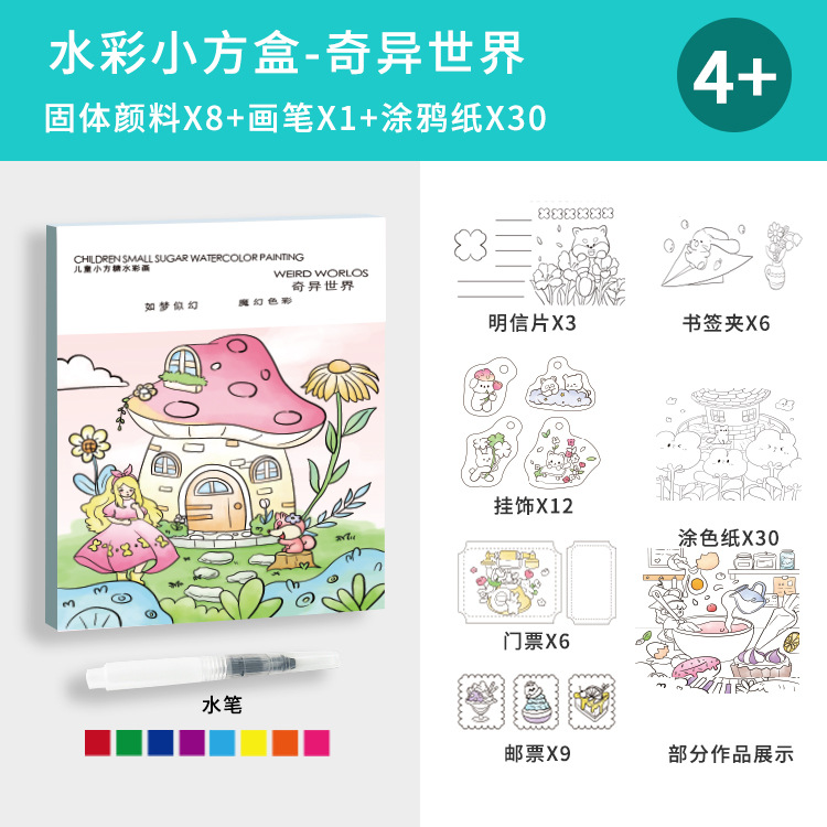 작은 정사각형 상자 수채화 색칠 공부 책, 물감과 수성펜 포함, 어린이 학생 미술 낙서판, 휴대용스토어 가기