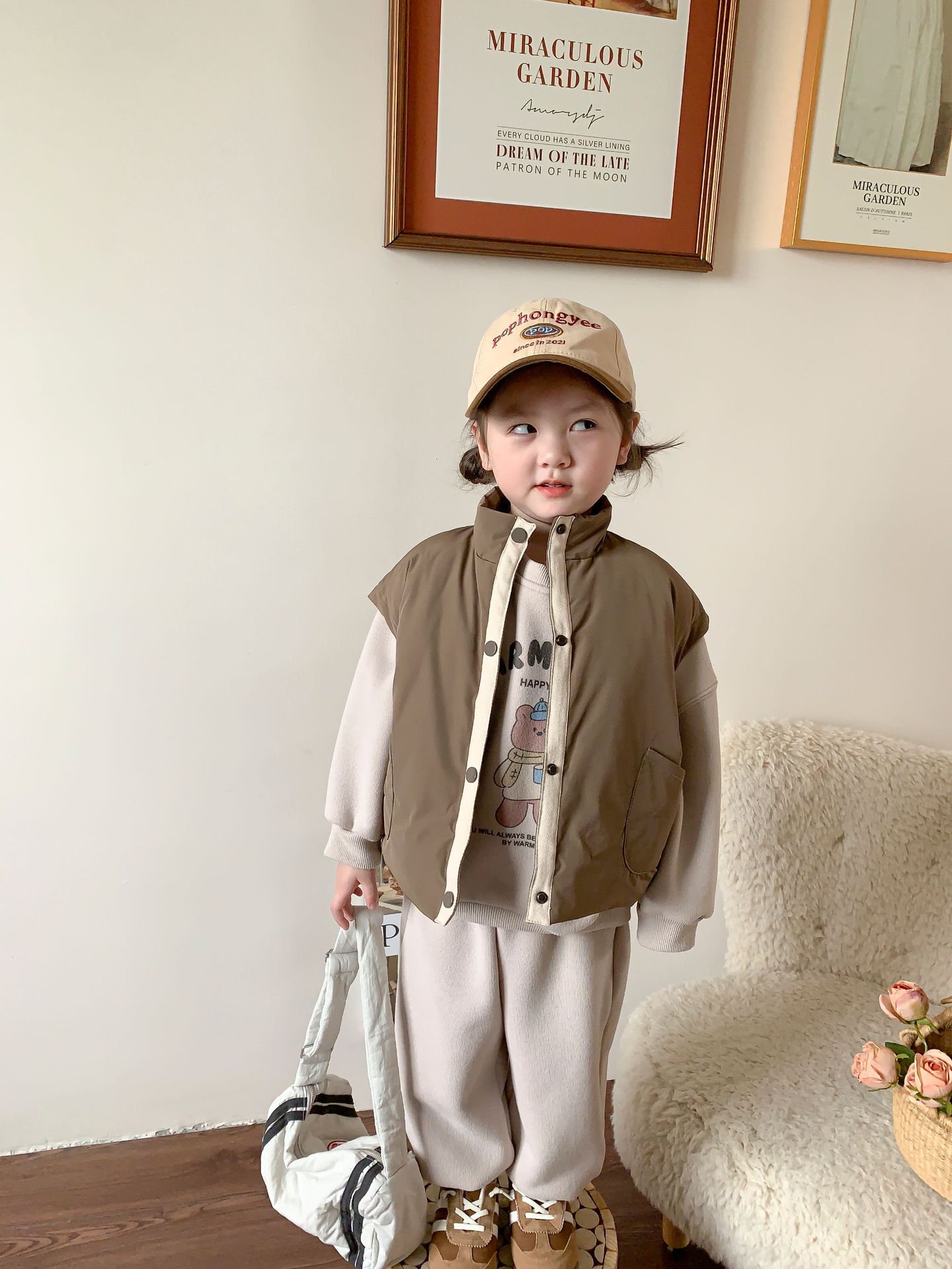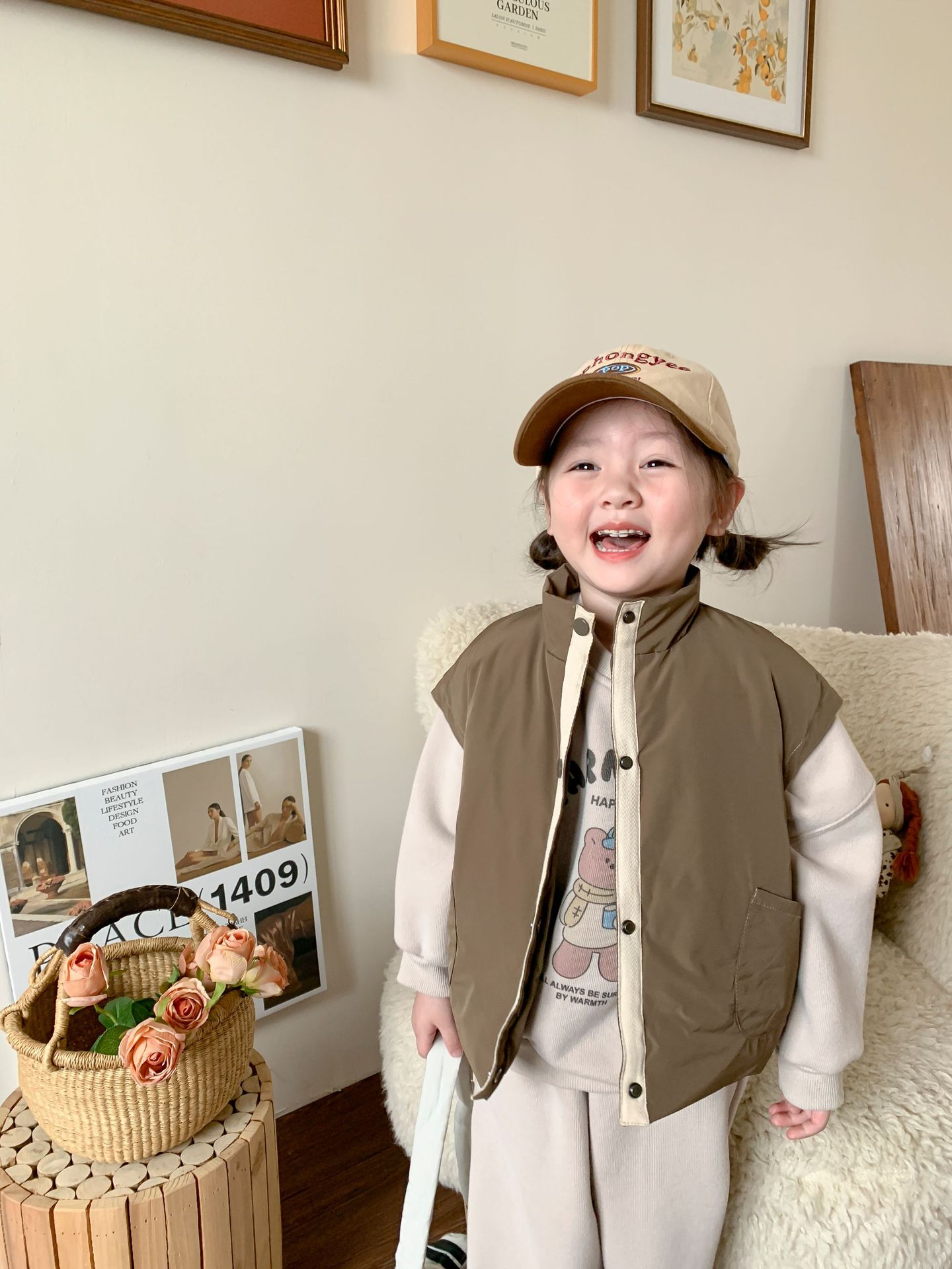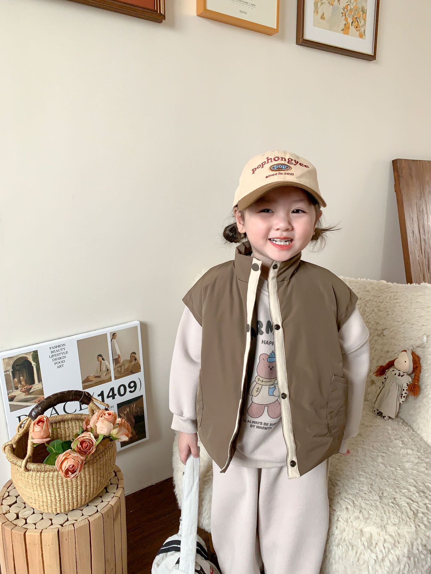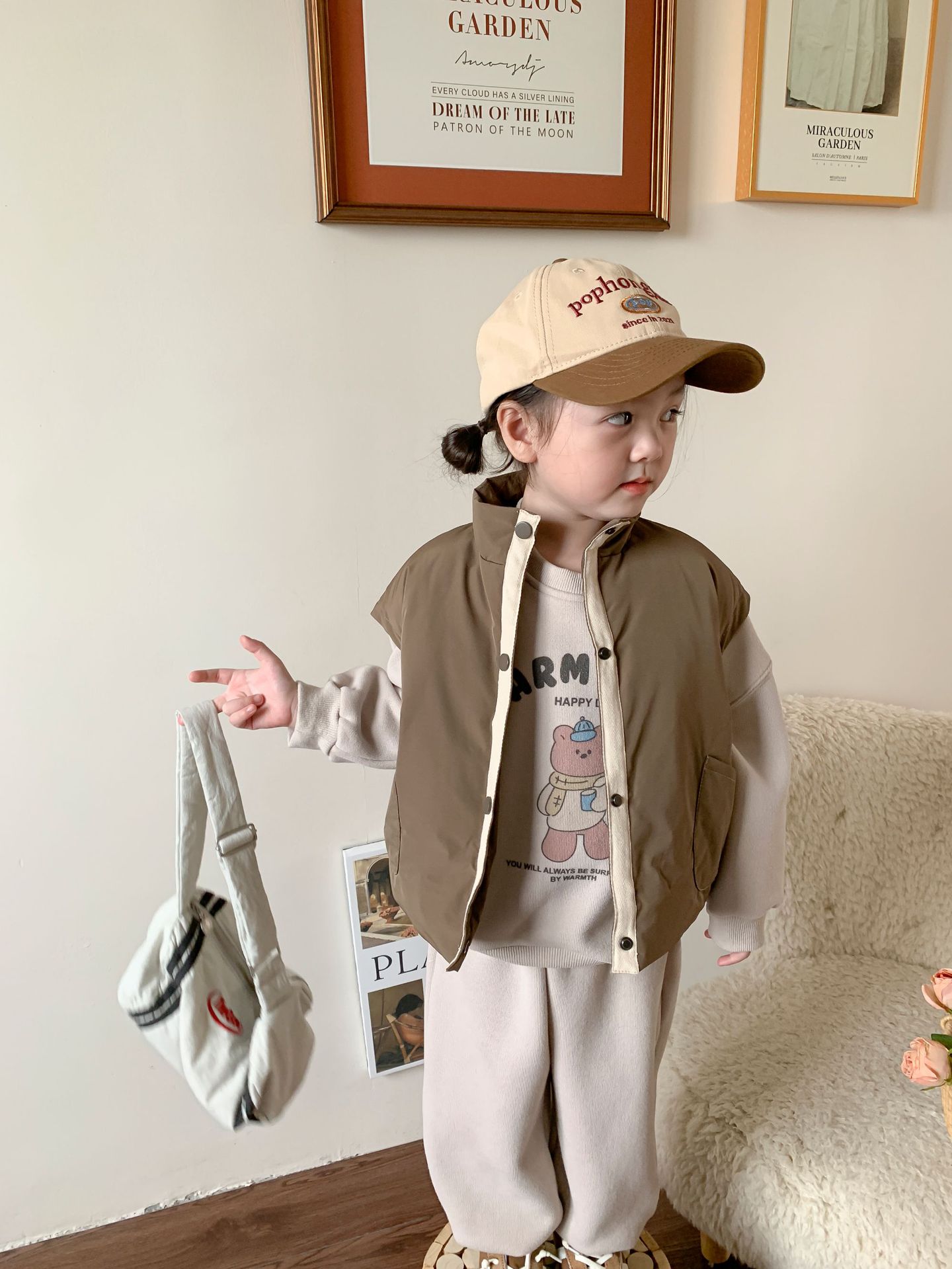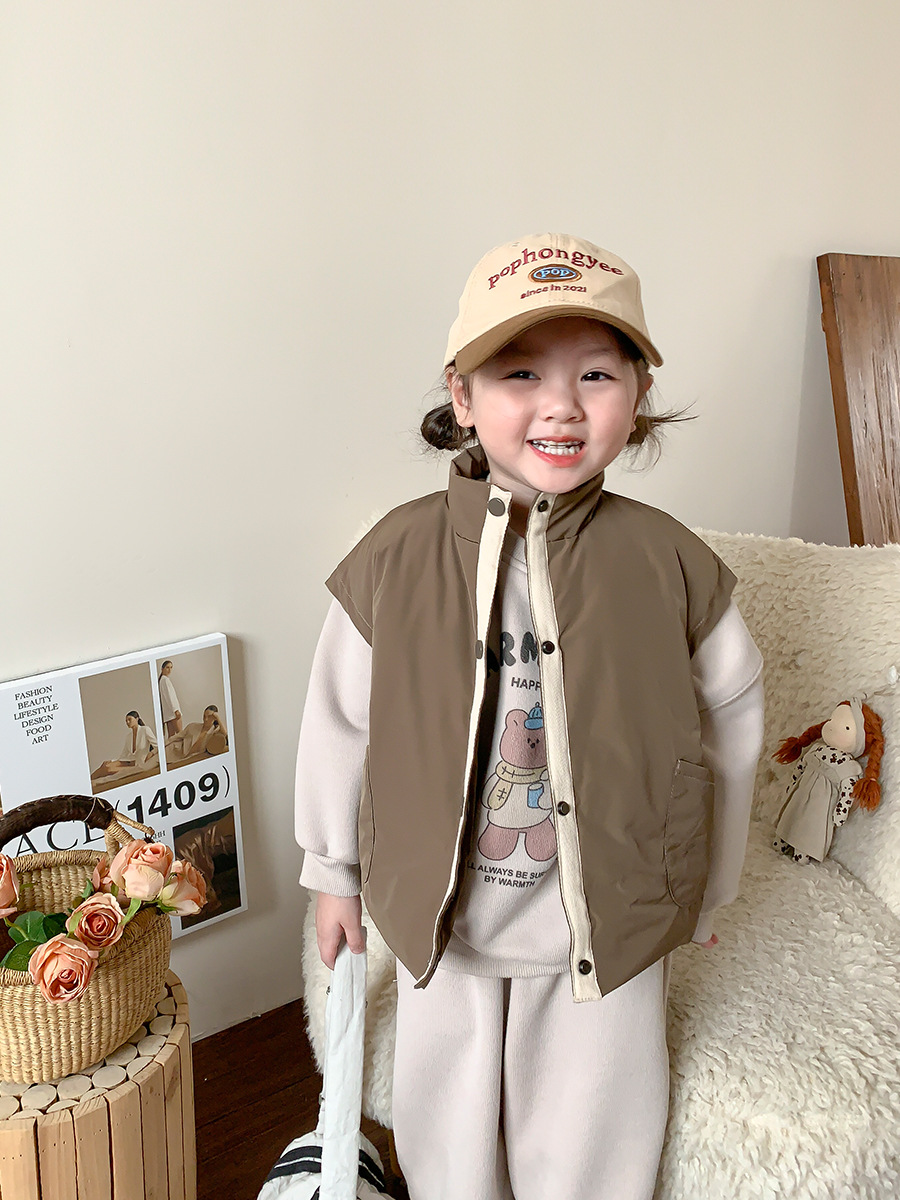 재고정리】웨이무 아동복 어린이 조끼 누빔 두꺼운 가을 겨울 남아 여아 가디건 상의 여자 아기 옷