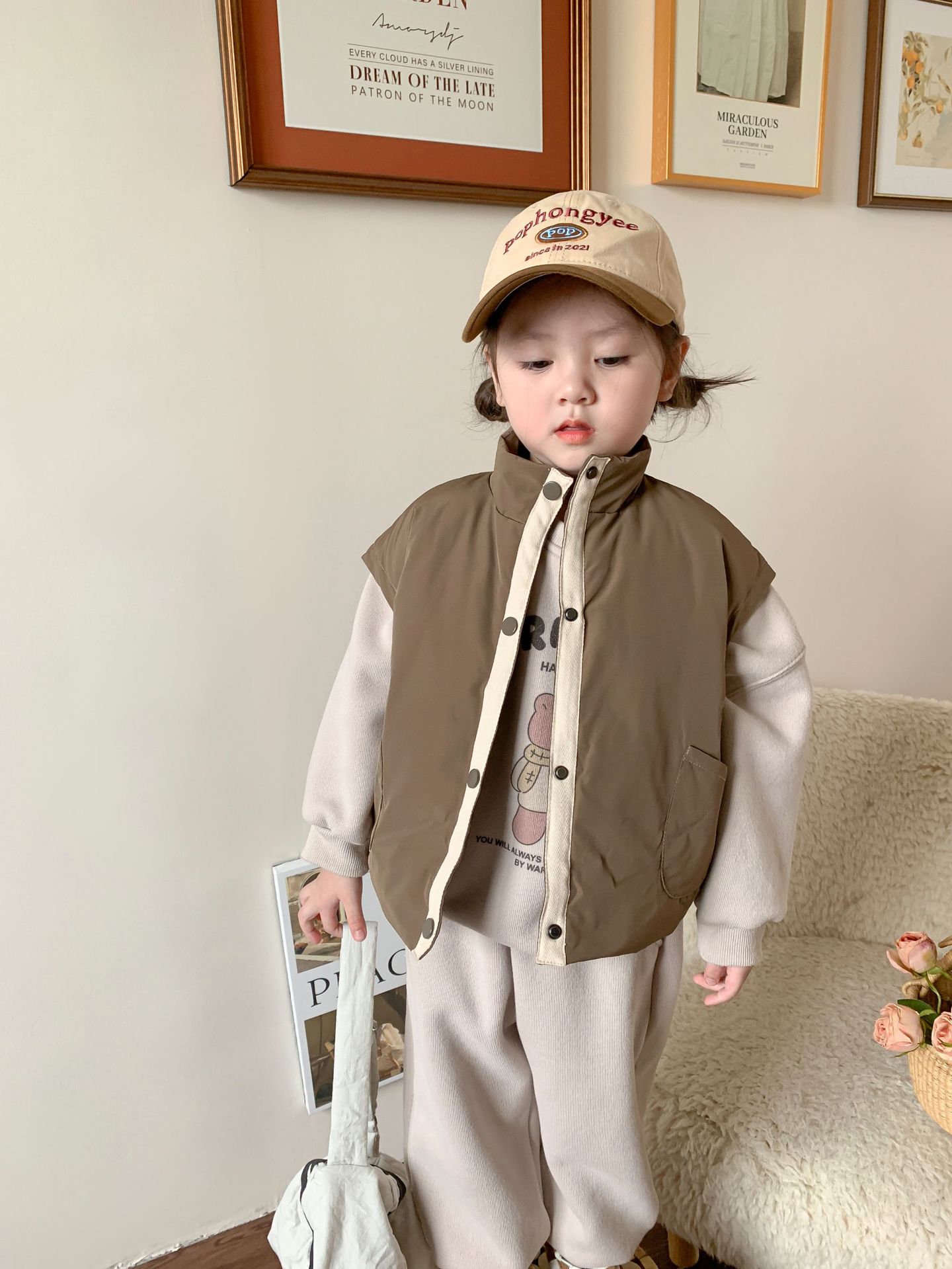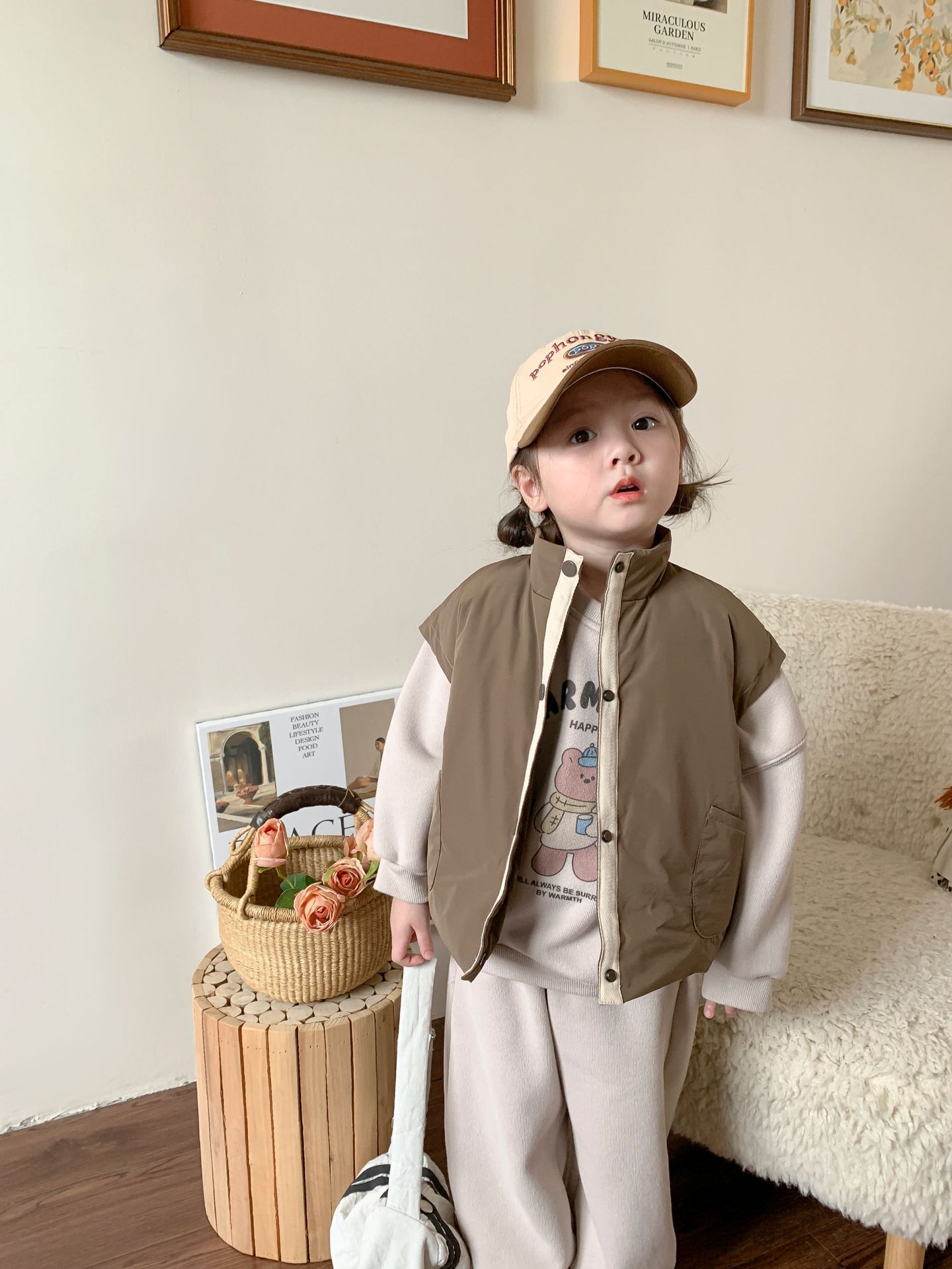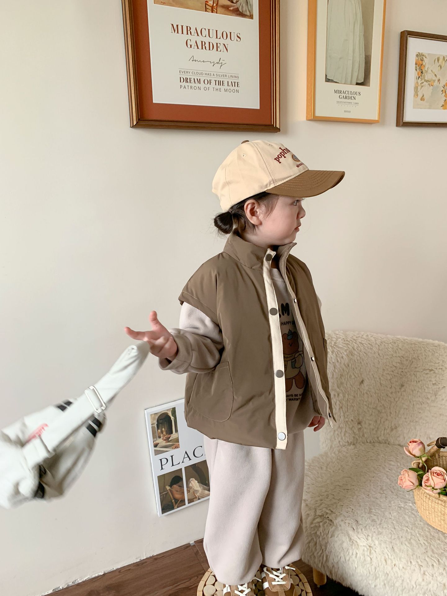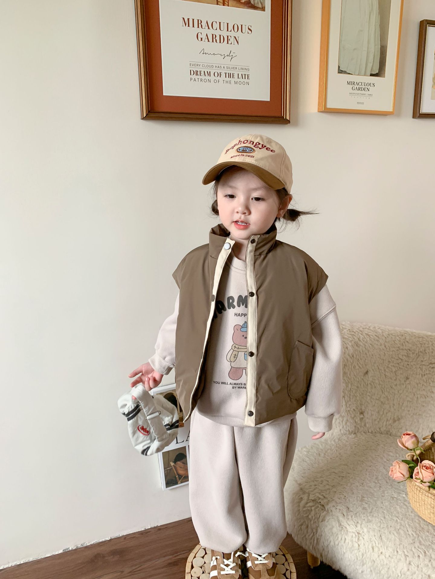 재고정리】웨이무 아동복 어린이 조끼 누빔 두꺼운 가을 겨울 남아 여아 가디건 상의 여자 아기 옷