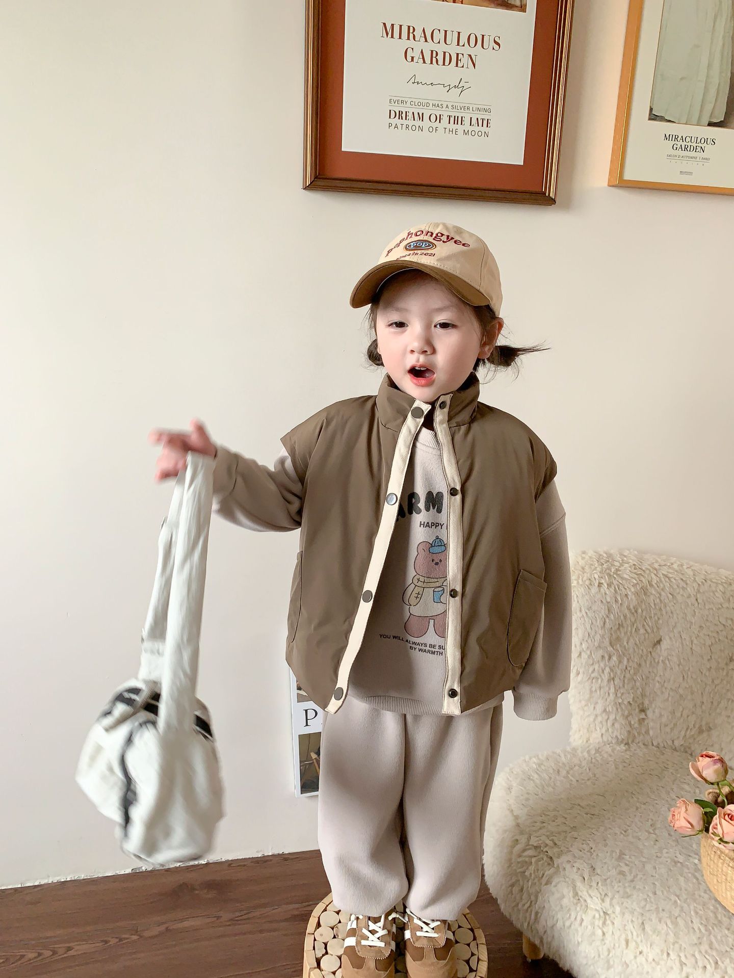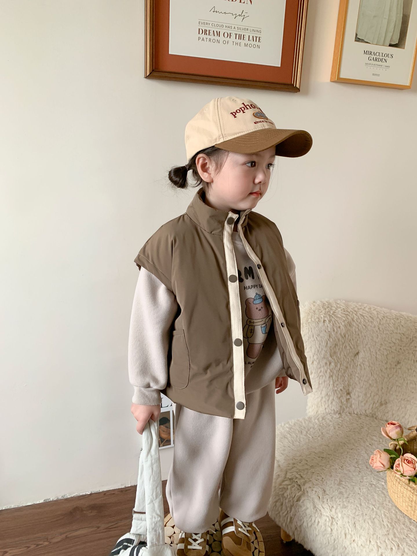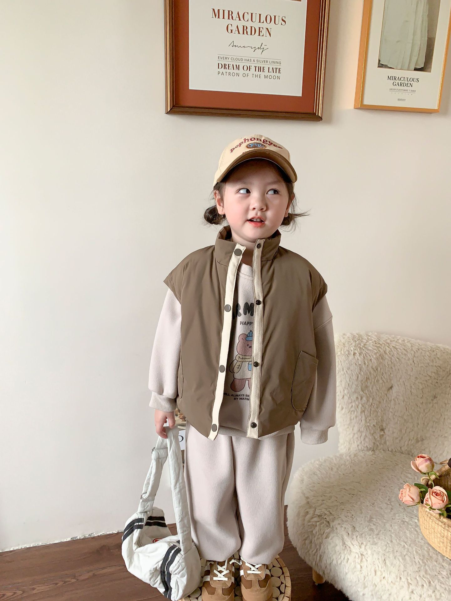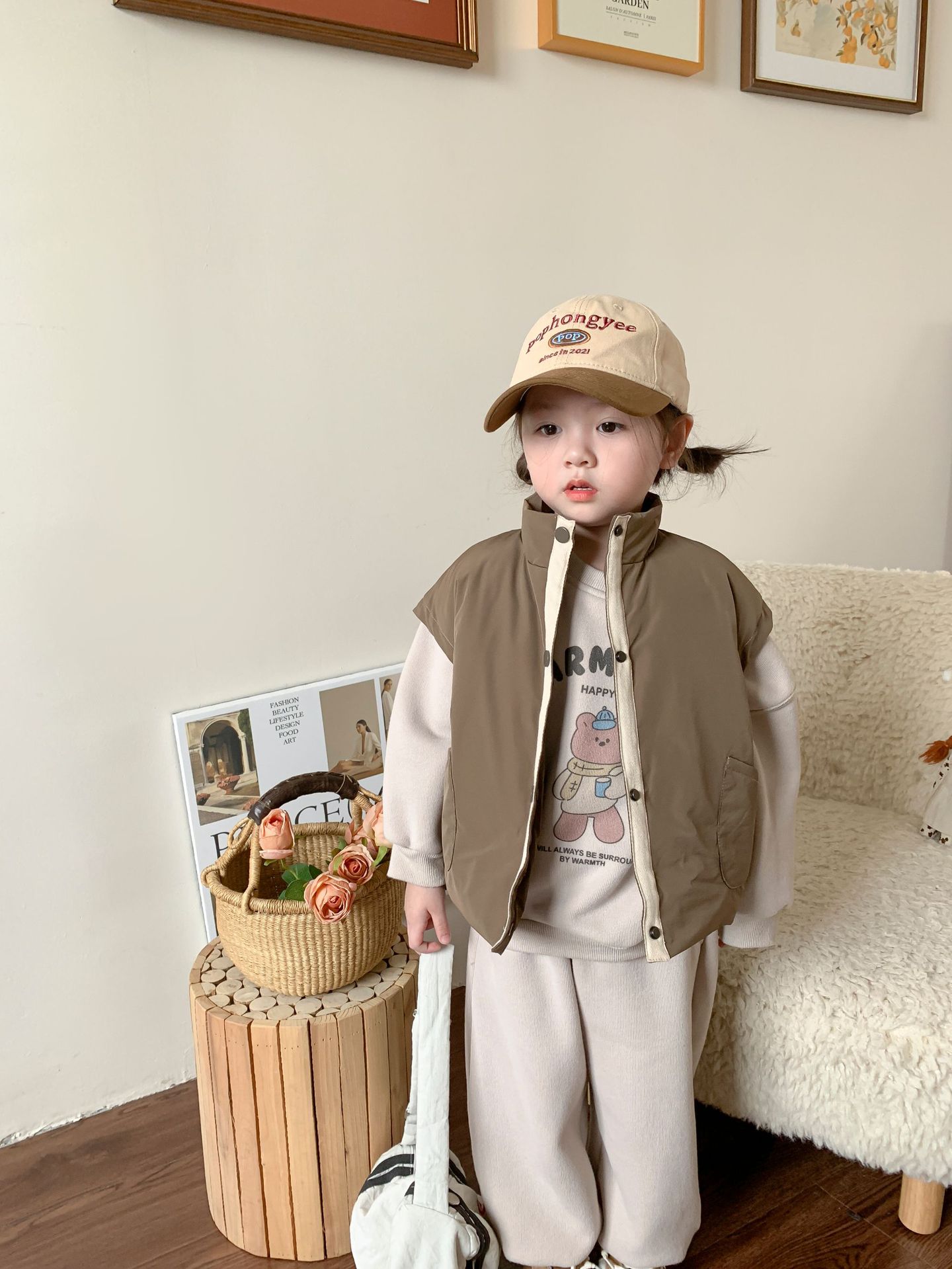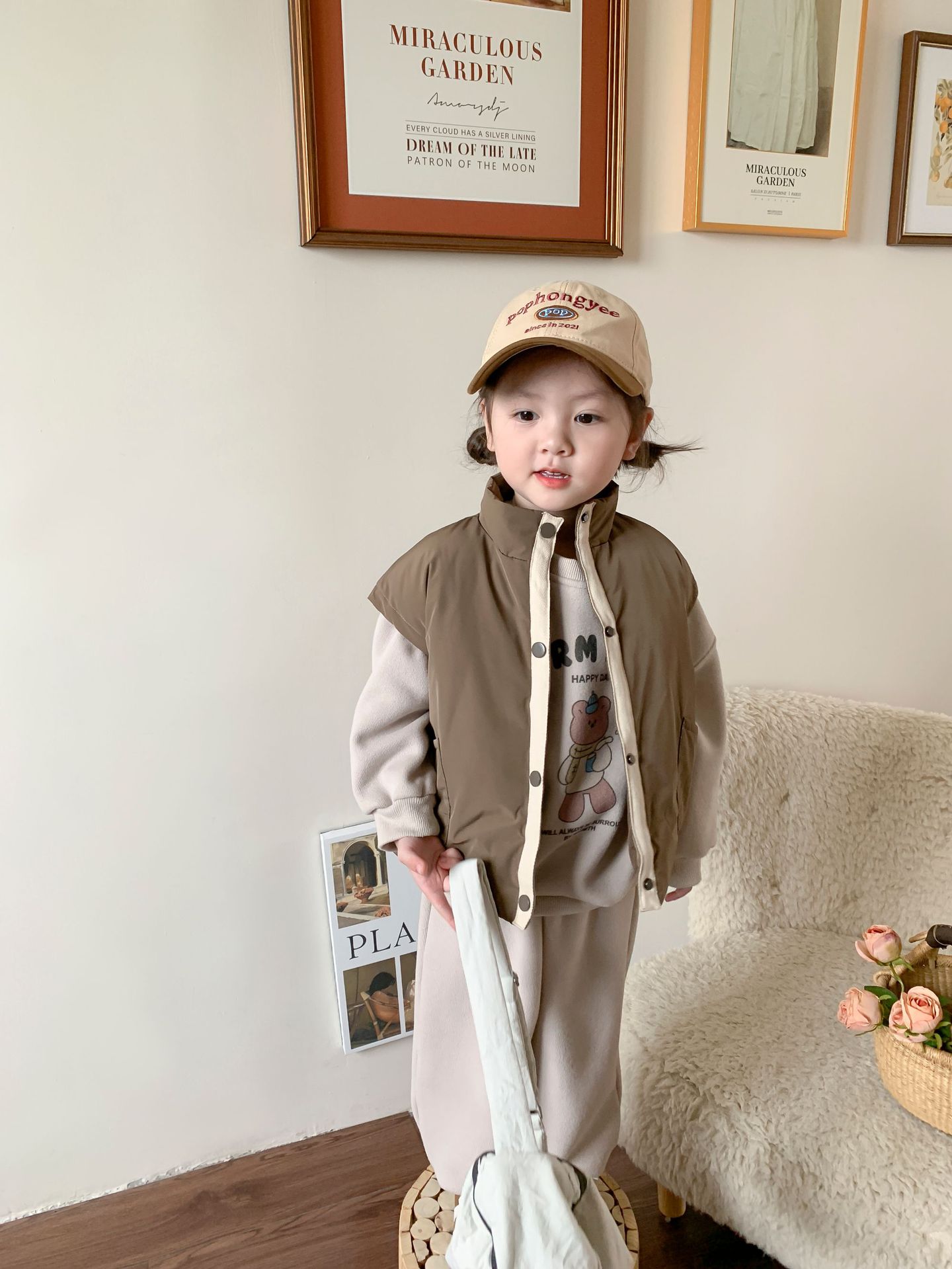 재고정리】웨이무 아동복 어린이 조끼 누빔 두꺼운 가을 겨울 남아 여아 가디건 상의 여자 아기 옷