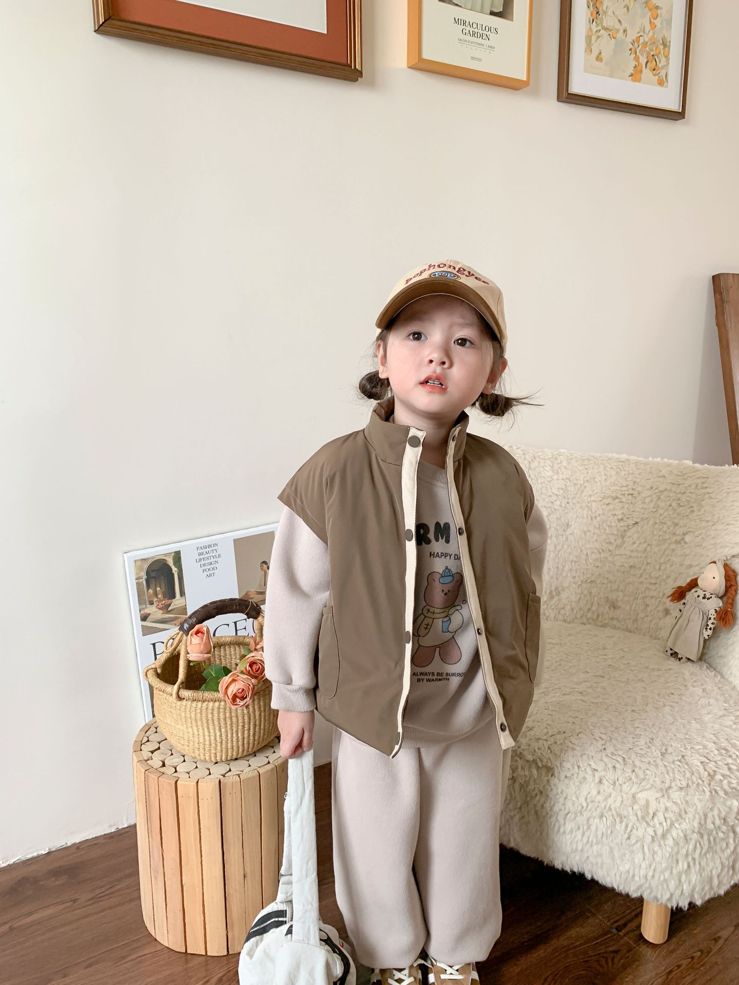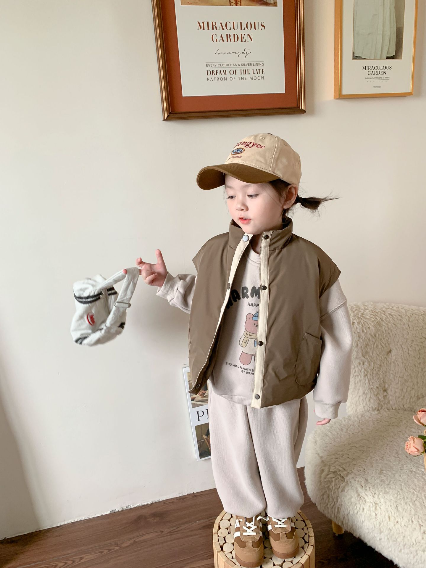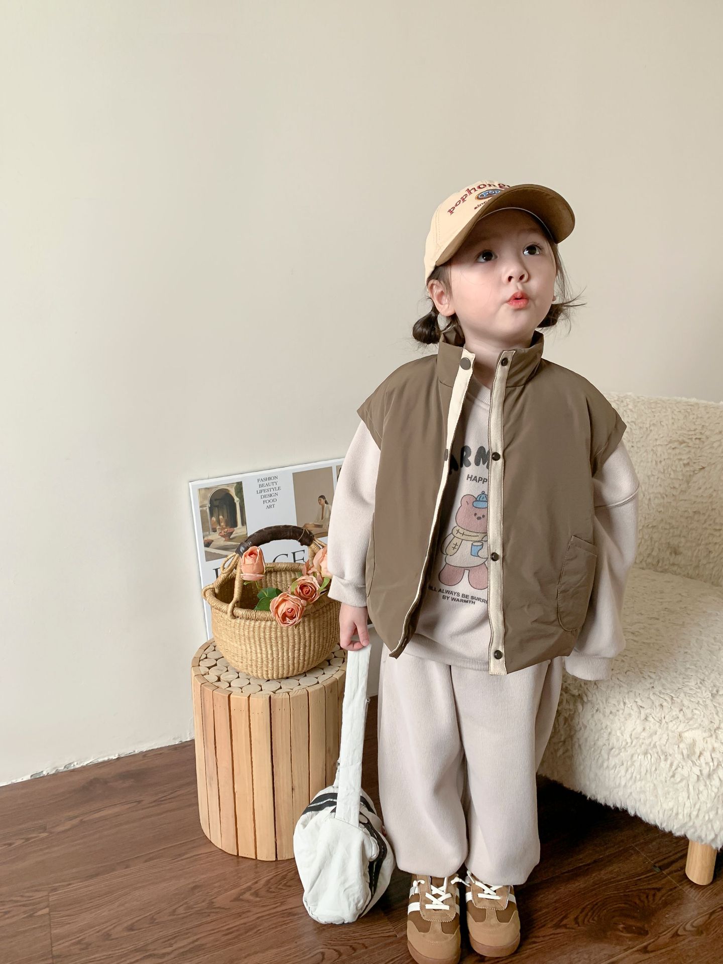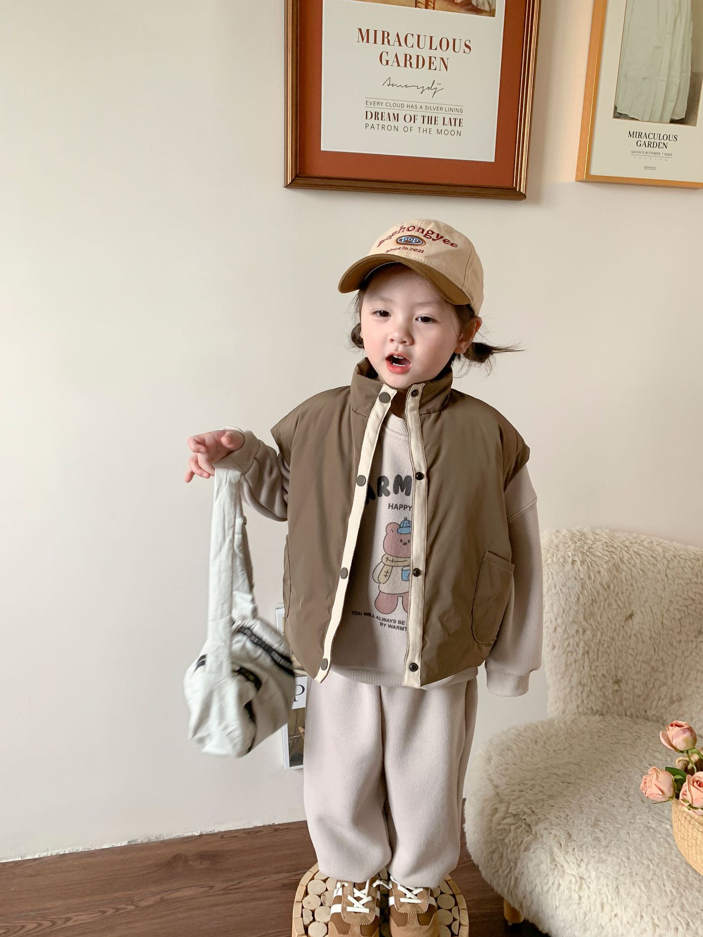 재고정리】웨이무 아동복 어린이 조끼 누빔 두꺼운 가을 겨울 남아 여아 가디건 상의 여자 아기 옷