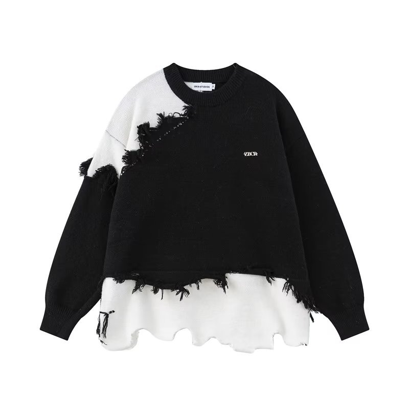 레트로 술 불규칙한 스웨터 남자의 아메리칸 스타일 게으른 스타일 느슨한 고급 디자인 컨텐스 컬러 커플 스웨터