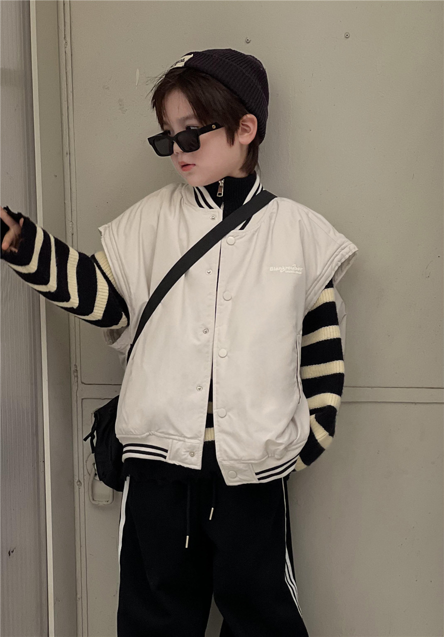 가을과 겨울 빈티지 어린이 면 조끼 아메리칸 스타일 소년과 소녀를위한 하이 스트리트 자수 두꺼운 서양 스타일 조끼스토어 가기