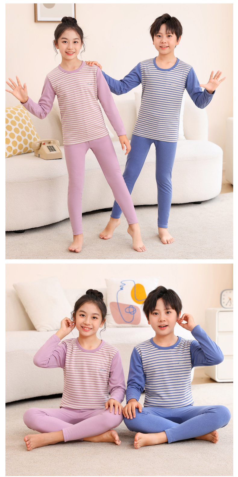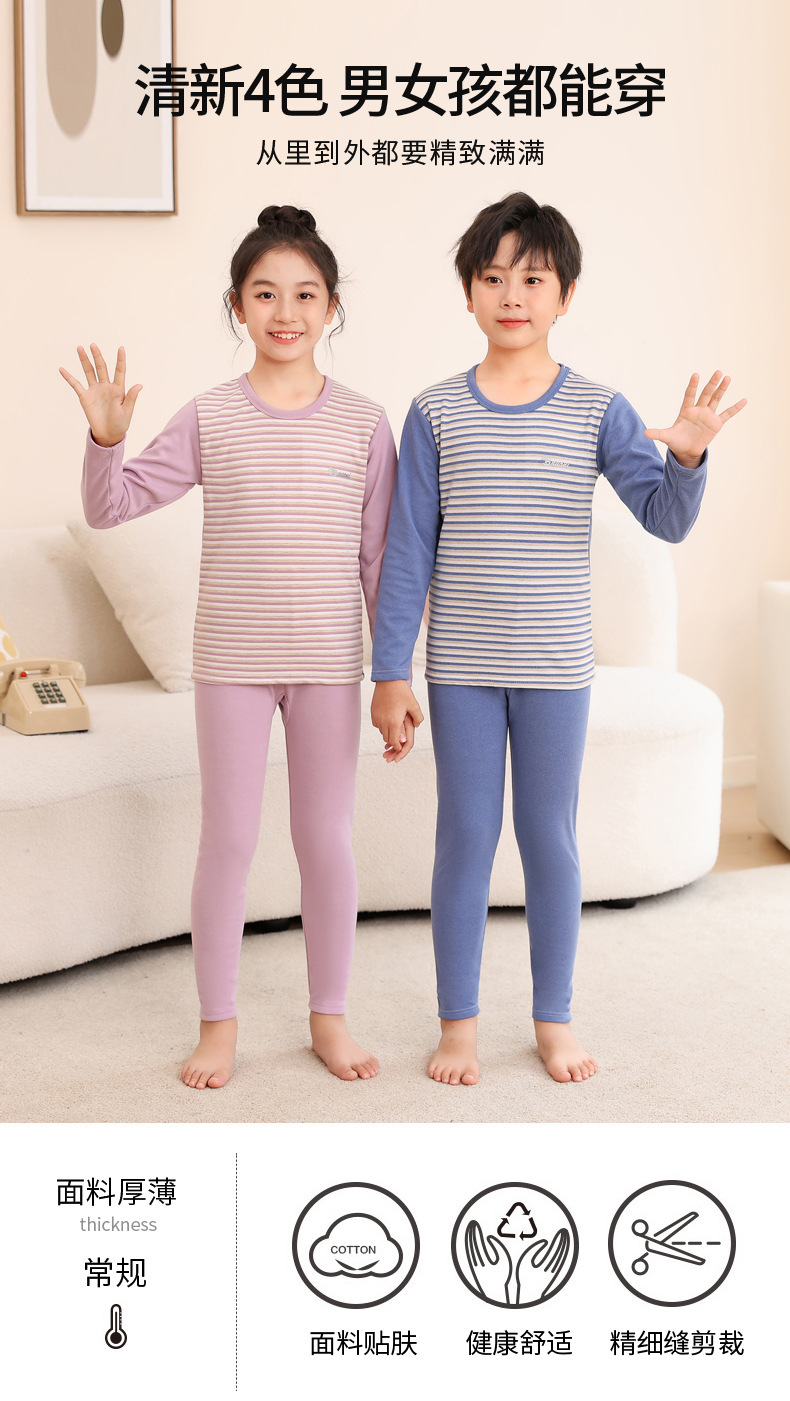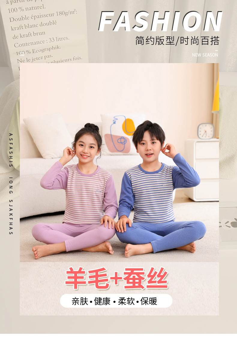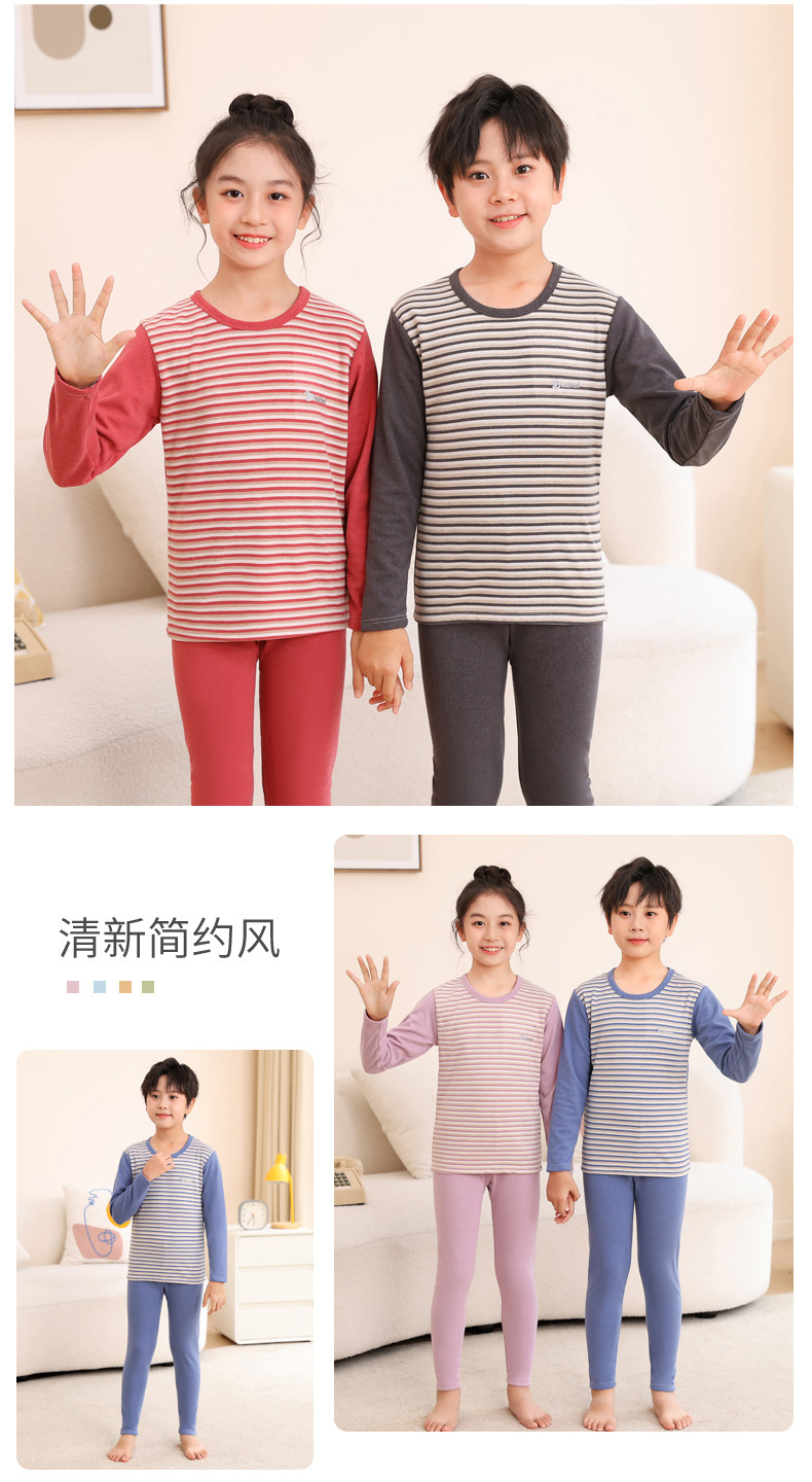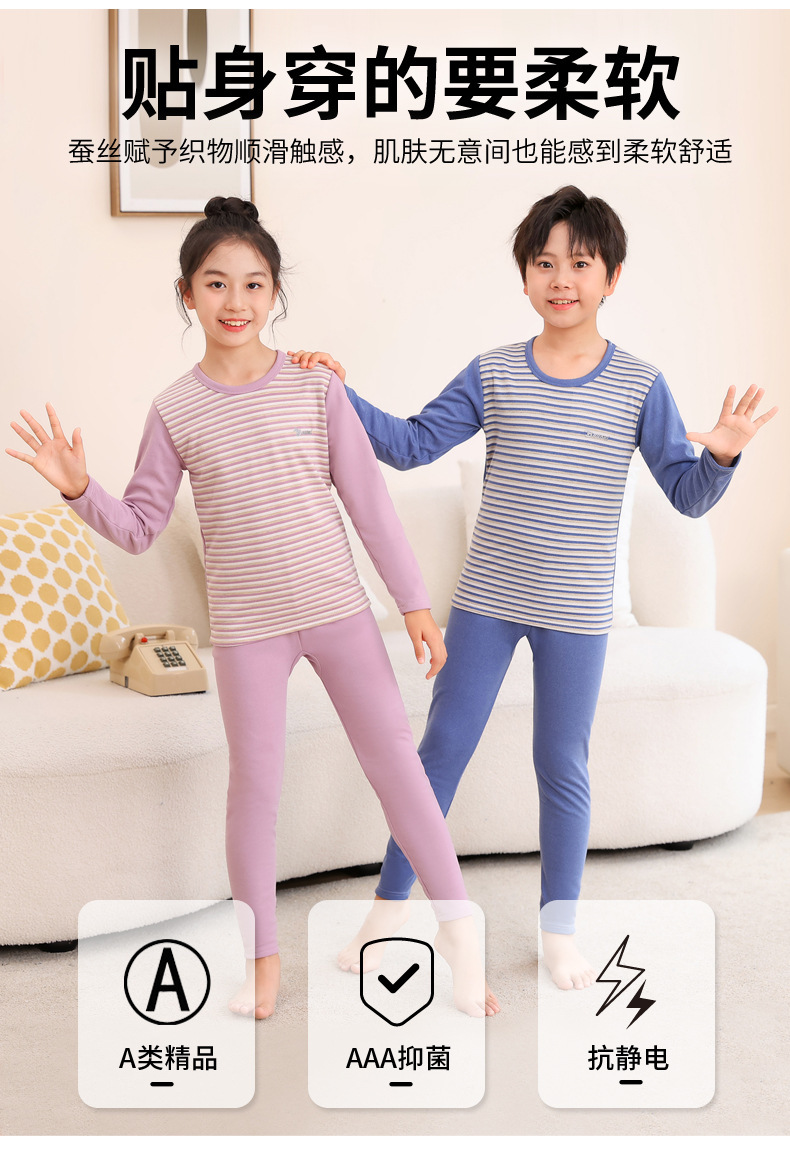 가을과 겨울 어린이 양모 실크 열 속옷 세트 중소 소년 소녀 스트라이프 가정 의류 가을 바지 도매