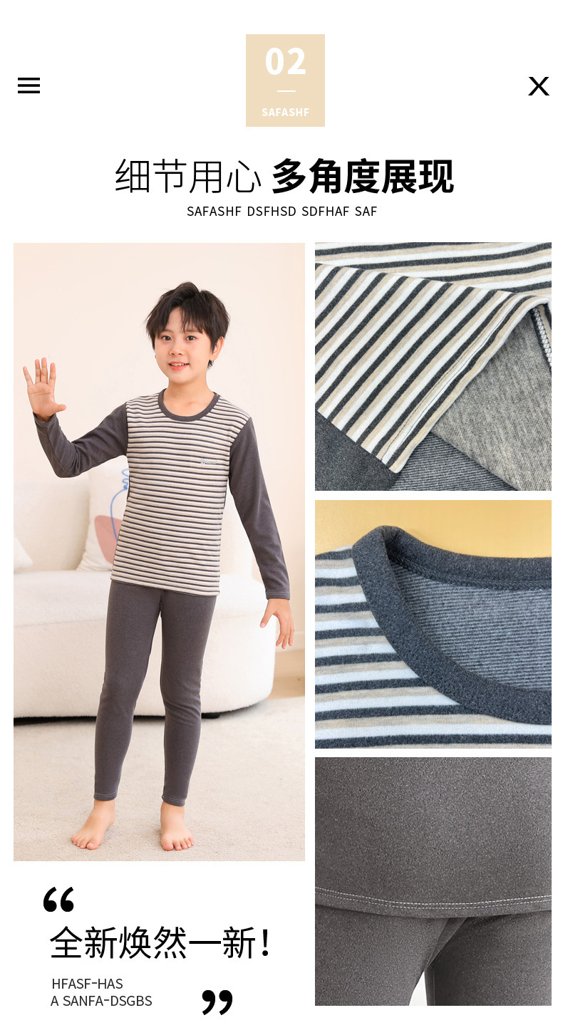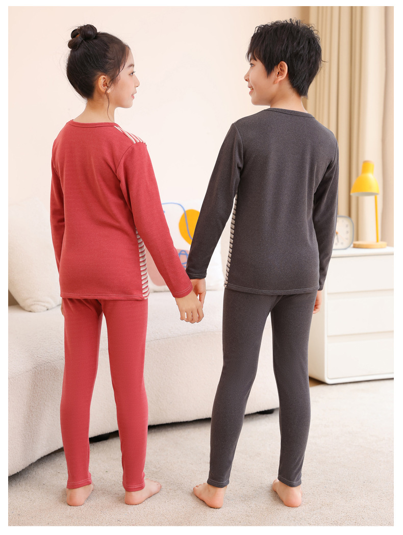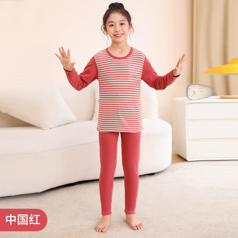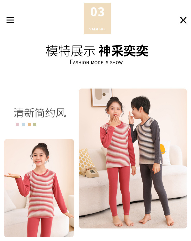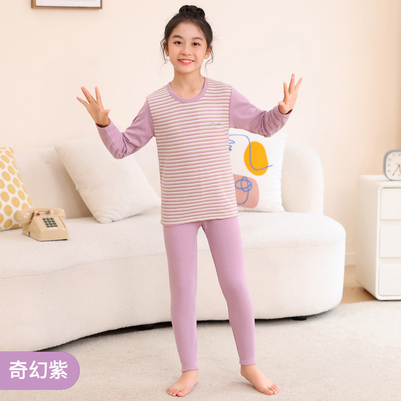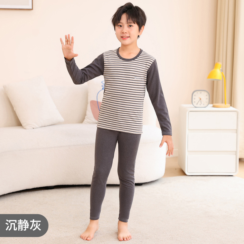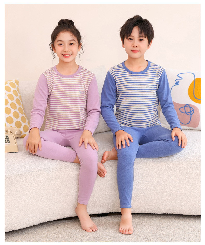 가을과 겨울 어린이 양모 실크 열 속옷 세트 중소 소년 소녀 스트라이프 가정 의류 가을 바지 도매