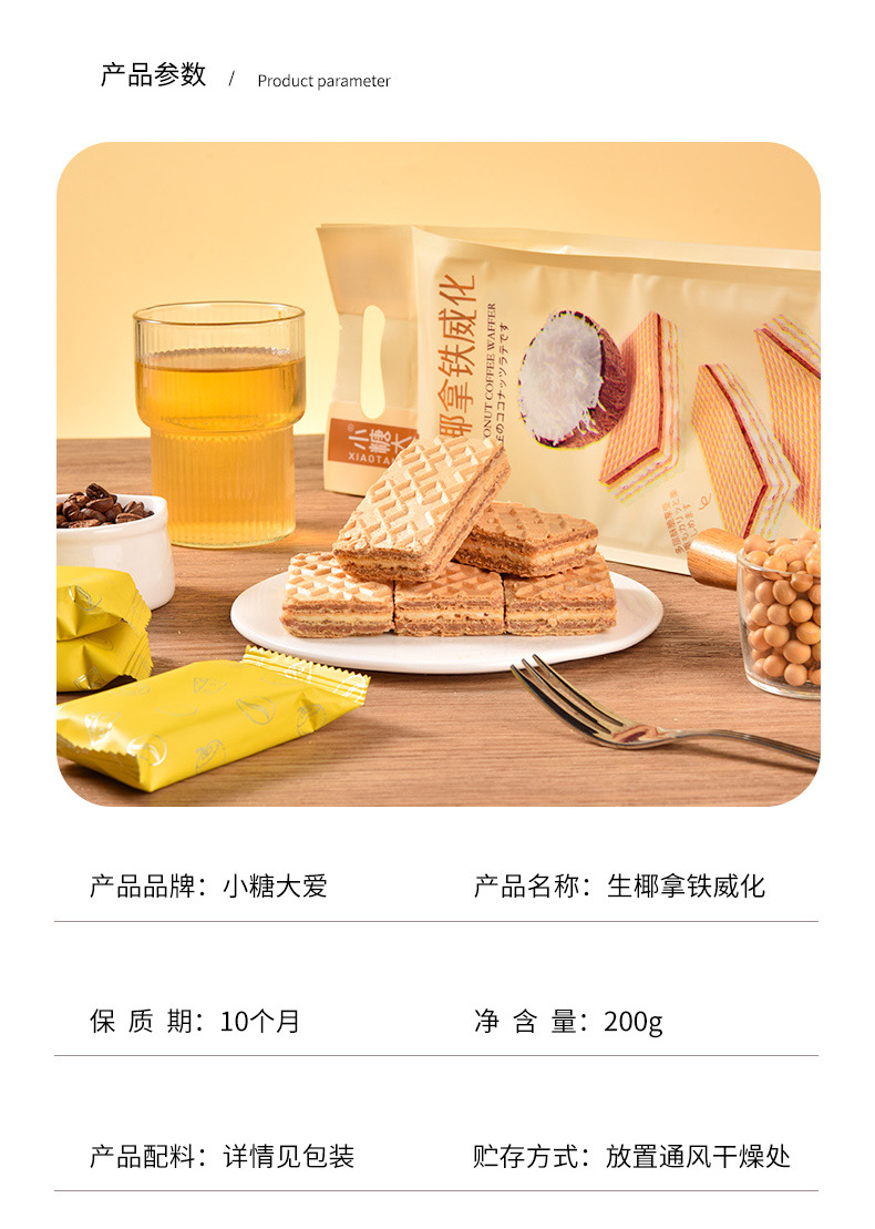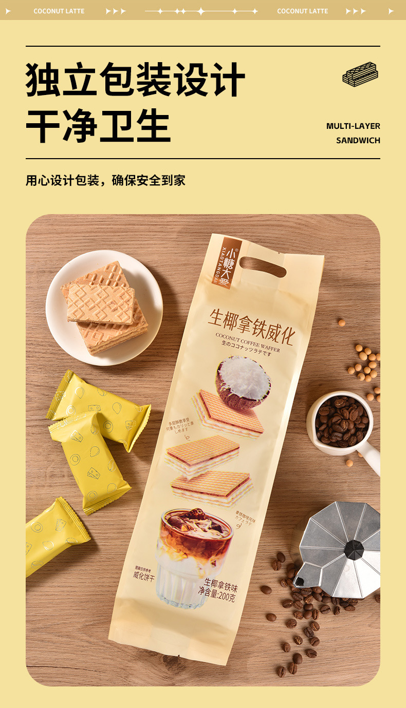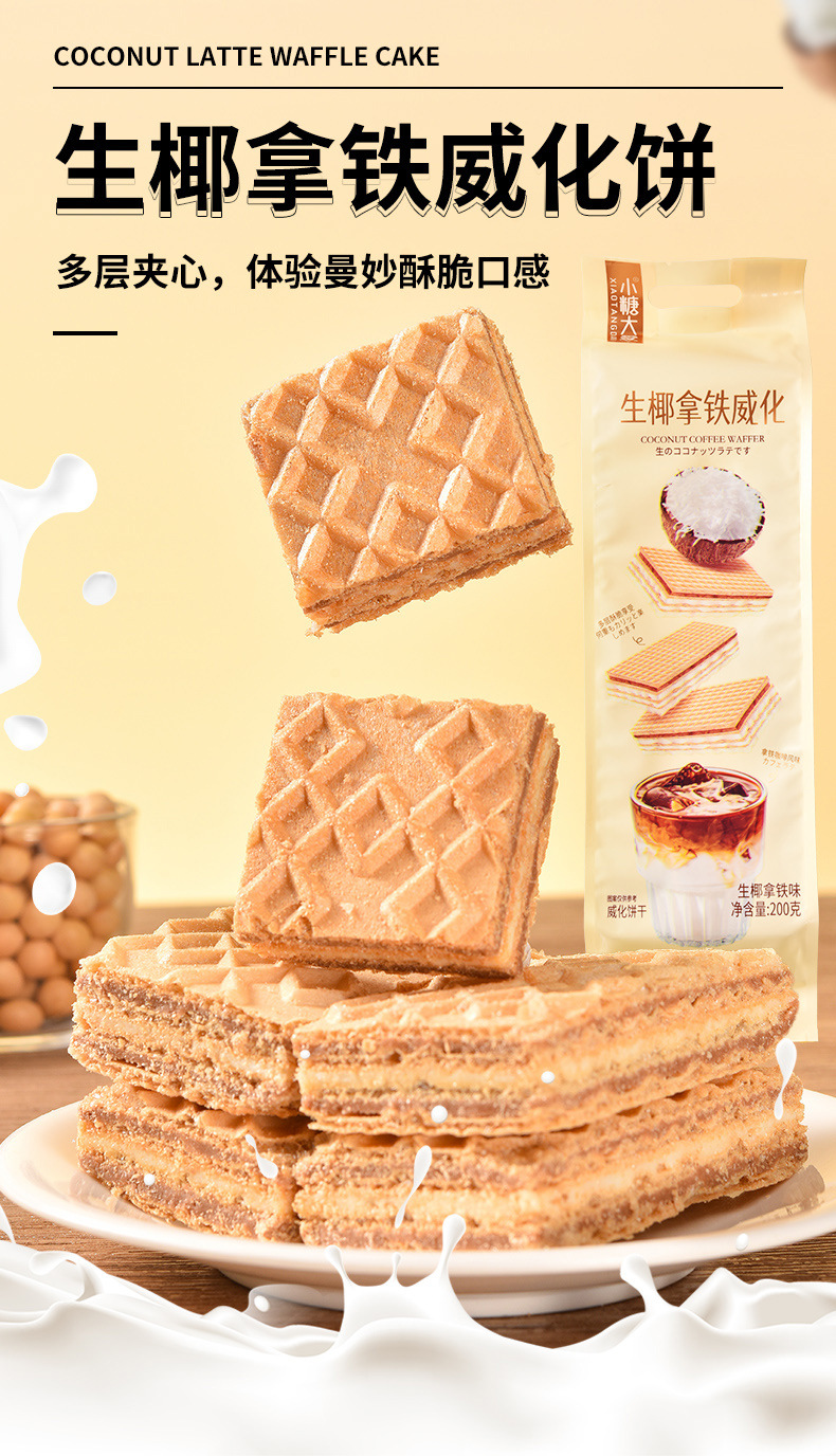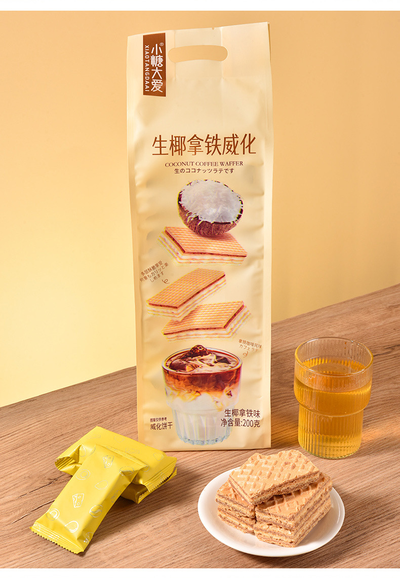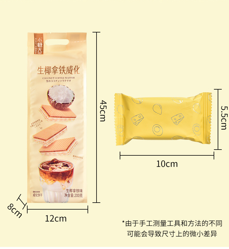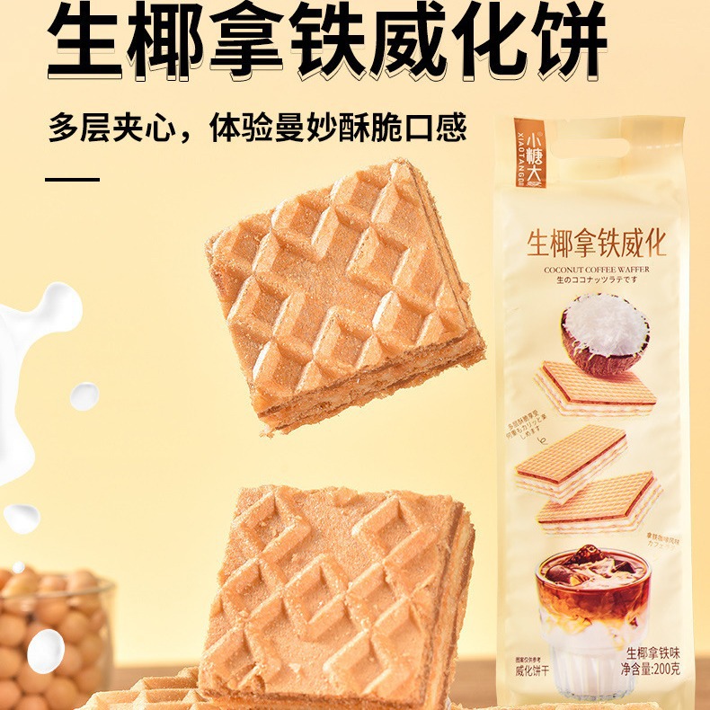 작은 설탕 큰 Aisheng 라떼 웨이퍼 200g 봉지 샌드위치 비스킷 어린이 스낵 슈퍼마켓 공급 WeChat 음식