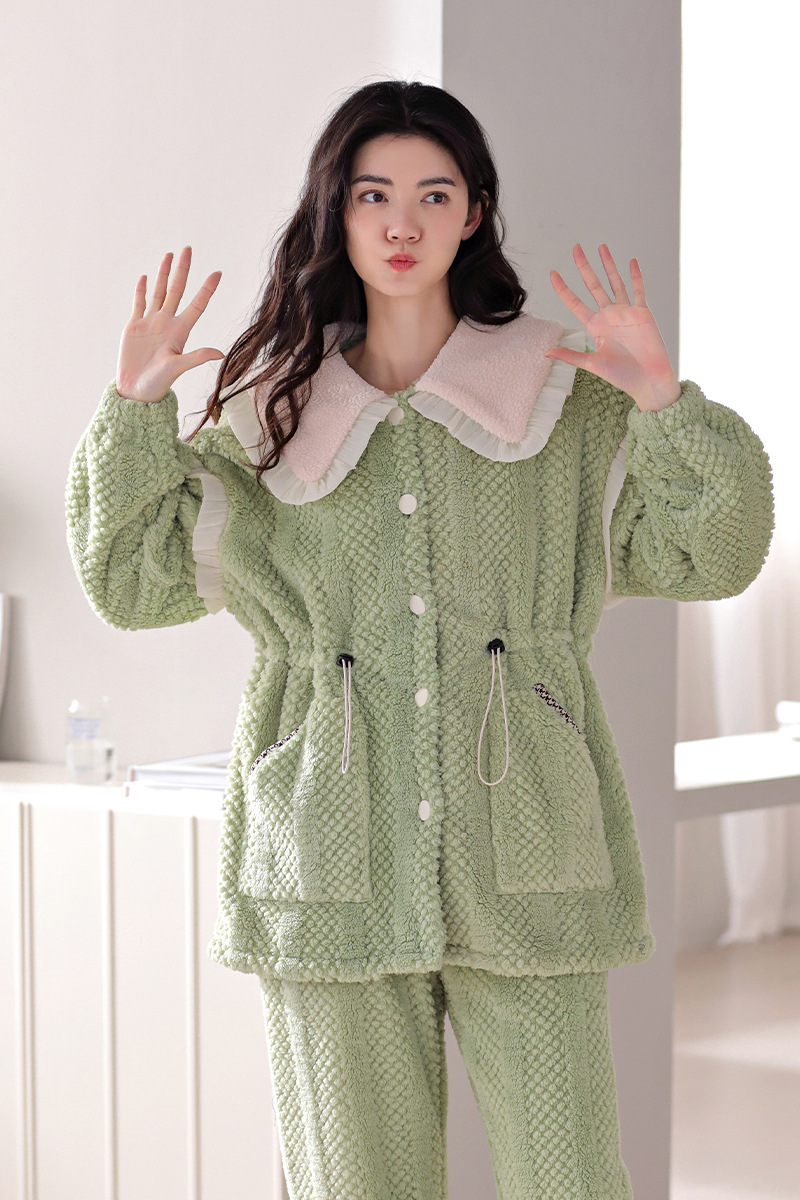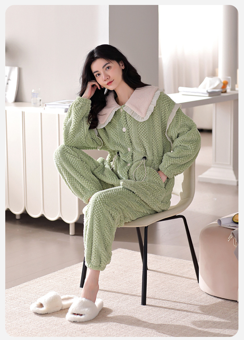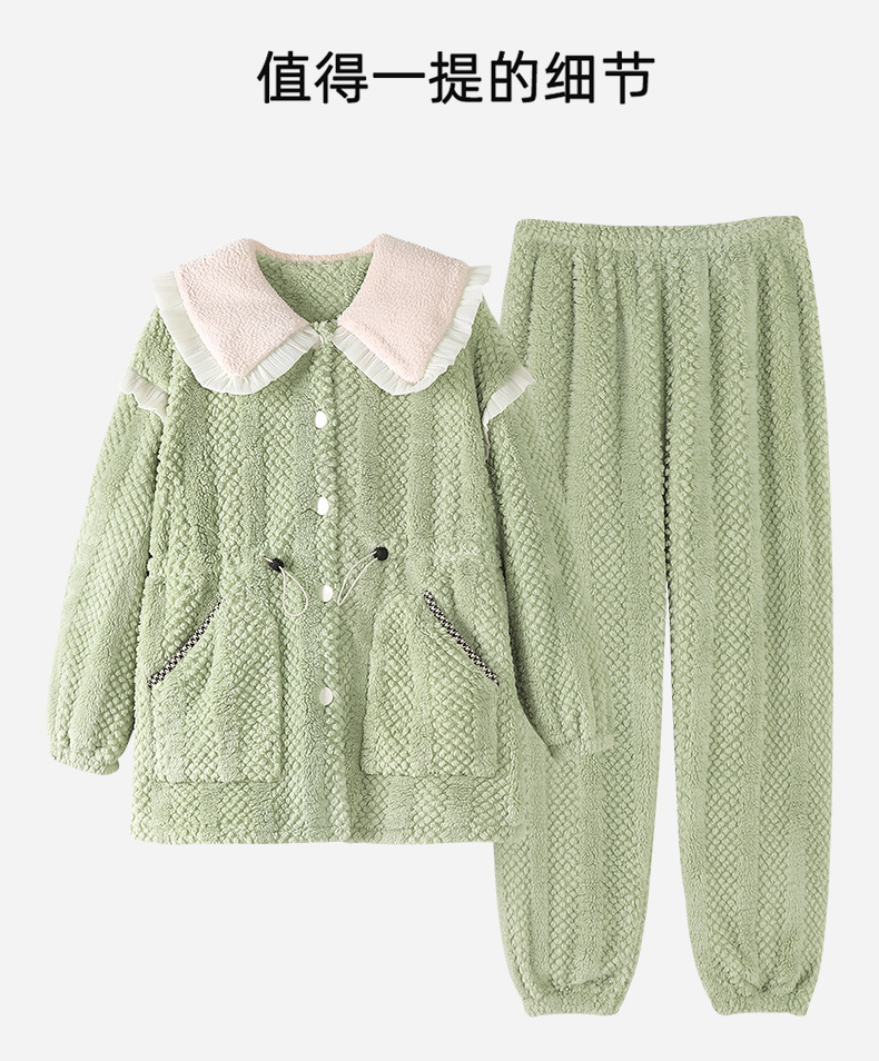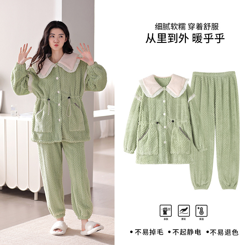 겨울 새로운 따뜻한 잠옷 여자의 산호 양털 기모 두꺼운 카디건 플러스 사이즈 캐주얼 홈 세트 입을 수 있습니다