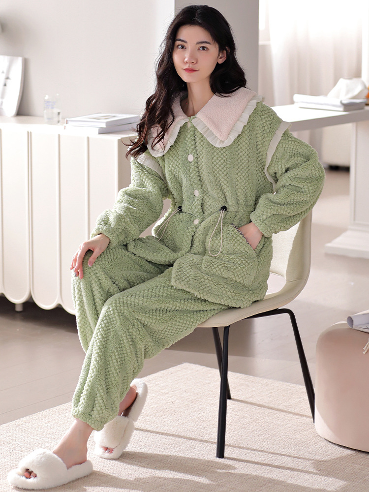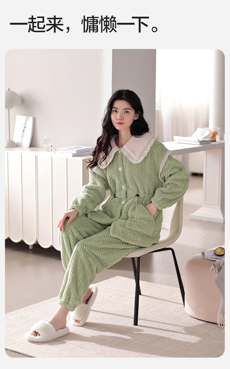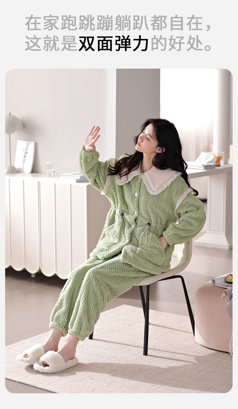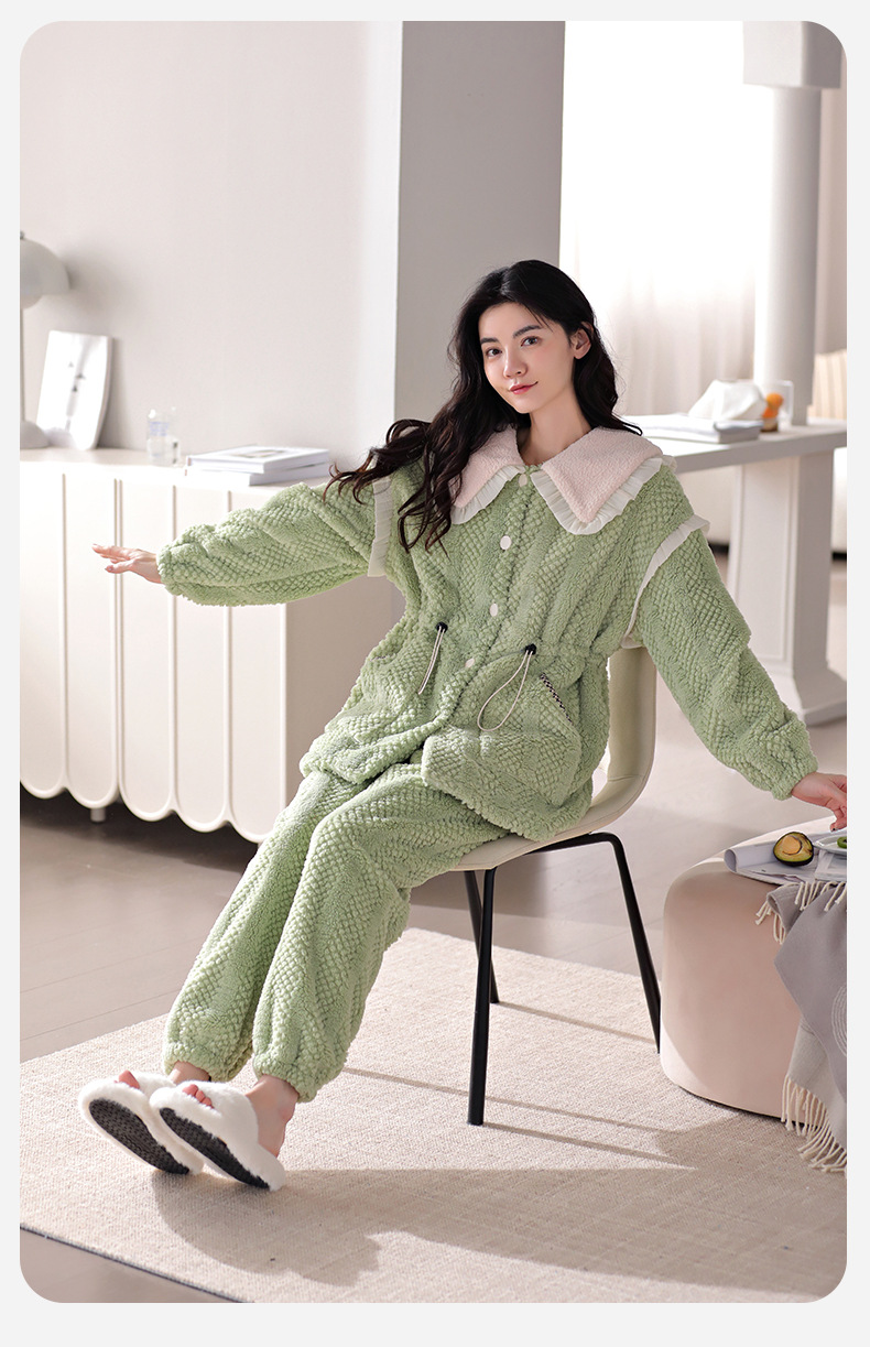 겨울 새로운 따뜻한 잠옷 여자의 산호 양털 기모 두꺼운 카디건 플러스 사이즈 캐주얼 홈 세트 입을 수 있습니다