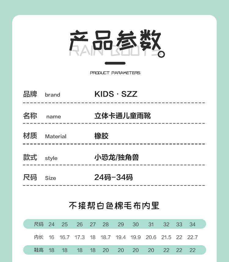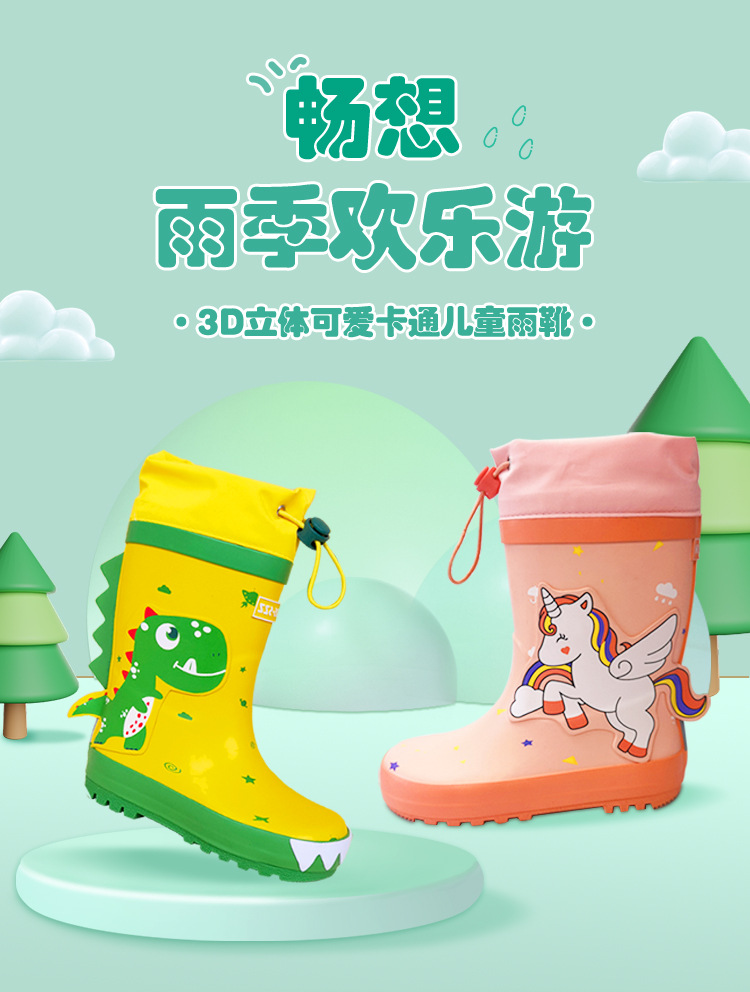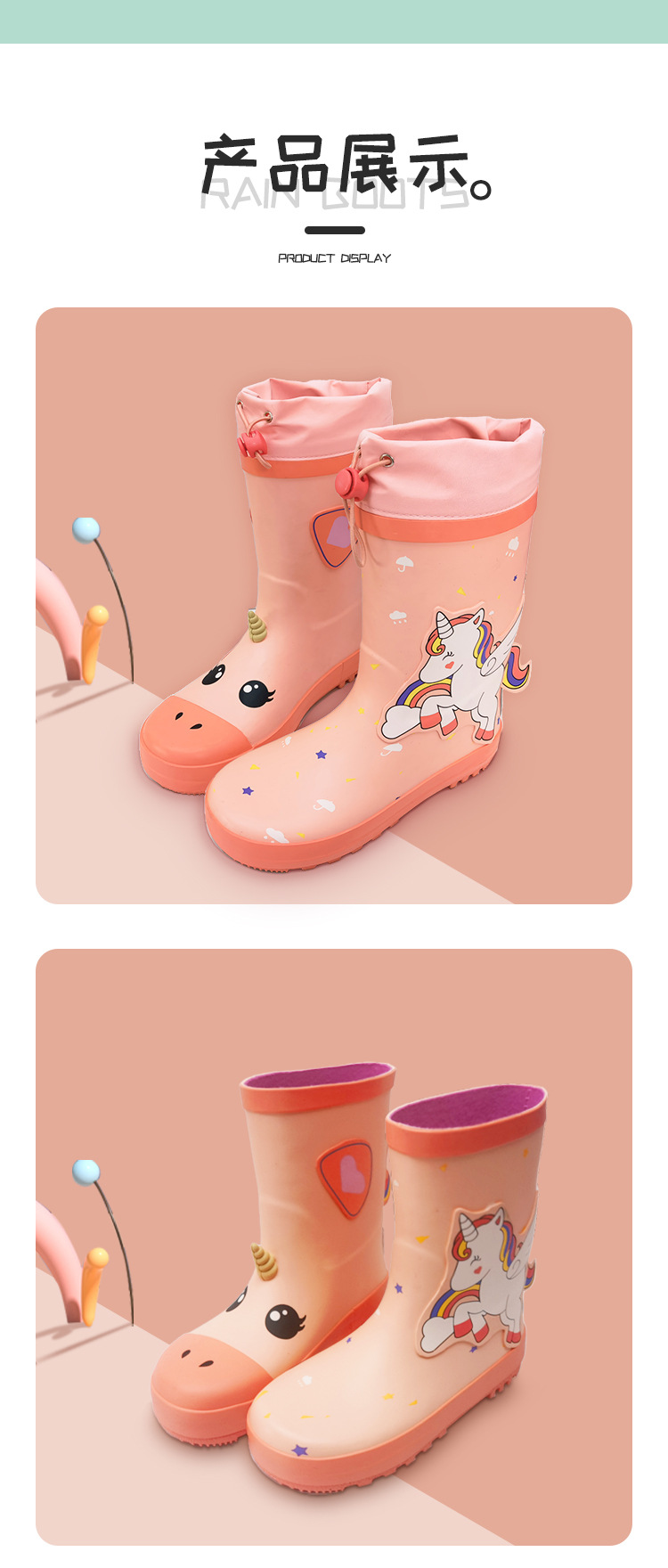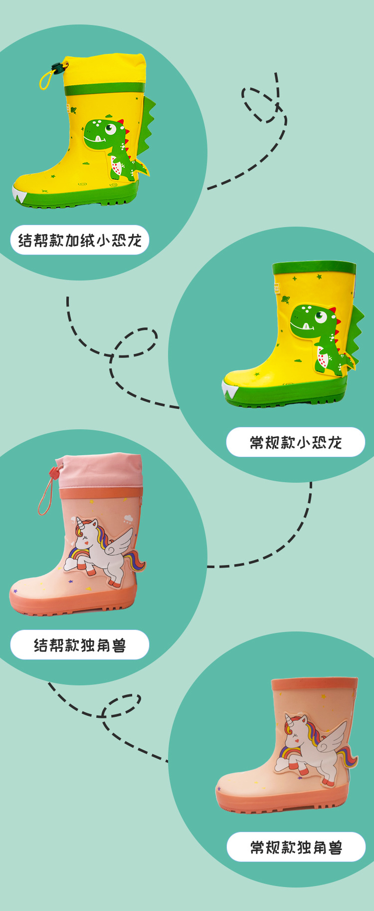 어린이 비 부츠 만화 공룡 유니콘 미끄럼 방지 초등학교 어린이 사계절 유치원 물 신발 소년 소녀 비 신발
