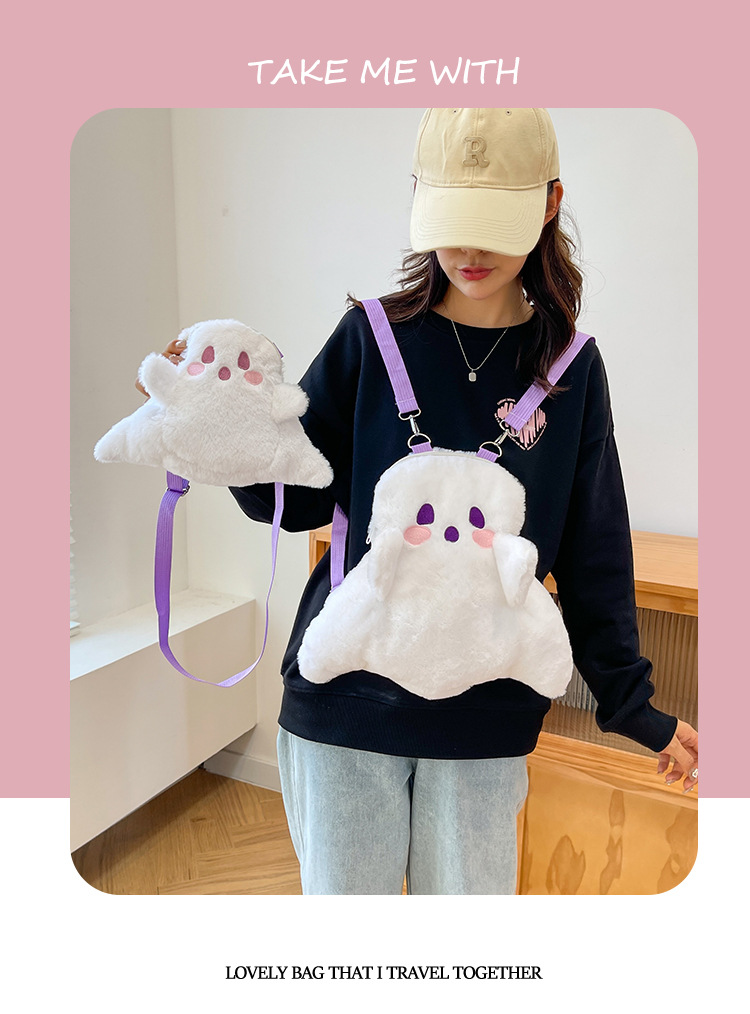 일본 스타일 귀여운 만화 유령 아이 배낭 여성 가방 독특한 재미있는 인형 가방 봉제 인형 배낭