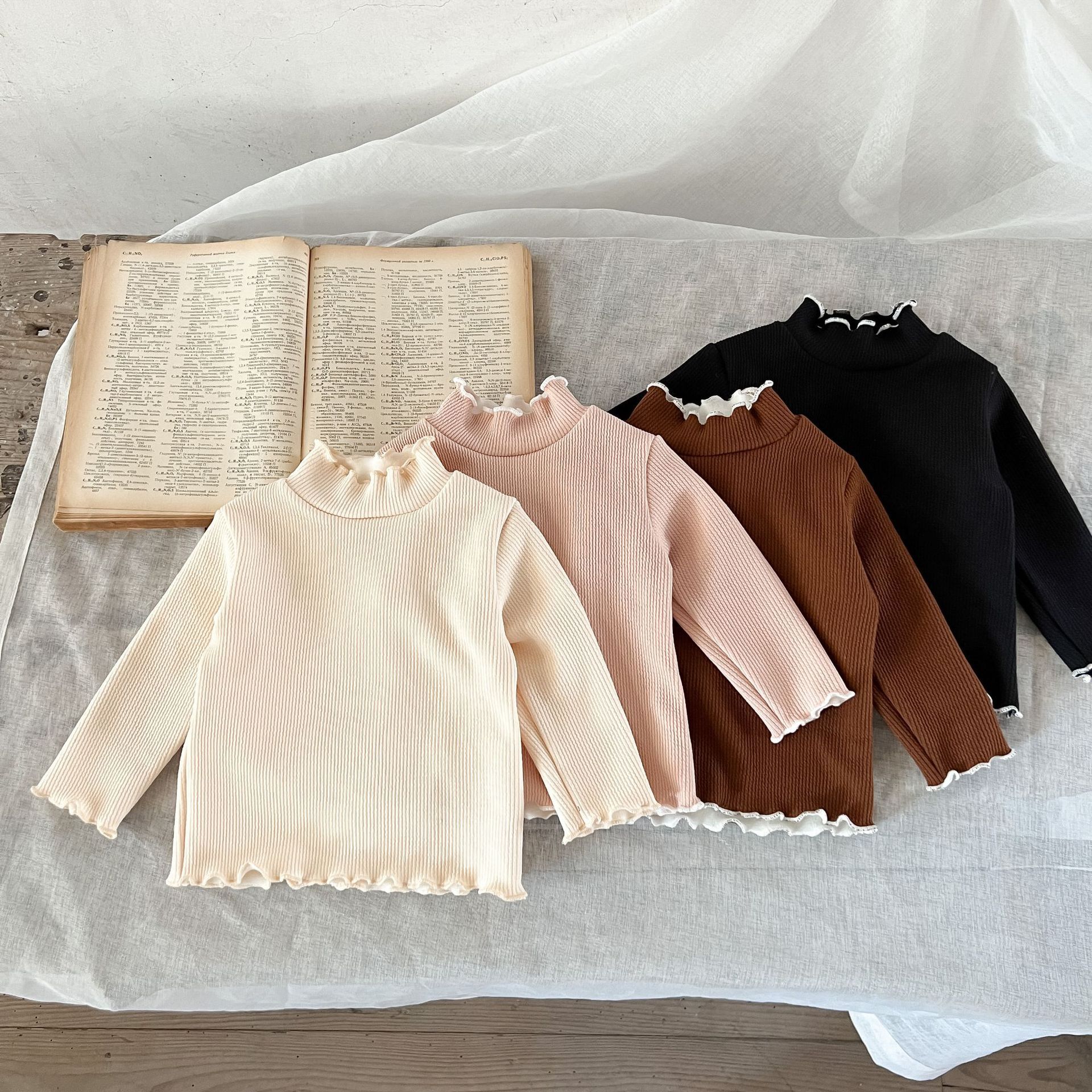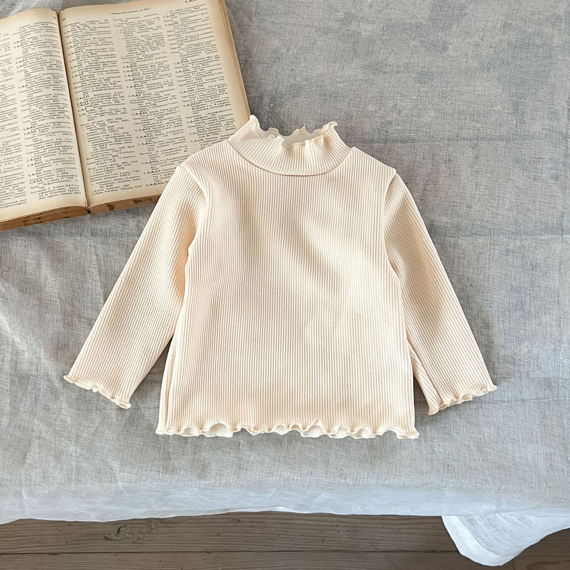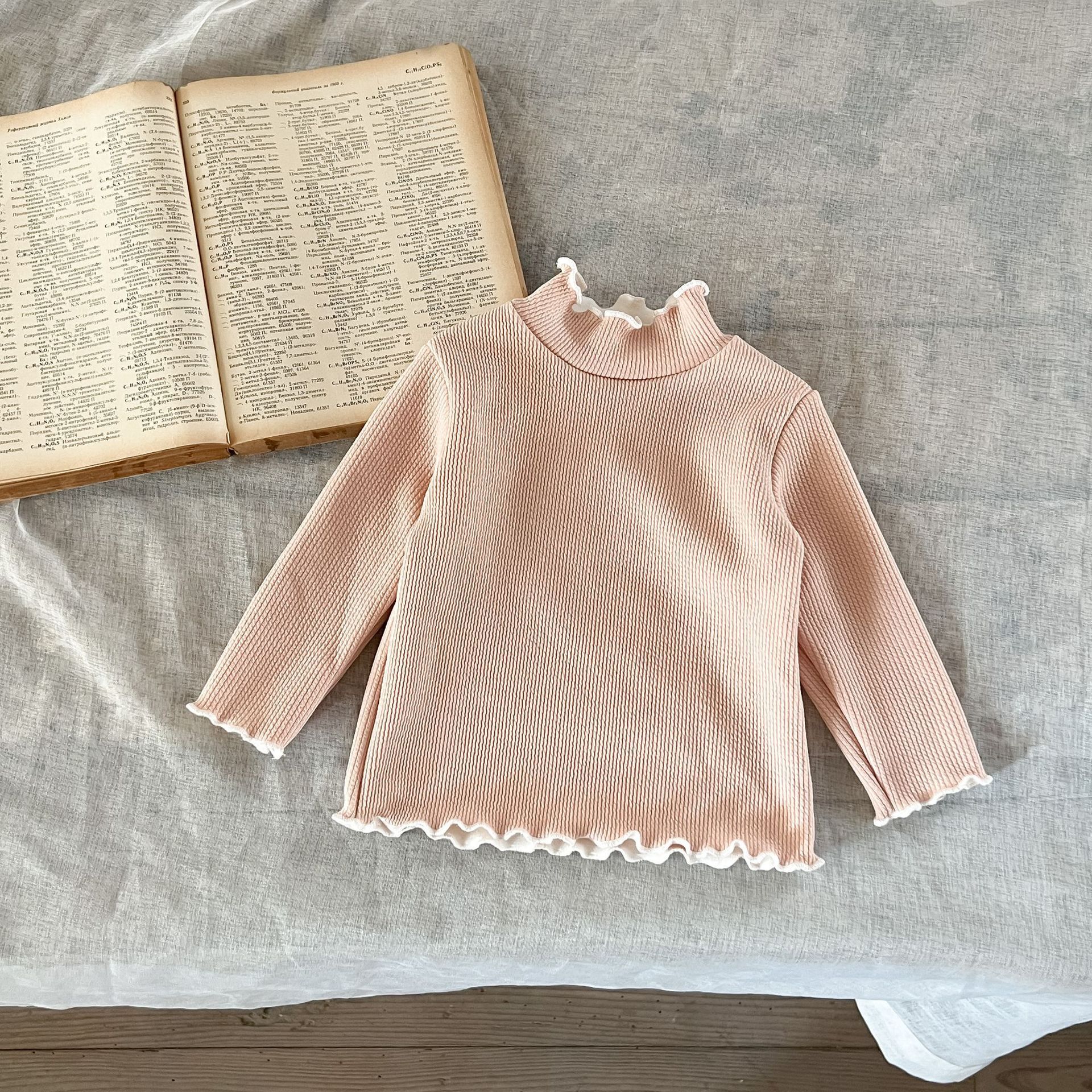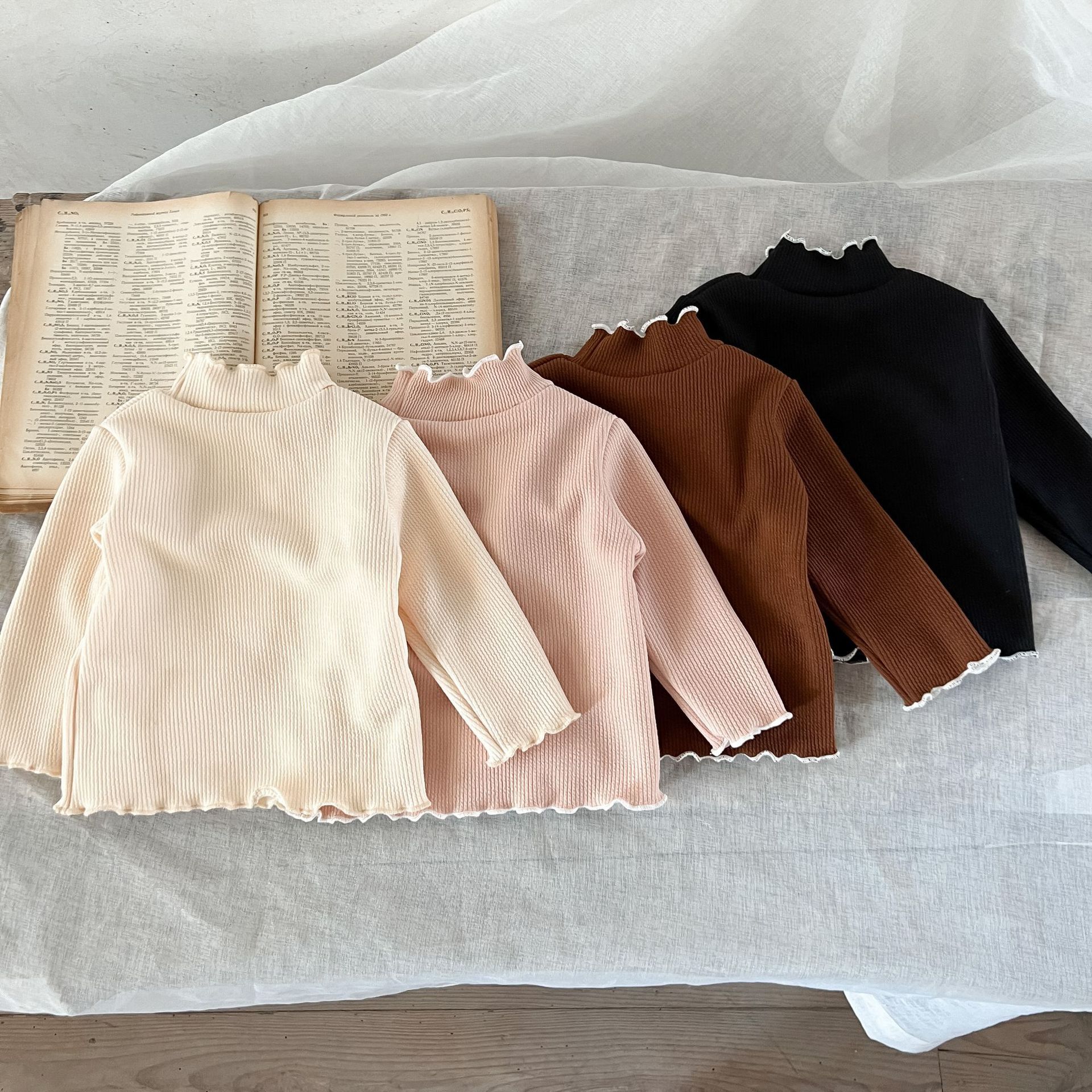 가을과 겨울 여성 아동복 티셔츠 베이스 셔츠 아기의 서양 스타일 어린이의 독특한 트렌디 한국식 기모 하이 칼라 탑