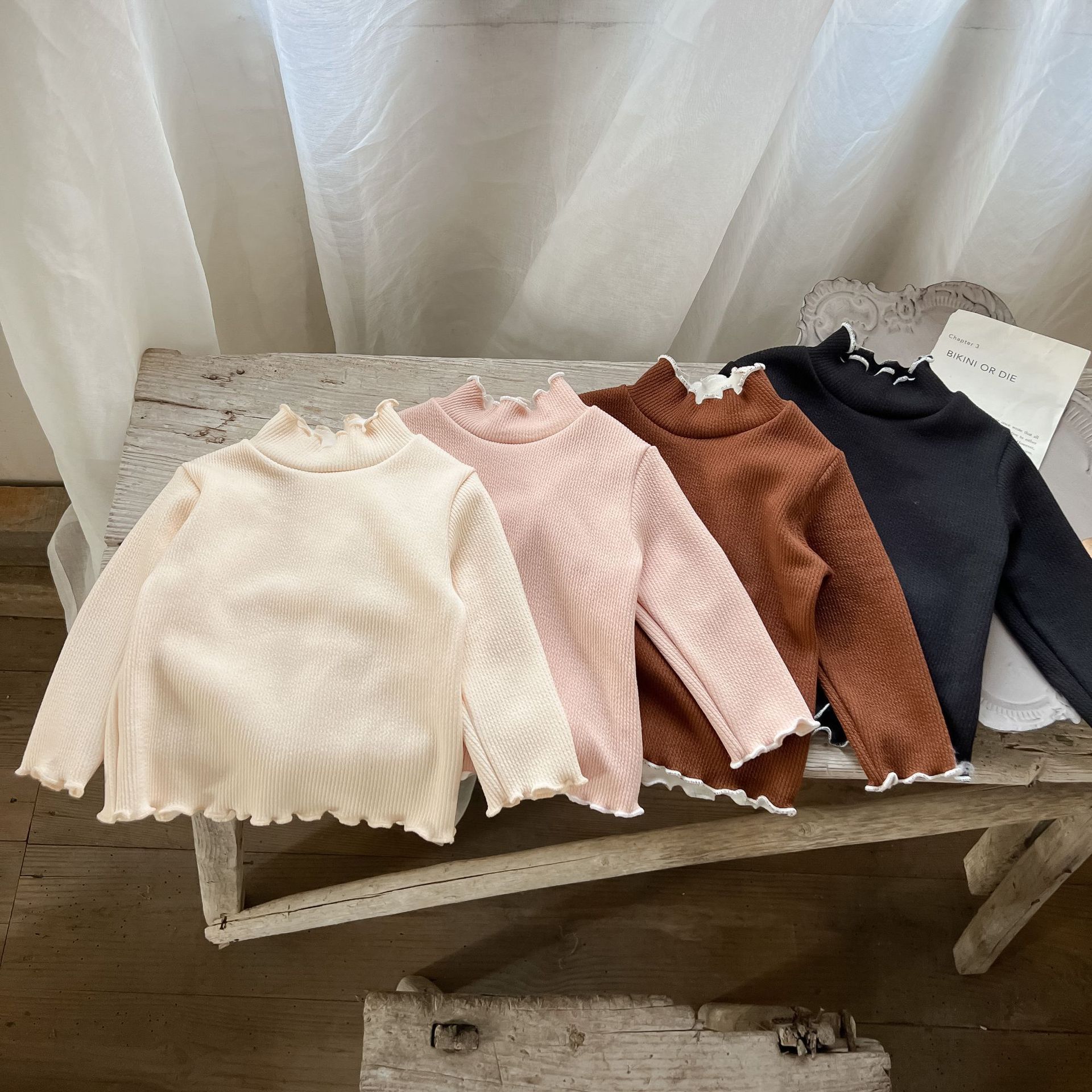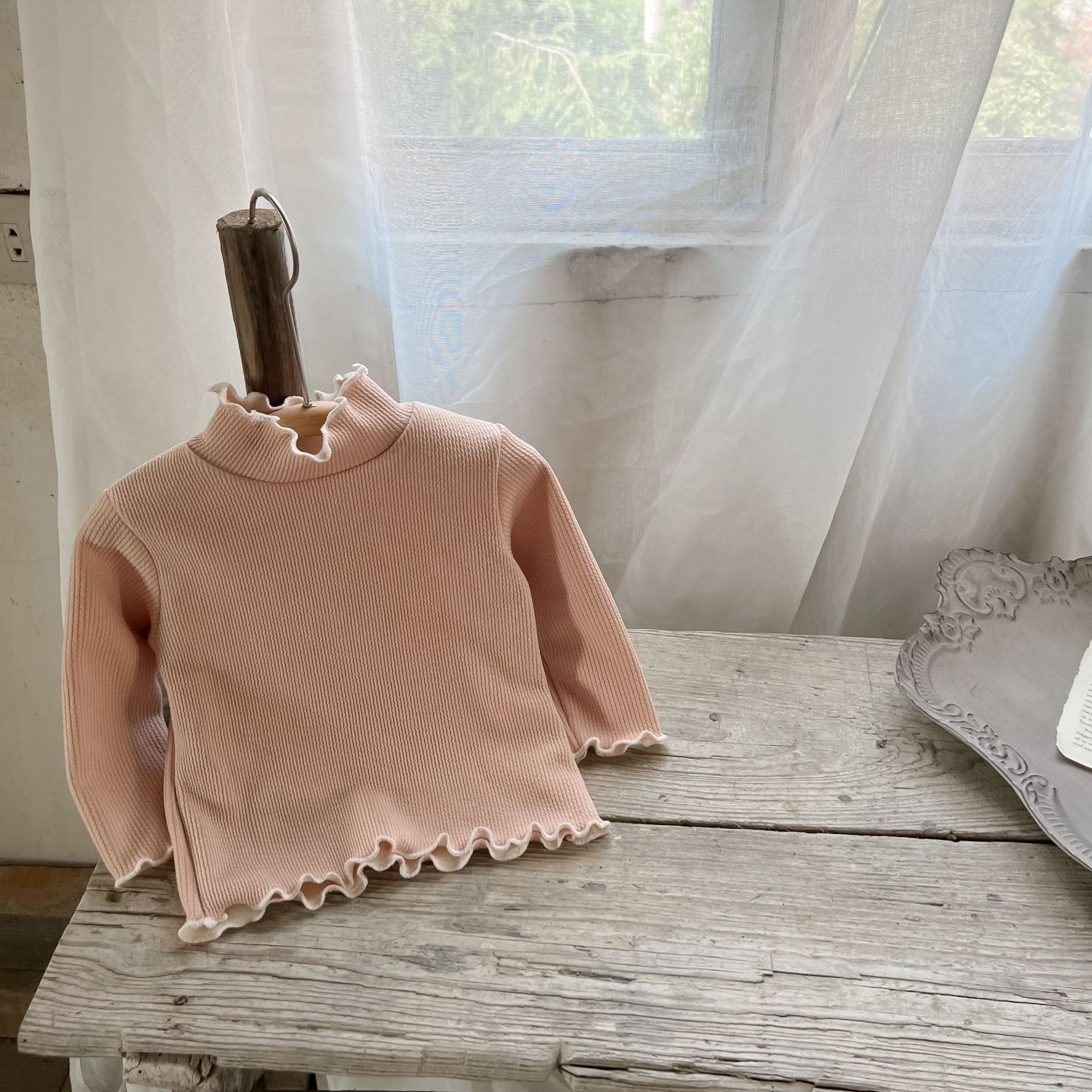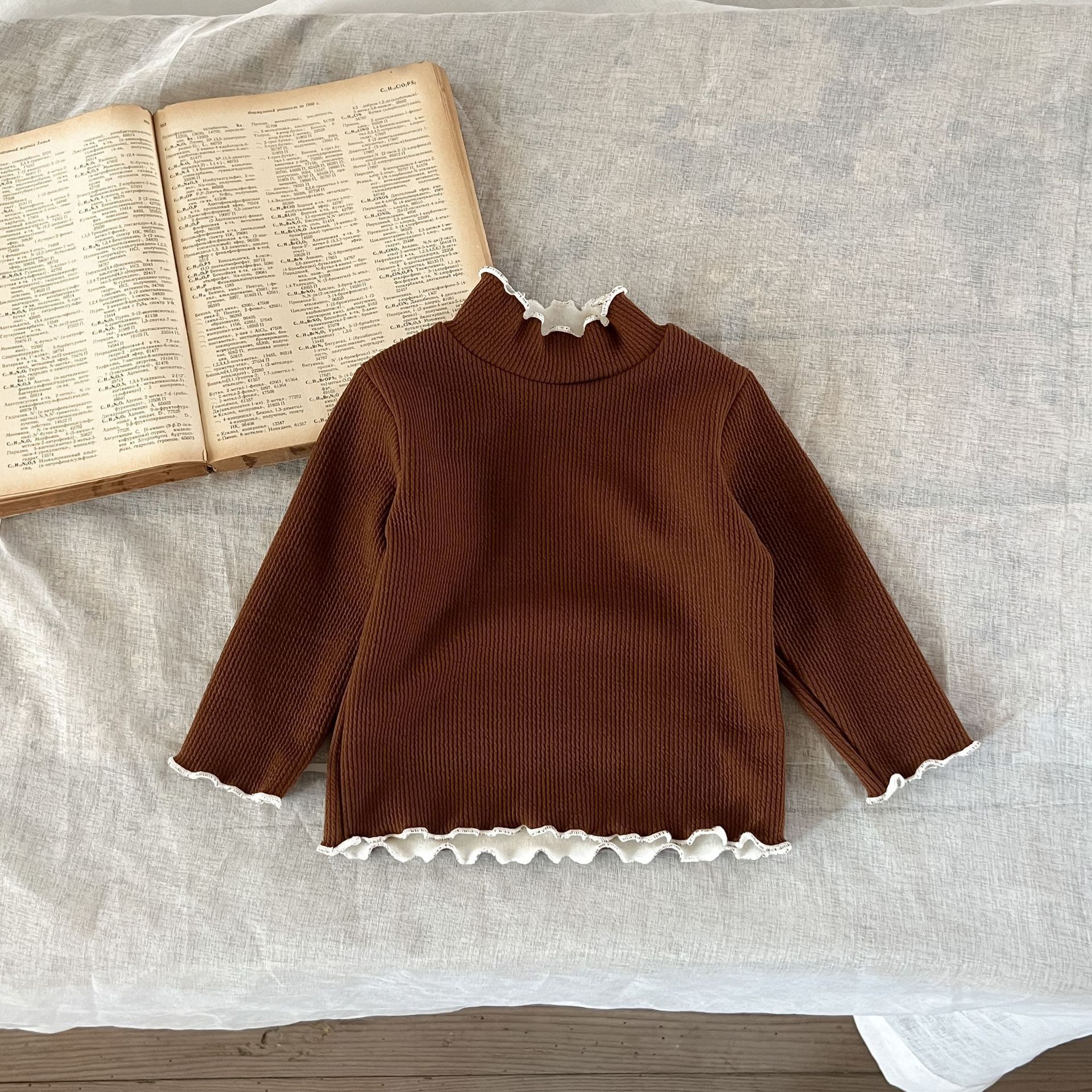 가을과 겨울 여성 아동복 티셔츠 베이스 셔츠 아기의 서양 스타일 어린이의 독특한 트렌디 한국식 기모 하이 칼라 탑