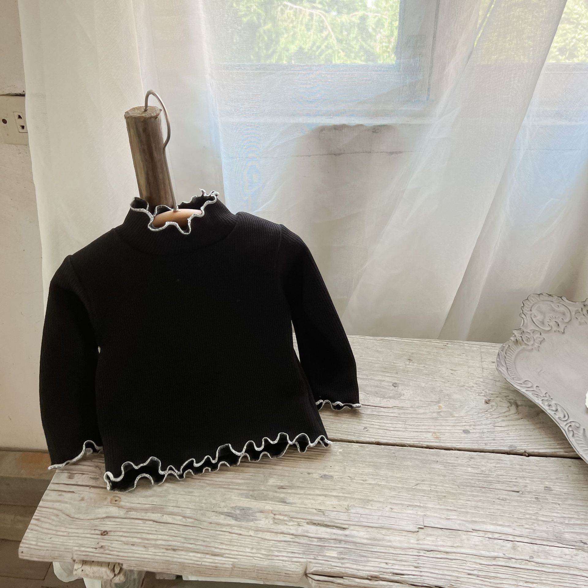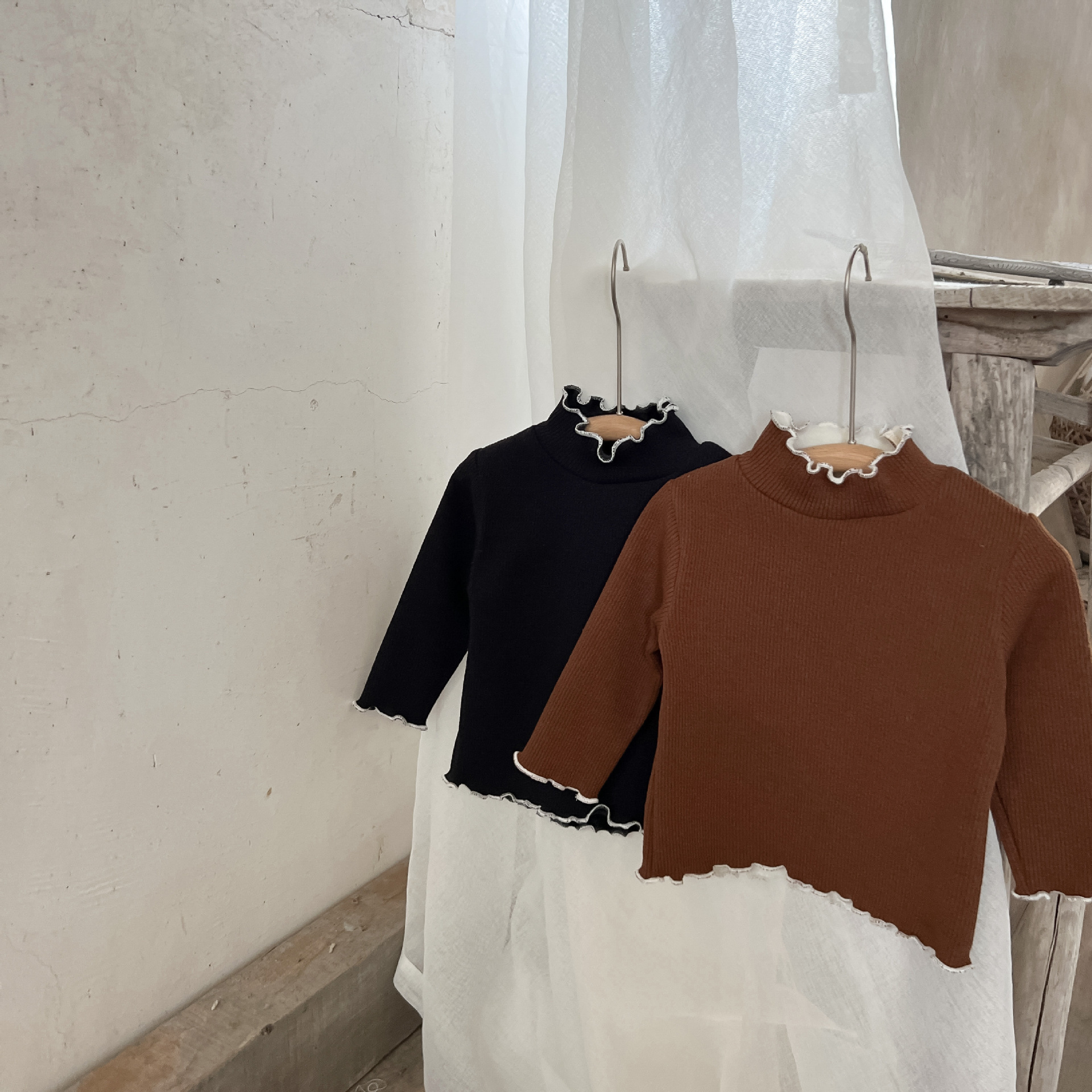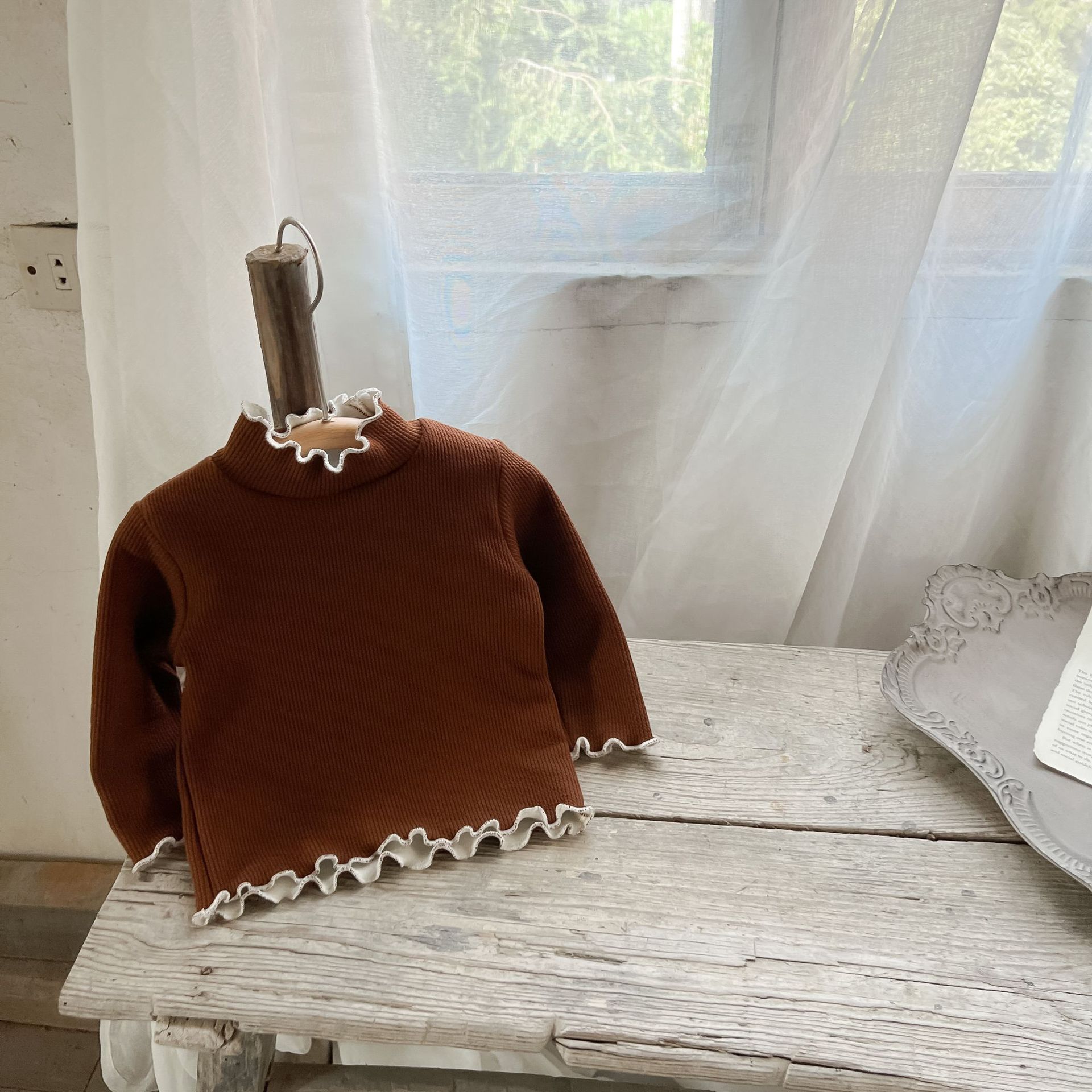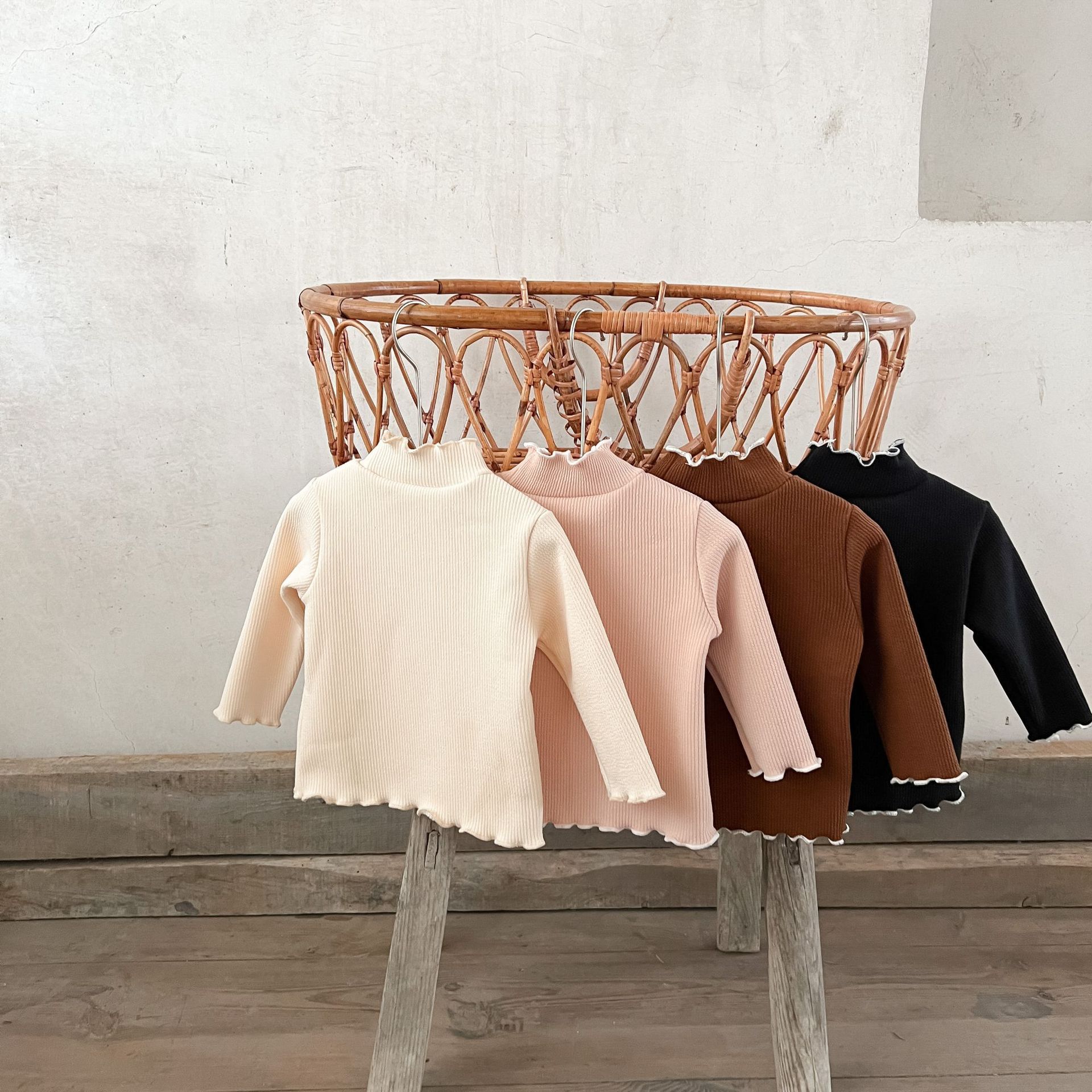 가을과 겨울 여성 아동복 티셔츠 베이스 셔츠 아기의 서양 스타일 어린이의 독특한 트렌디 한국식 기모 하이 칼라 탑
