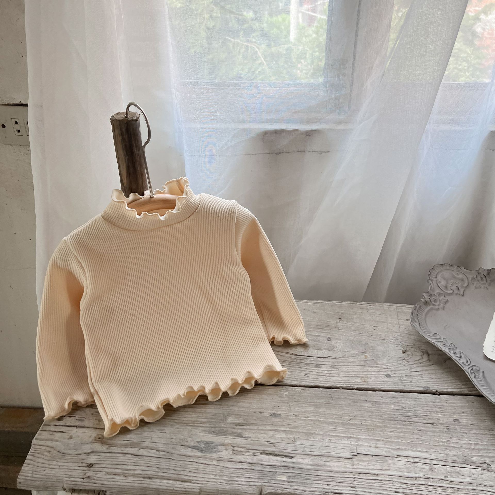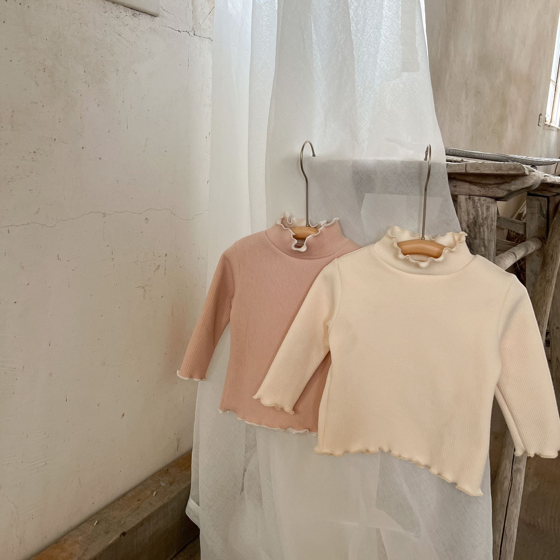 가을과 겨울 여성 아동복 티셔츠 베이스 셔츠 아기의 서양 스타일 어린이의 독특한 트렌디 한국식 기모 하이 칼라 탑스토어 가기