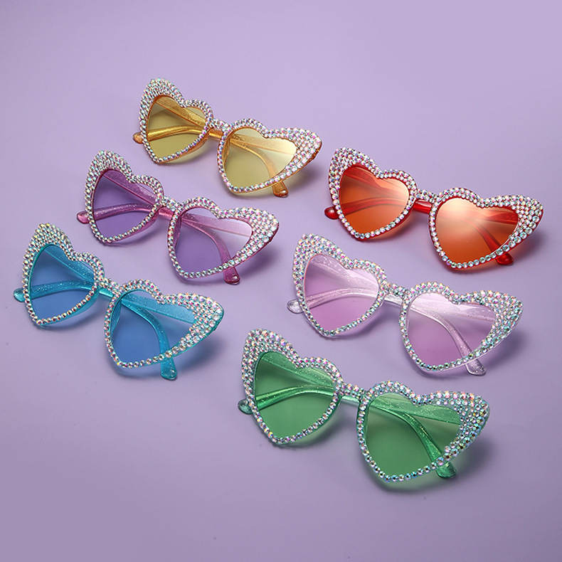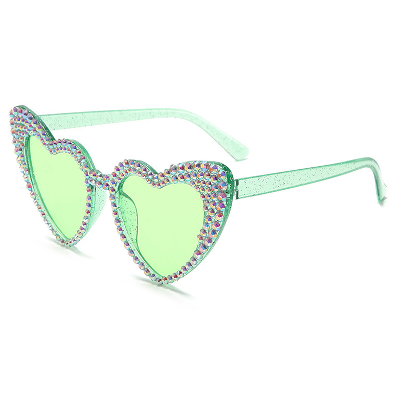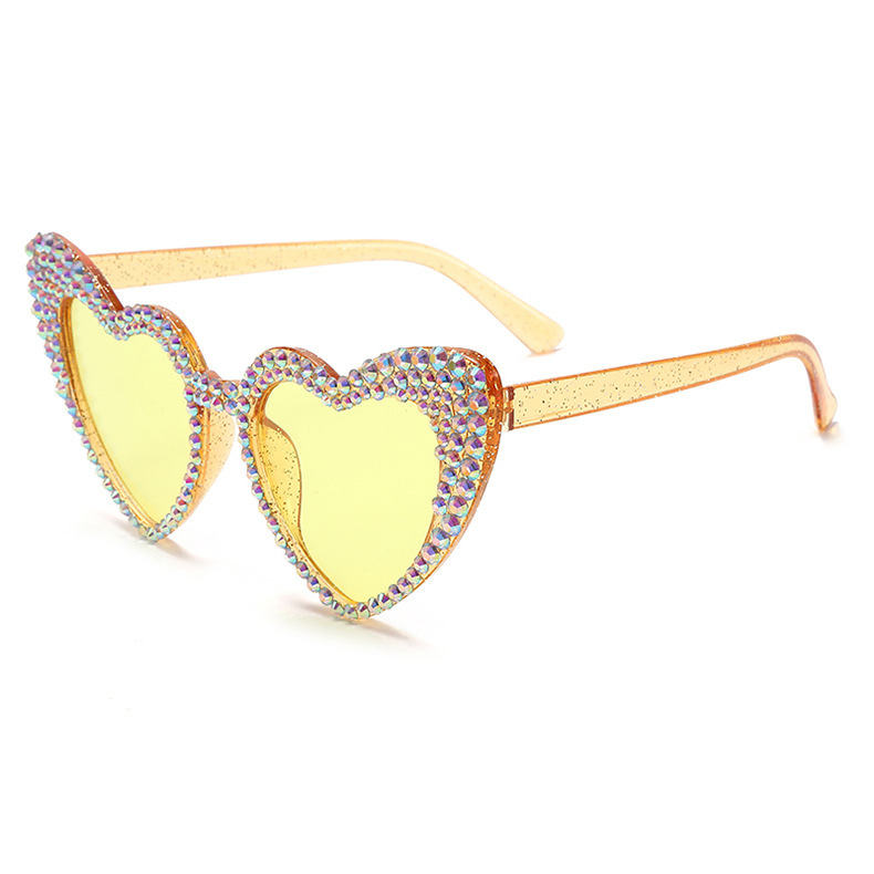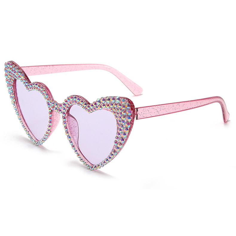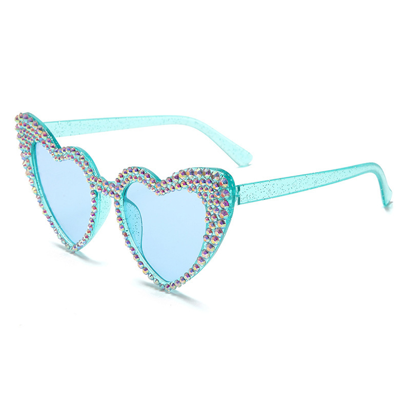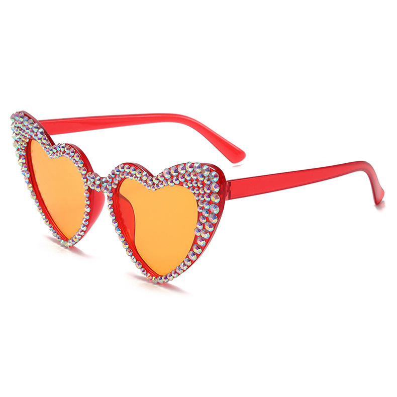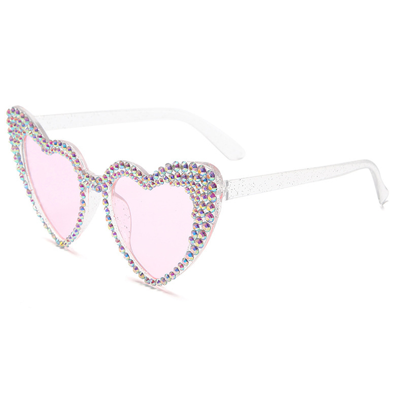 원래 유럽과 미국의 새로운 복숭아 심장 다이아몬드 박힌 선글라스 여성용 귀여운 고양이 눈 하트 모양 선글라스 스팟 다이아몬드 수제 안경