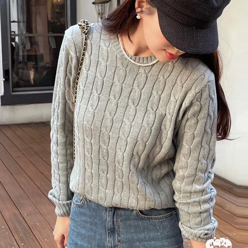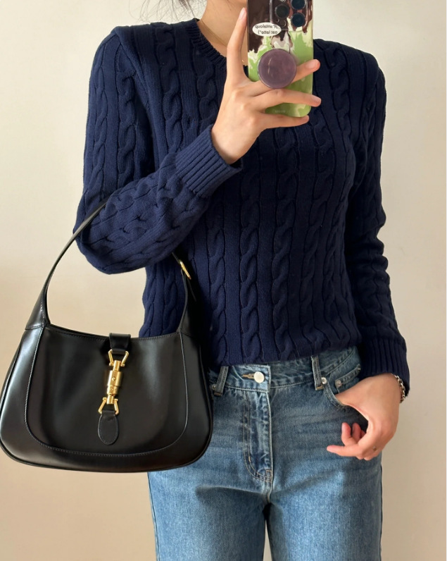 가을과 겨울 랄프 새로운 조랑말 마크 자수 전쟁 말 트위스트 풀오버 긴 소매 탑 스웨터 여성용 스웨터스토어 가기