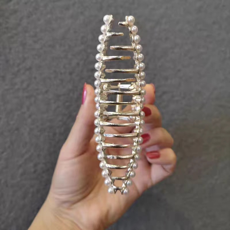 진주 모조 다이아몬드 금속 머리핀 대형 그랩 클립 우아한 빛 럭셔리 우아한 머리 잡아 다시 머리 상어 클립 머리핀 모자스토어 가기