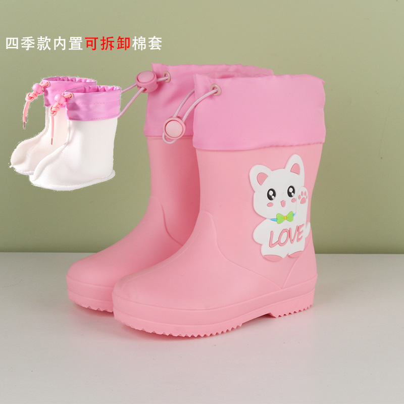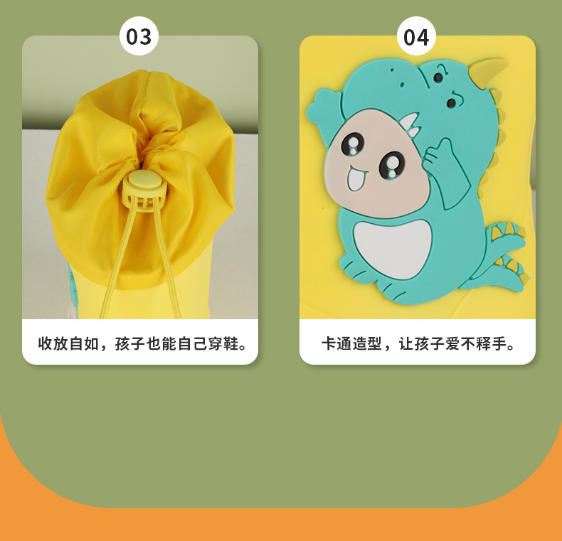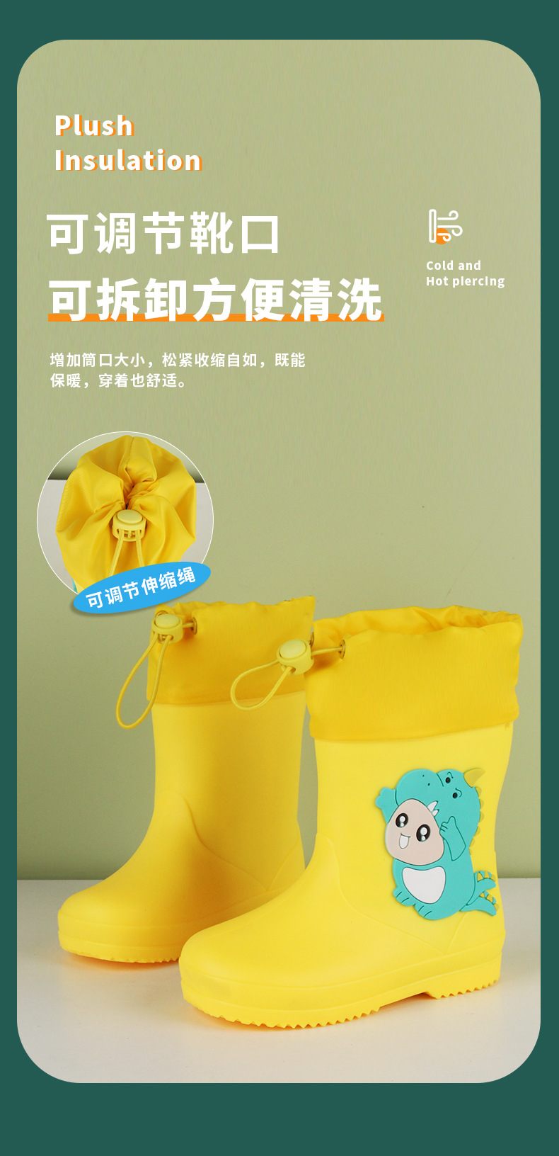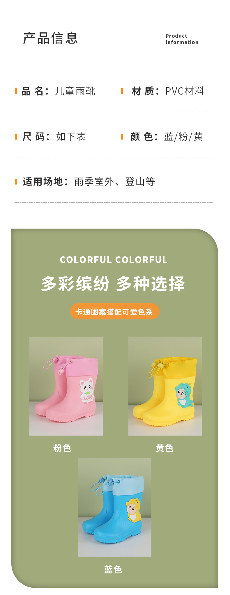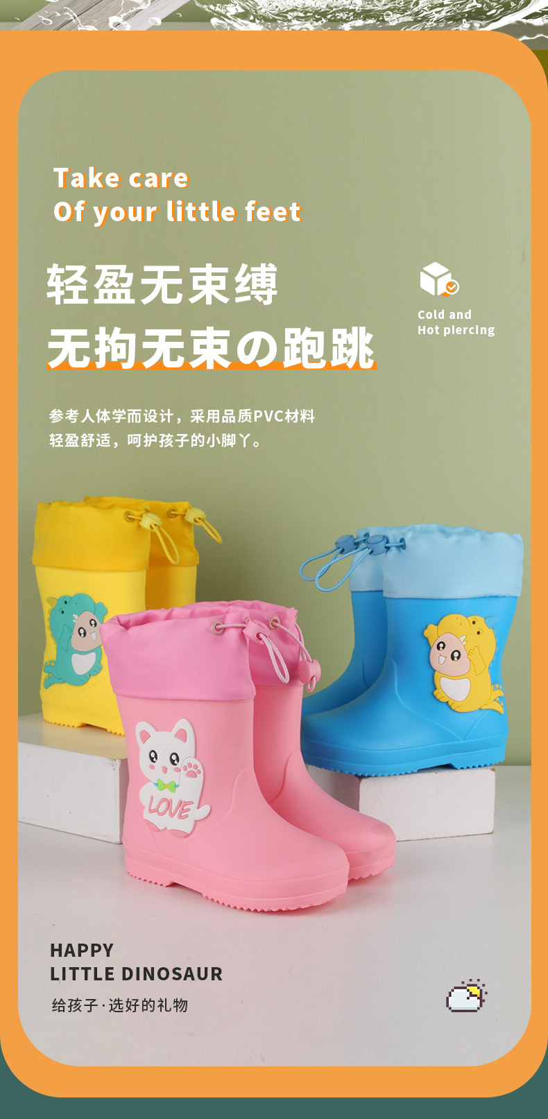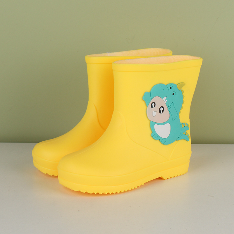 만화 어린이 레인 부츠 귀여운 작은 공룡 탄성 미드 튜브 레인 부츠 미끄럼 방지 초등학교 어린이 유치원 레인 부츠 레인 부츠