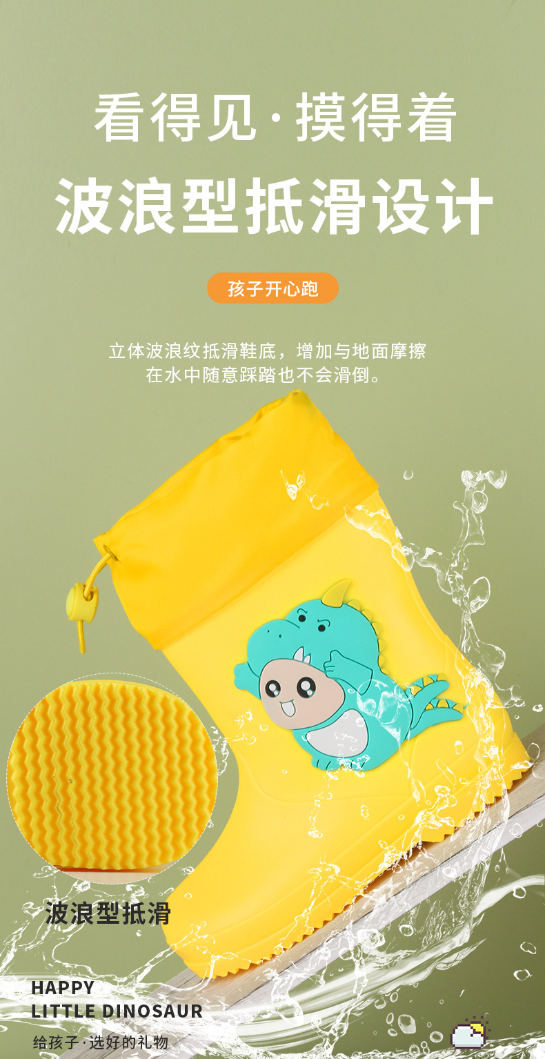 만화 어린이 레인 부츠 귀여운 작은 공룡 탄성 미드 튜브 레인 부츠 미끄럼 방지 초등학교 어린이 유치원 레인 부츠 레인 부츠스토어 가기