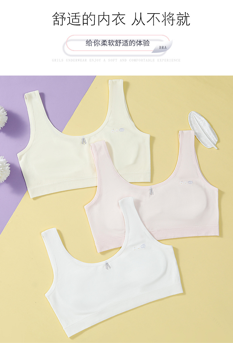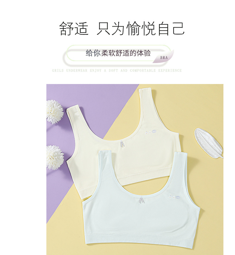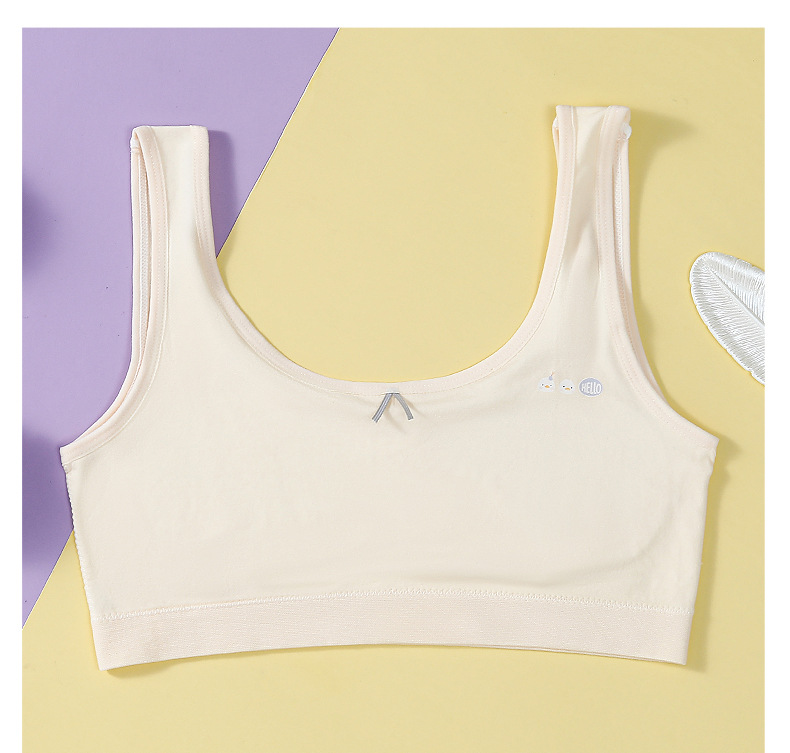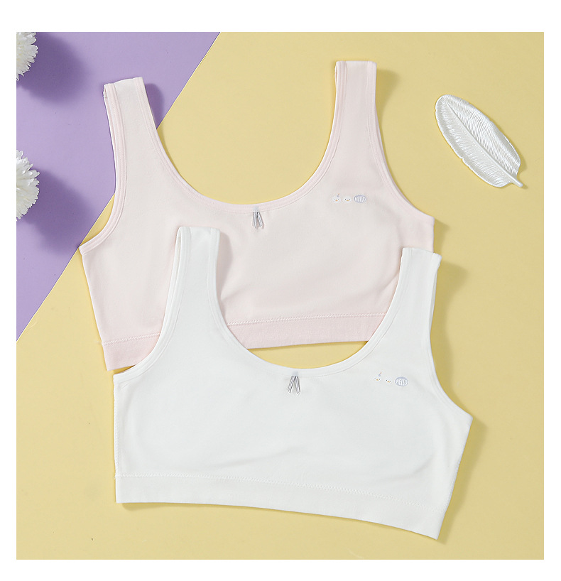 발달기 소녀용 심리스 브라, 돌출 방지 라텍스 패드, 귀여운 스타일, 편안한 스포츠 브라, 어린애 같은 만화 디자인
