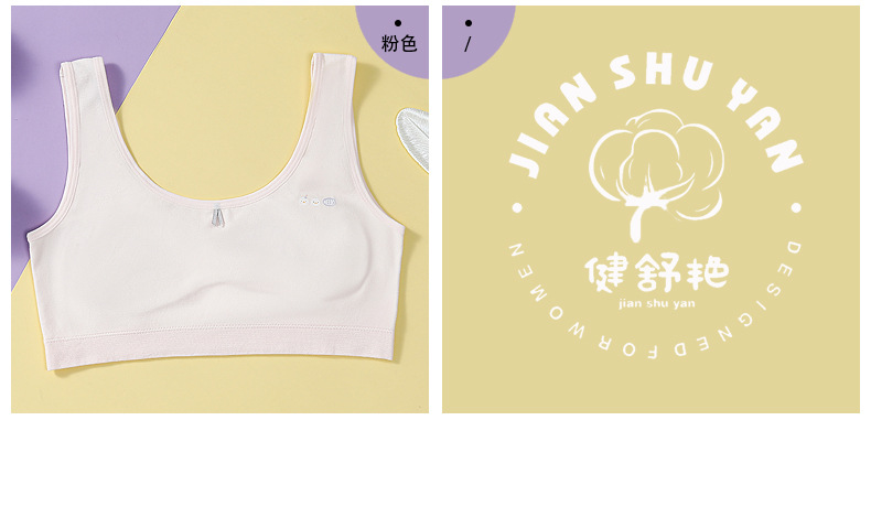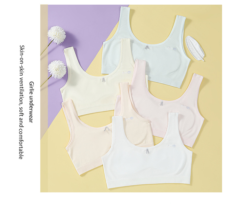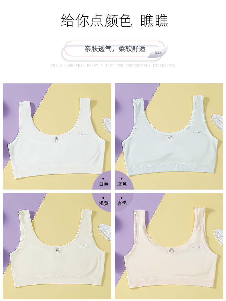 발달기 소녀용 심리스 브라, 돌출 방지 라텍스 패드, 귀여운 스타일, 편안한 스포츠 브라, 어린애 같은 만화 디자인스토어 가기