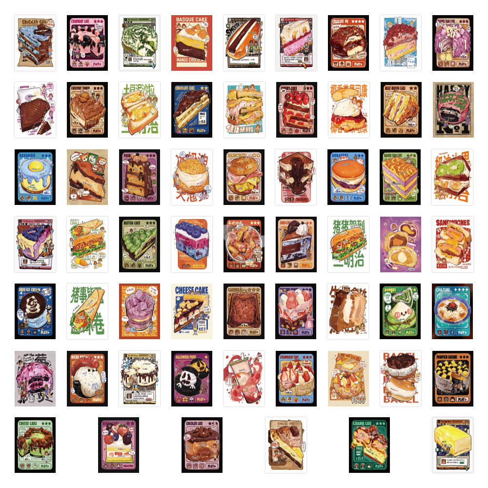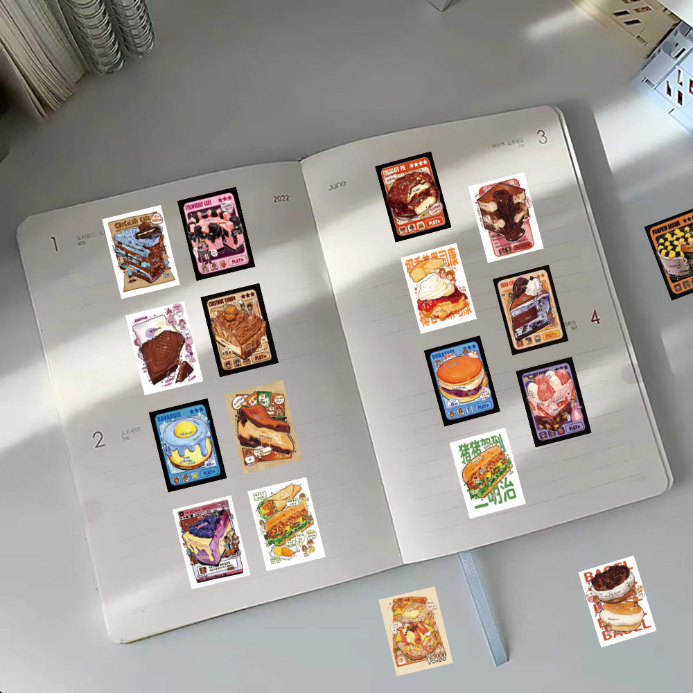 60 손으로 그린 디저트 포스터 스티커 빵 샌드위치 창조적 인 장식 노트북 문구 손 계정 스티커 도매스토어 가기