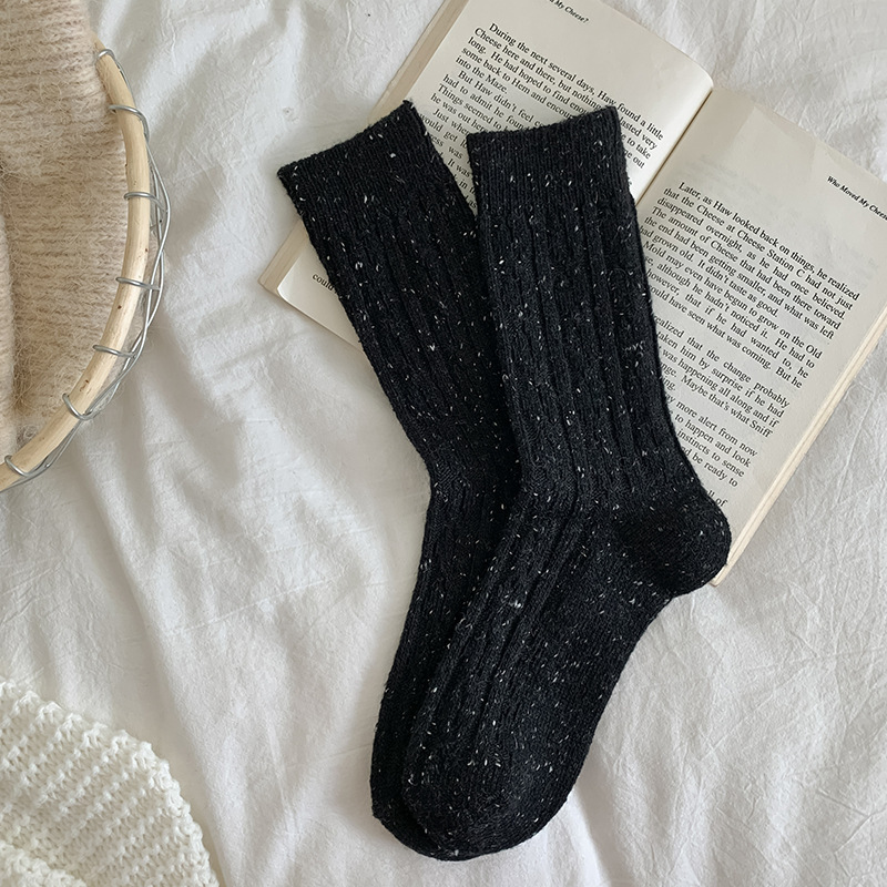 가을과 겨울 일본식 단색 모든 매치 파일 스타킹 여성용 포인트 원사 대마 패턴 울 양말 겨울 두꺼운 따뜻한 스타킹