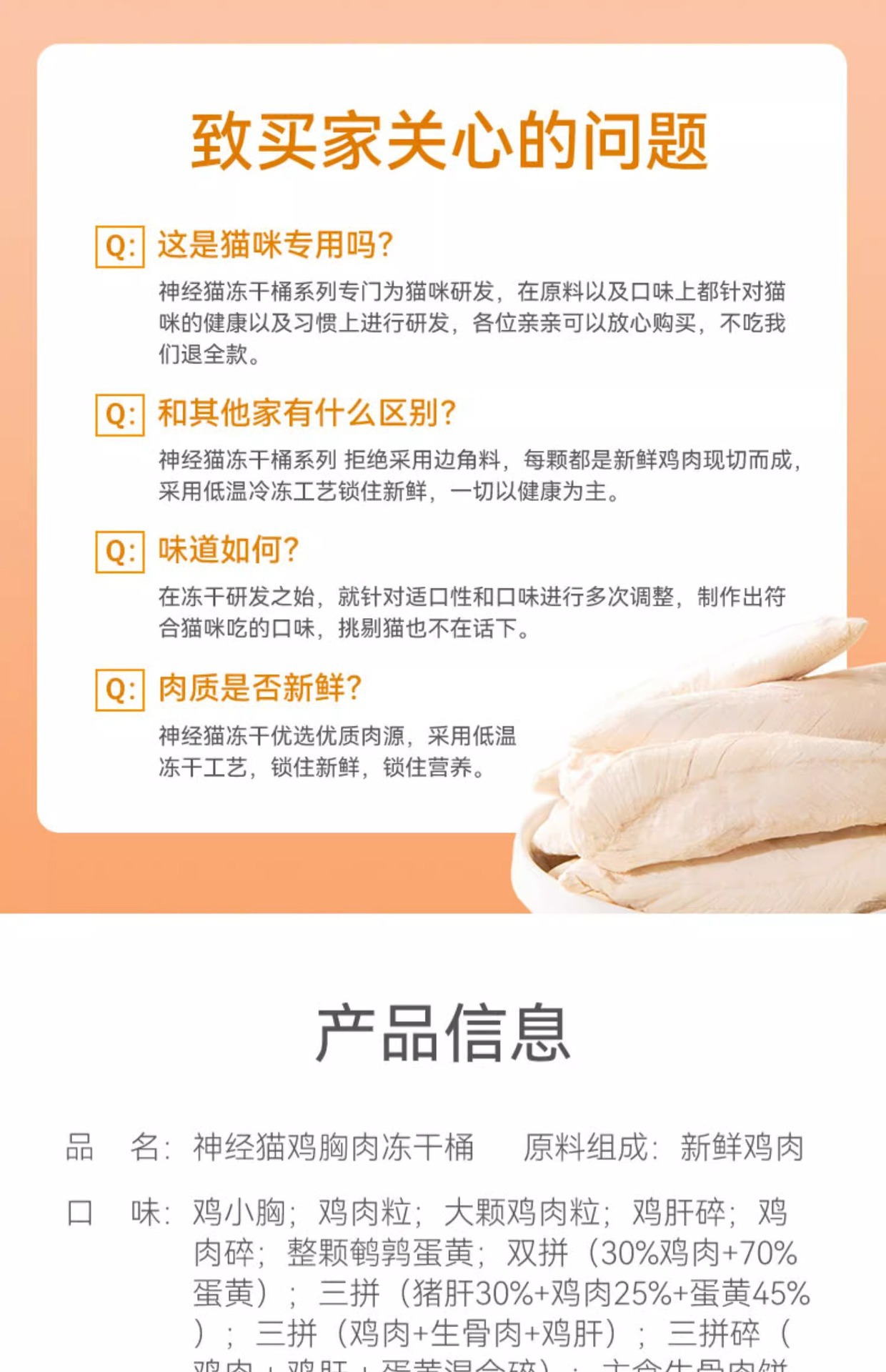 • 닭고기 + 달걀 노른자 이중 동결 건조 순 중량 460g