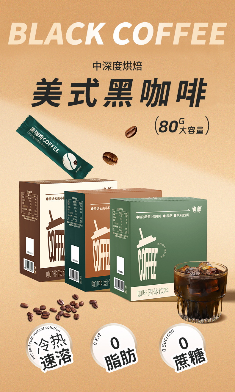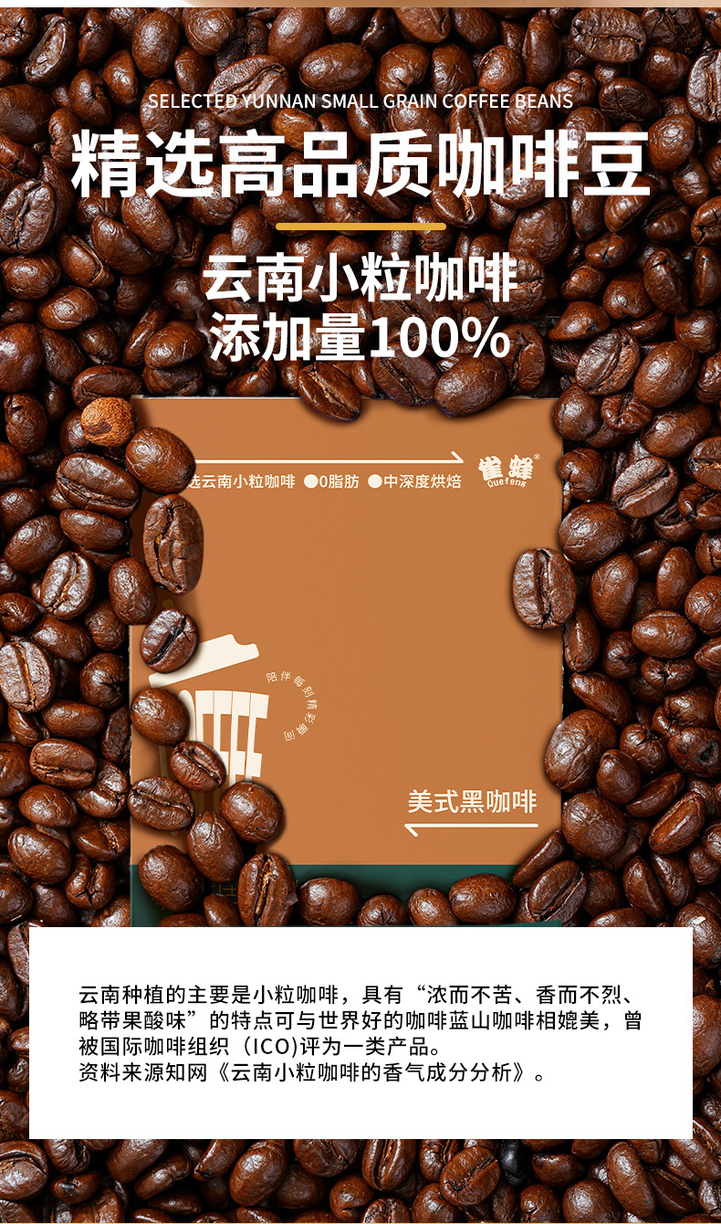 严选黑咖啡0脂云南小粒速溶咖啡条装冷热双泡运动健身美式咖啡粉啡0脂0糖云南小粒速溶咖啡条装冷热双泡运动美式咖啡批发