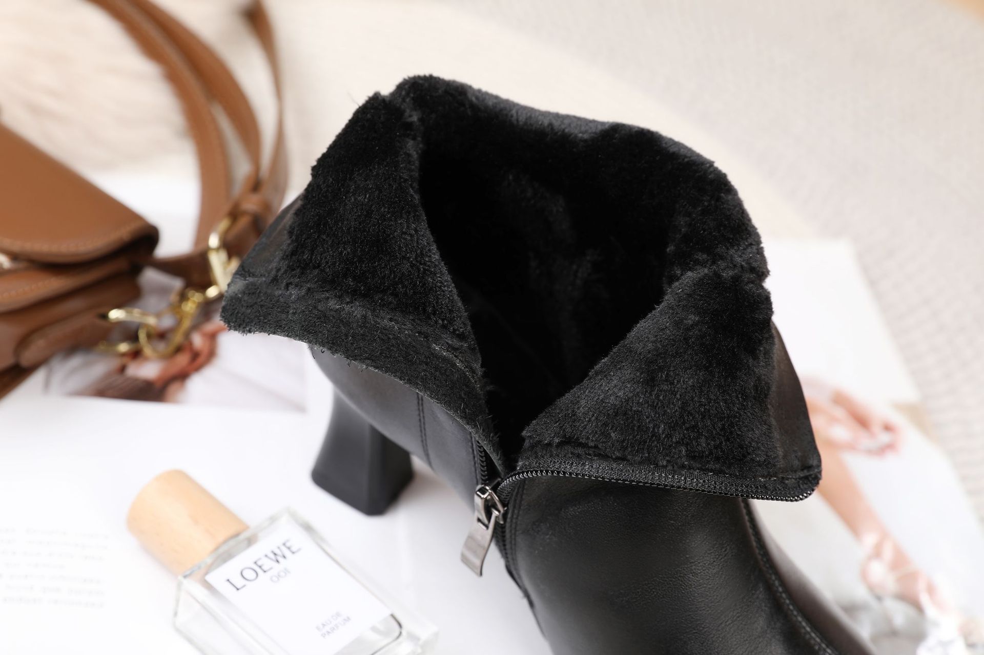 굽 높은 신발 디자인 감각 얇은 면화 부츠 여성 23 년 새로운 가을 짧은 부츠 뾰족한 스틸레토 힐 겨울 기모 플러스 사이즈 면화 부츠스토어 가기