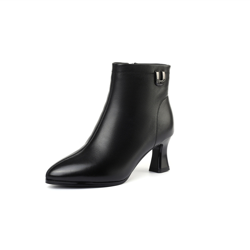굽 높은 신발 디자인 감각 얇은 면화 부츠 여성 23 년 새로운 가을 짧은 부츠 뾰족한 스틸레토 힐 겨울 기모 플러스 사이즈 면화 부츠
