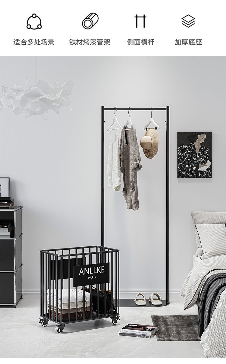 바닥 걸이 작은 간단한 이동식 더러운 옷 바구니 통합 다기능 수납 바구니 침실 코트 랙