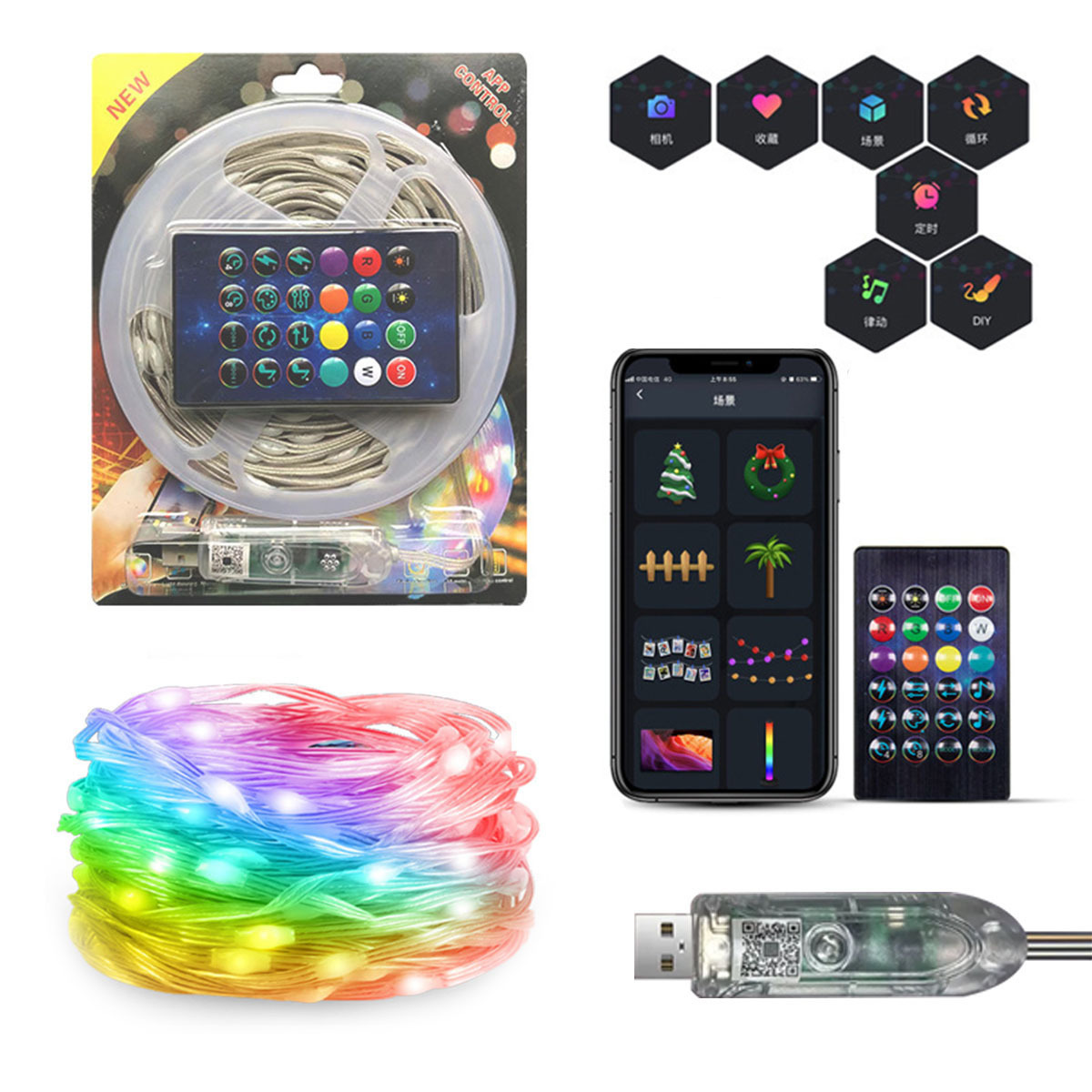 국경 지능형 포인트 제어 가죽 와이어 램프 RGB 매직 컬러 usb 램프 문자열 스타 램프 실내 및 실외 축제 장식 문자열 램프