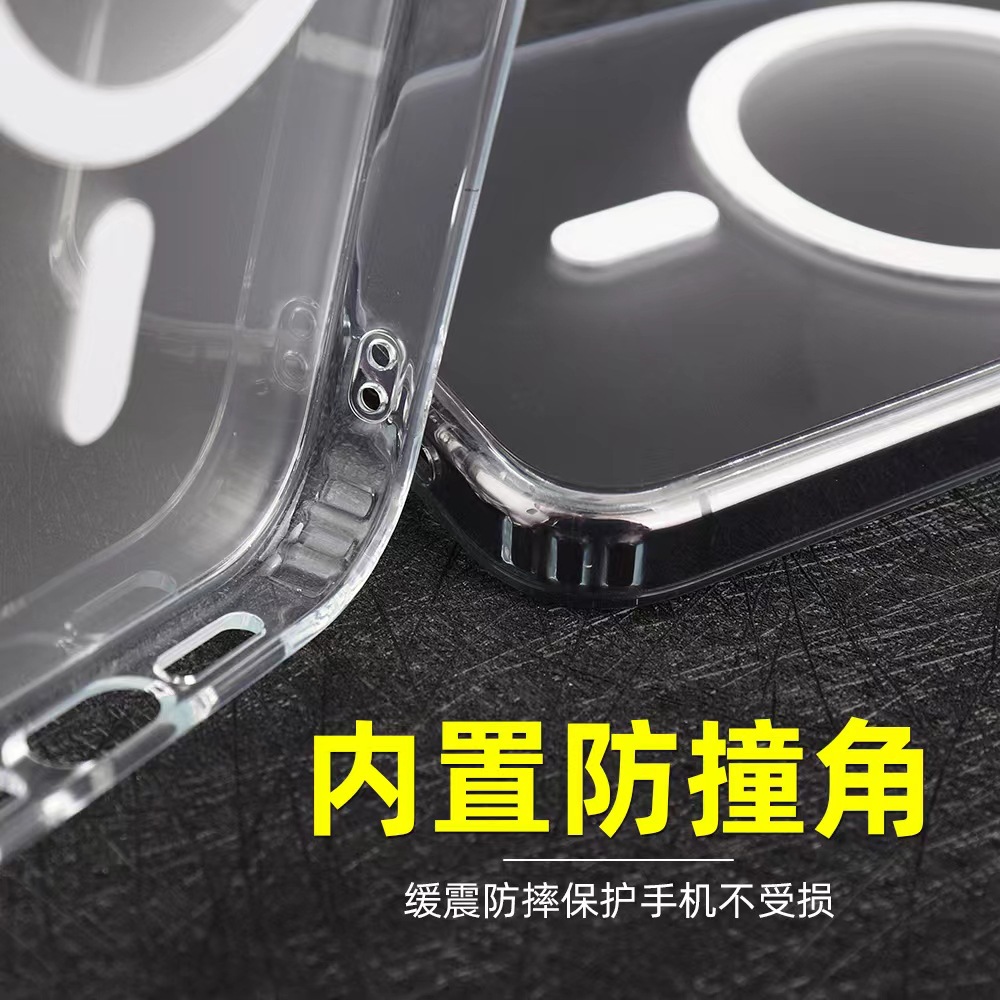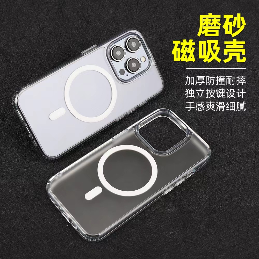 iPhone17Pro 반투명 휴대폰 케이스에 적합 16Promax 자기 흡입 15plus 소프트 에지 하드 바닥 보호 케이스스토어 가기