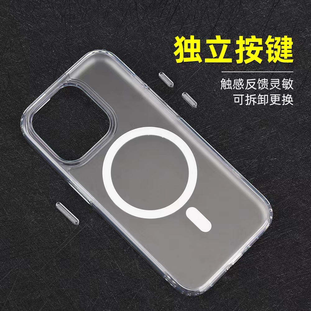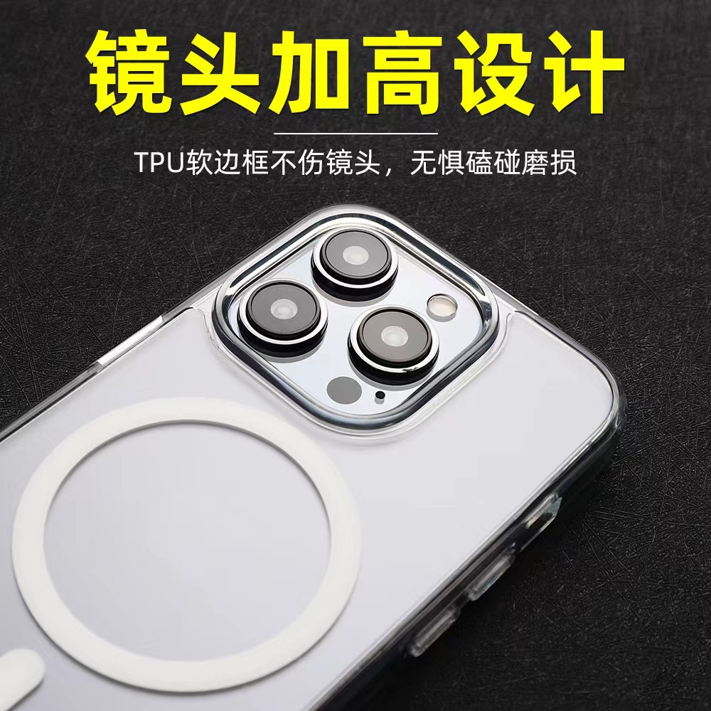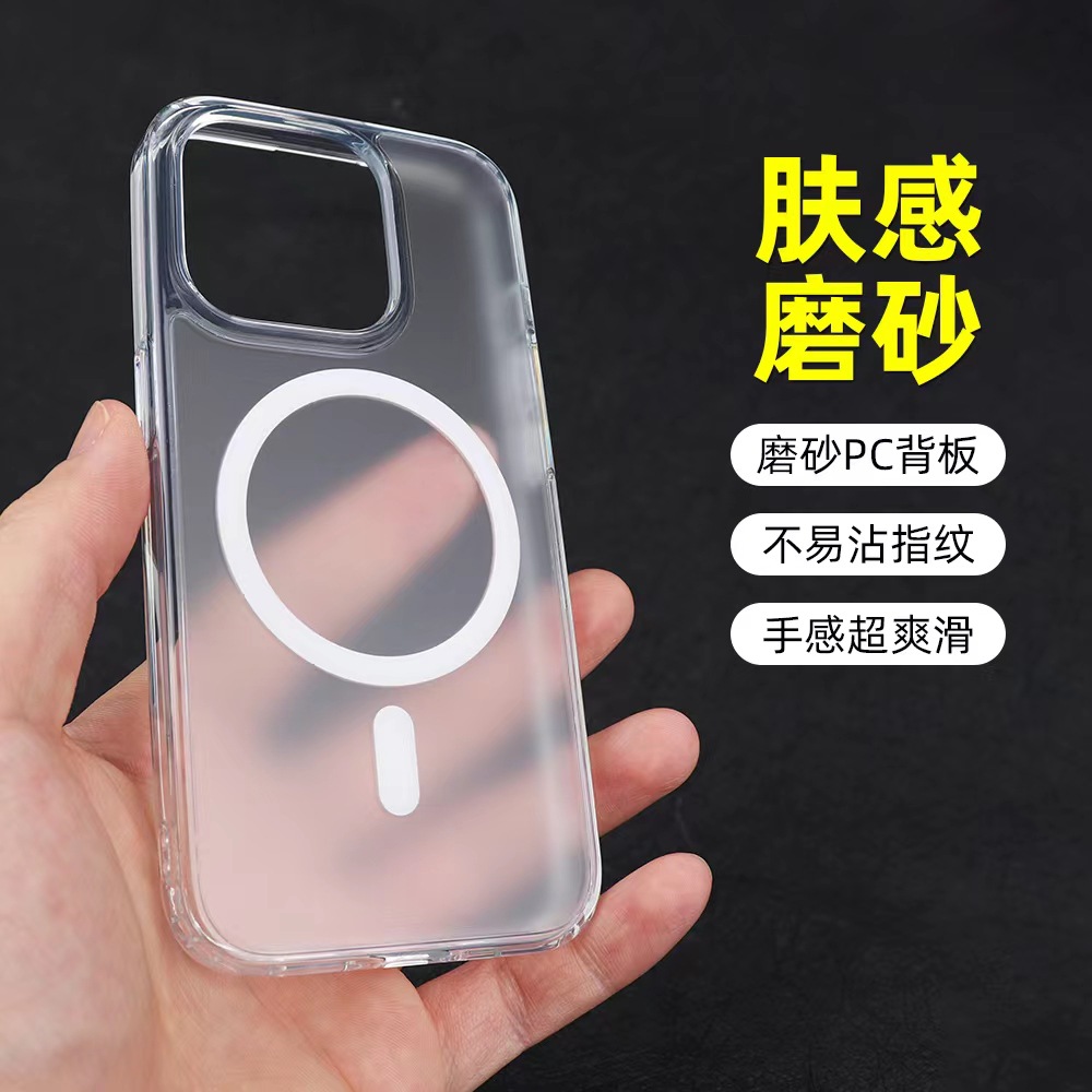 iPhone17Pro 반투명 휴대폰 케이스에 적합 16Promax 자기 흡입 15plus 소프트 에지 하드 바닥 보호 케이스