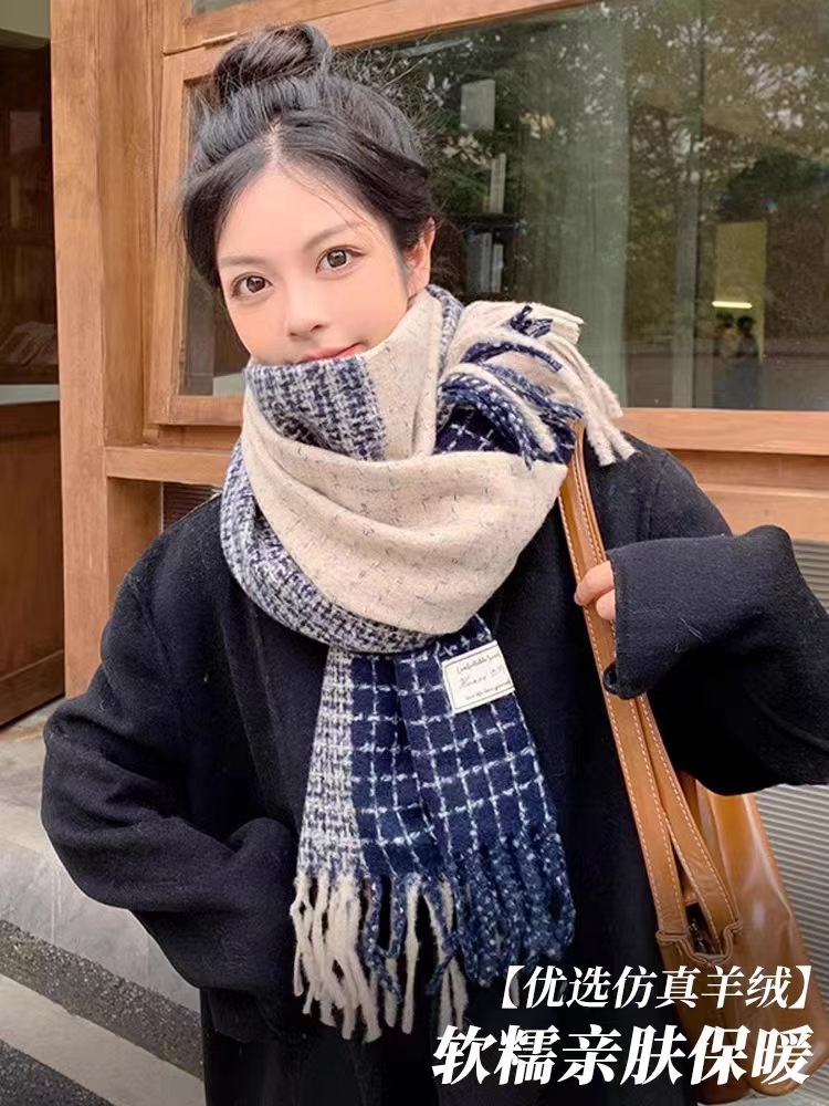 2023 새로운 가을과 겨울 하이 엔드 센스 격자 무늬 스카프 여성의 따뜻한 연장 커플 스카프 한국 스타일 영국 스타일 숄스토어 가기