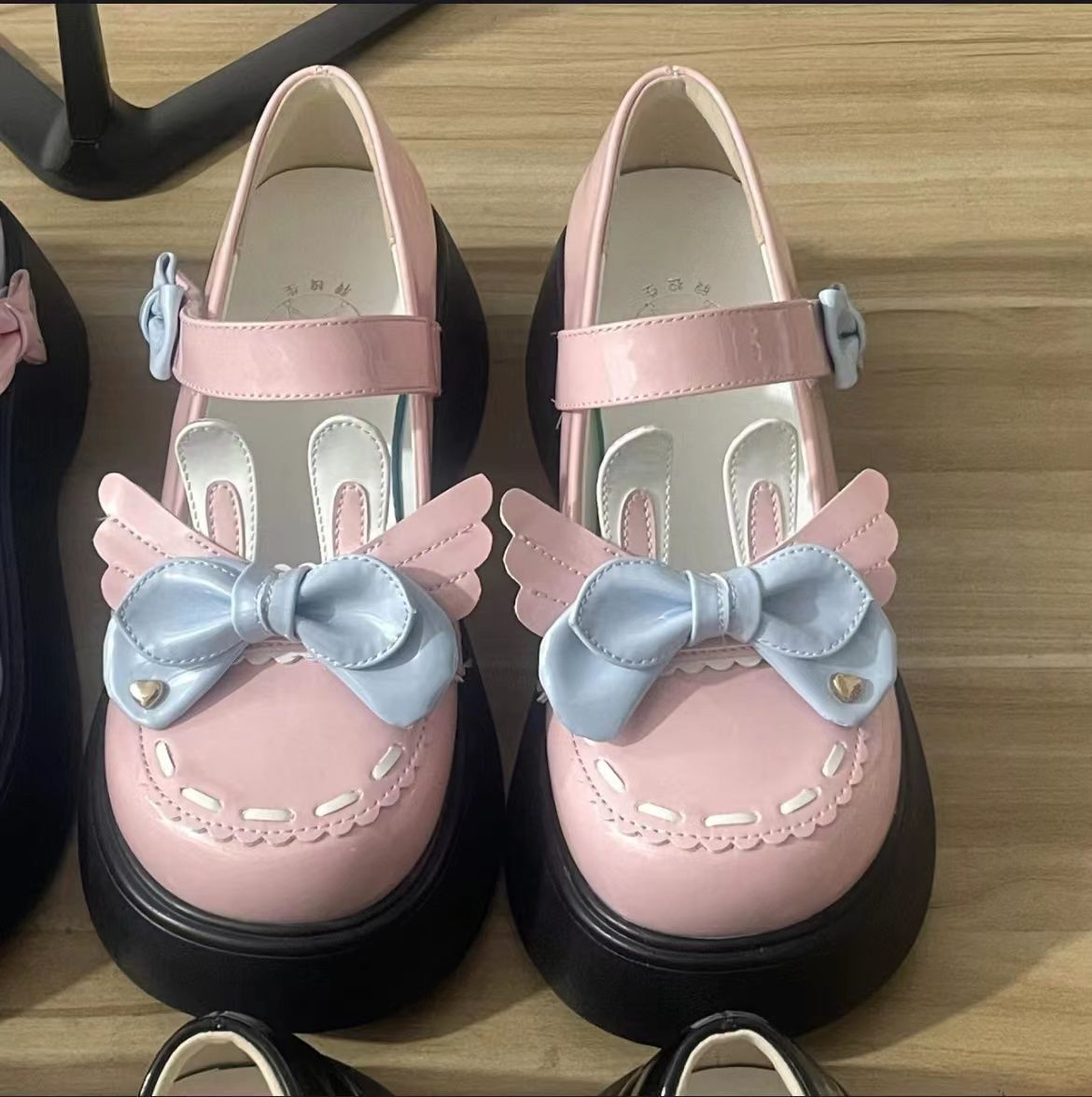 로리타 소프트 걸 귀여운 활 작은 가죽 신발 여성용 2023 새로운 일본 jk 두꺼운 밑창 메리 제인 여성 신발스토어 가기