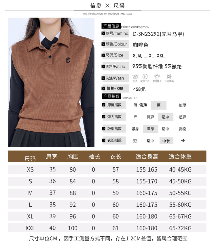다크 브라운 골프 여자 새로운 민소매 조끼 가을과 겨울 슬림 핏 조끼 따뜻한 탑 코트 주름 치마