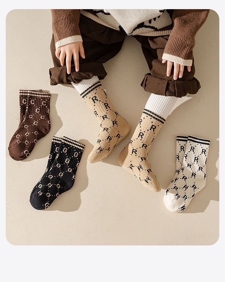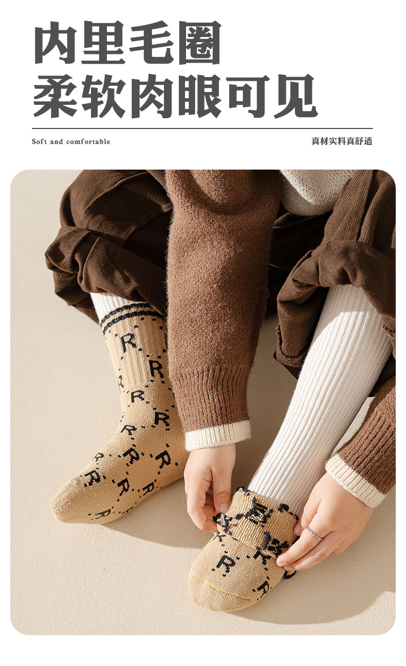 어린이 양말 가을 겨울 한국 스타일 트렌디 양말 두꺼운 중간 길이 남아 여아 학생 스포츠 양말 도매 유아용