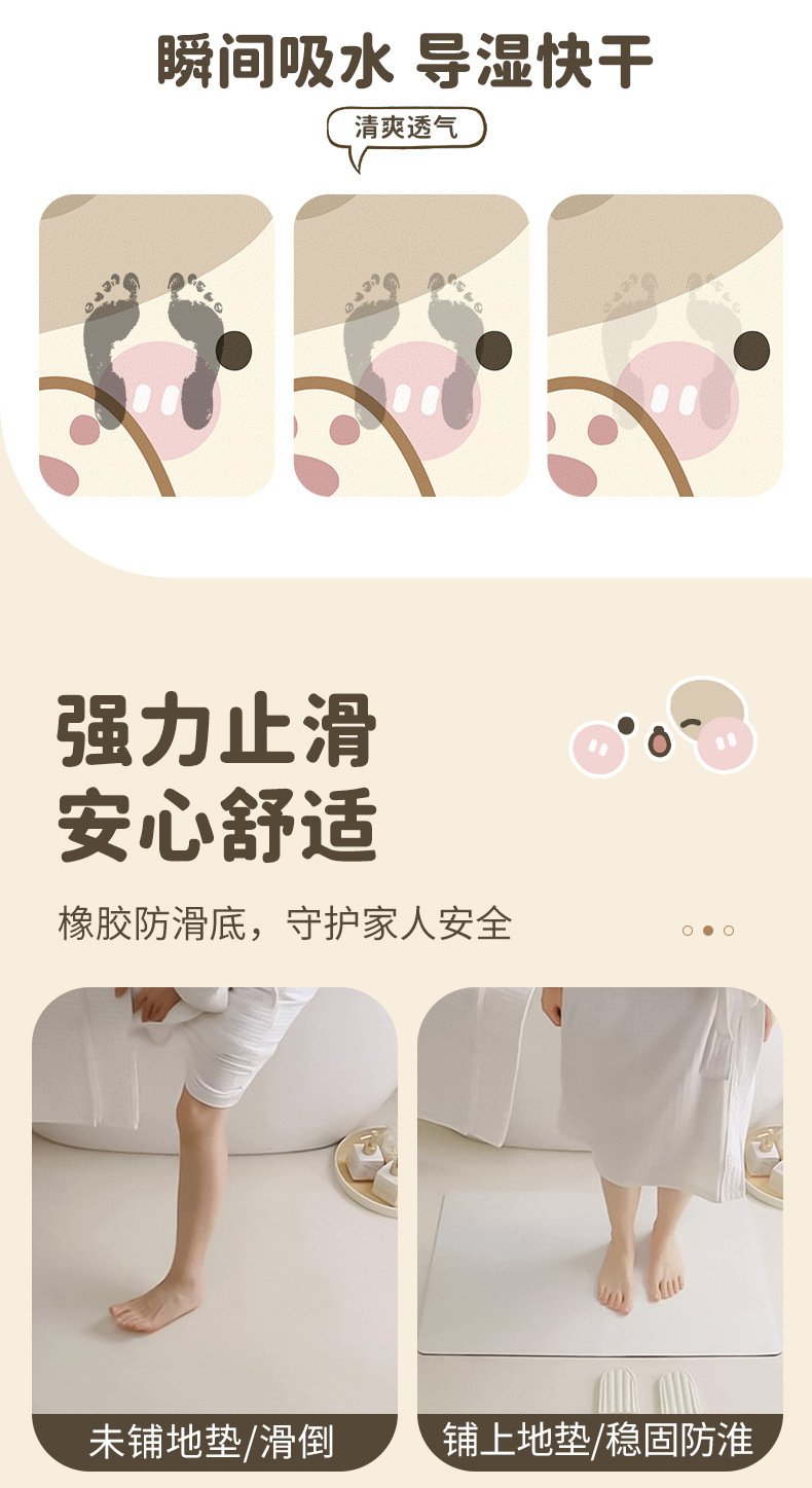 만화 화장실 미끄럼 방지 바닥 매트 가정용 흡수성 속건 더러움 방지 발 매트 머리카락을위한 규조 진흙 바닥 매트 청소하기 쉬운