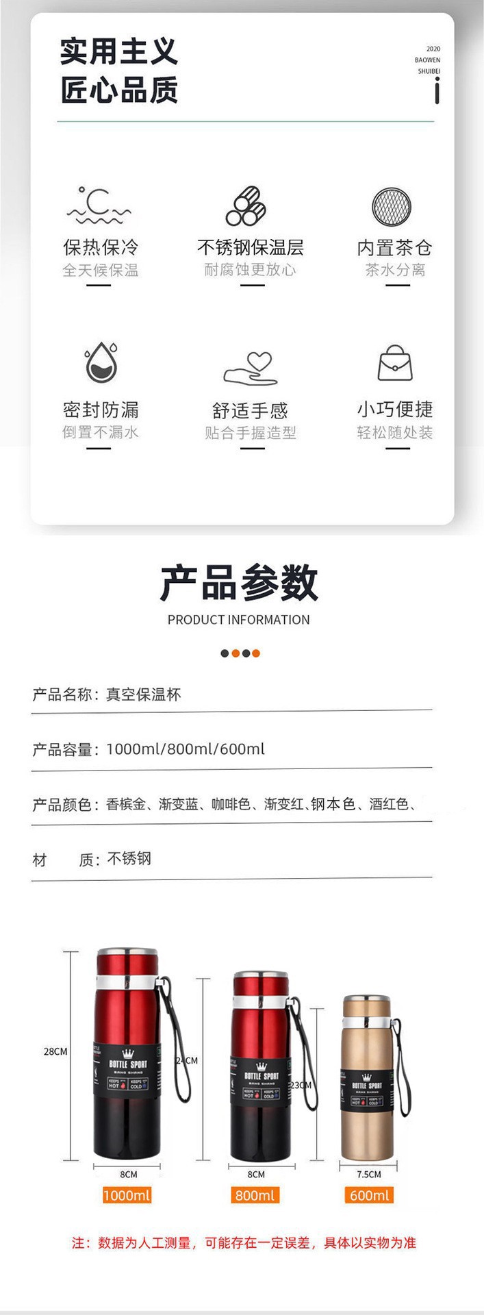 가을과 겨울 휴대용 로프 보온병 컵 316 스테인레스 스틸 야외 대용량 보온병 컵