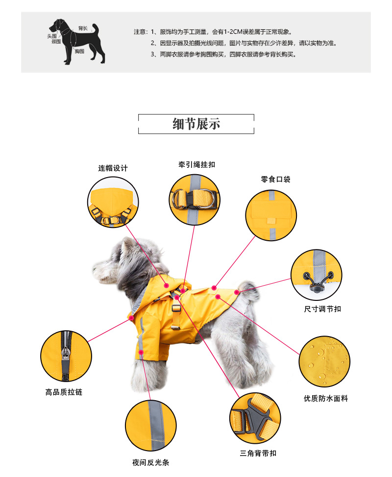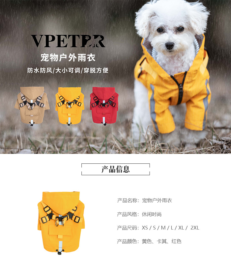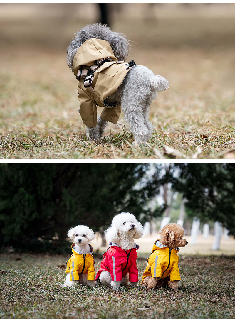 애완 동물 비옷 야외 개 방수 의류 강아지 비옷 곰 테디 개 옷 가슴과 등 통합 개 비옷