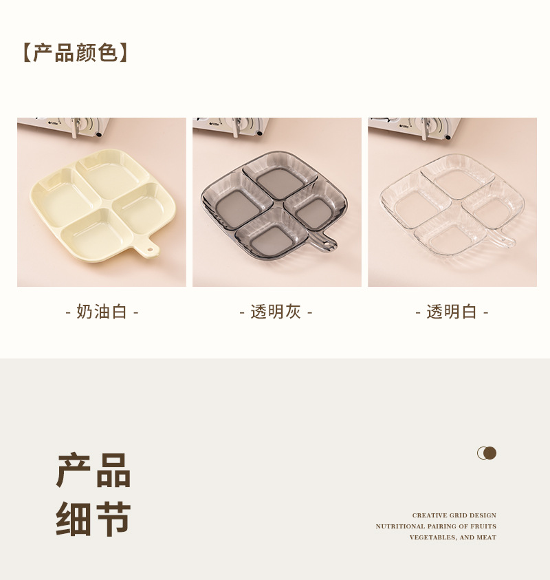 商品名称:带把手四分格配菜盘 零食水果盘 儿童餐盘--透白色