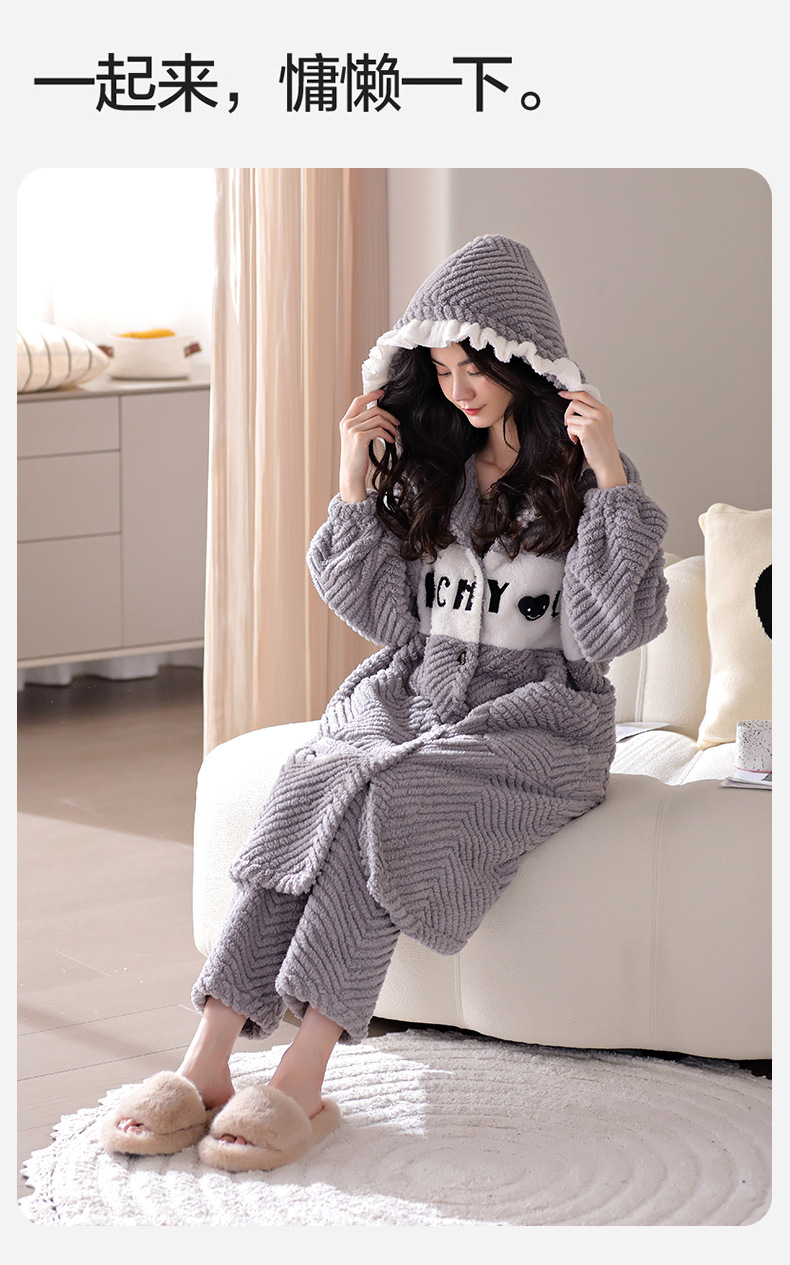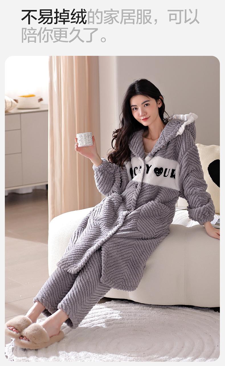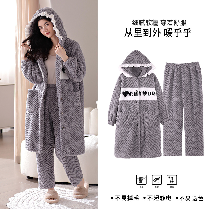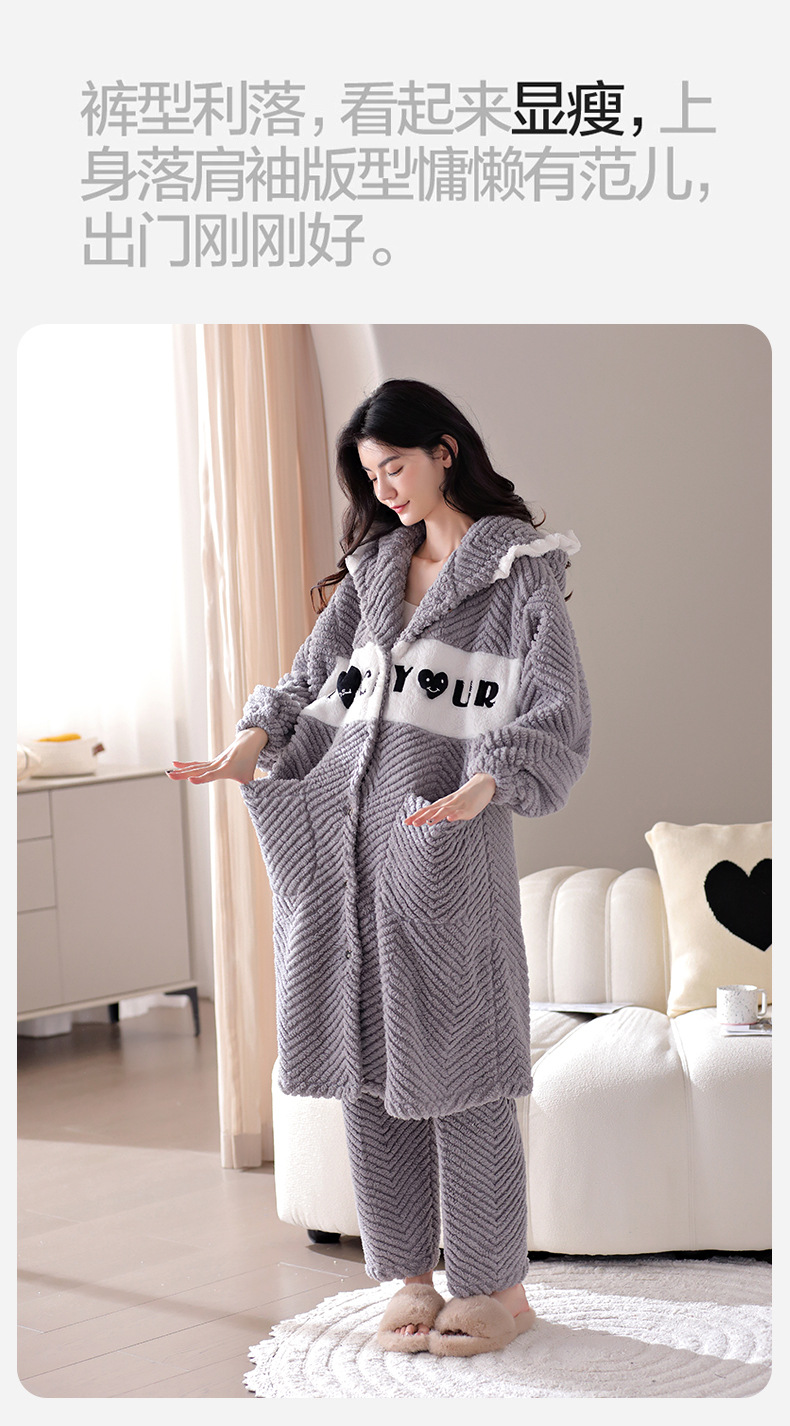 새로운 겨울 여성의 잠옷 플란넬 두꺼운 잠옷 긴 소매 바지 플러스 사이즈 캐주얼 세트 의류스토어 가기