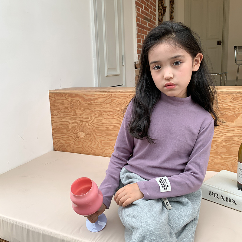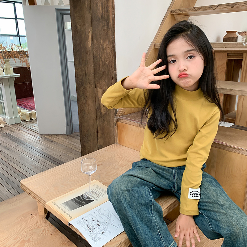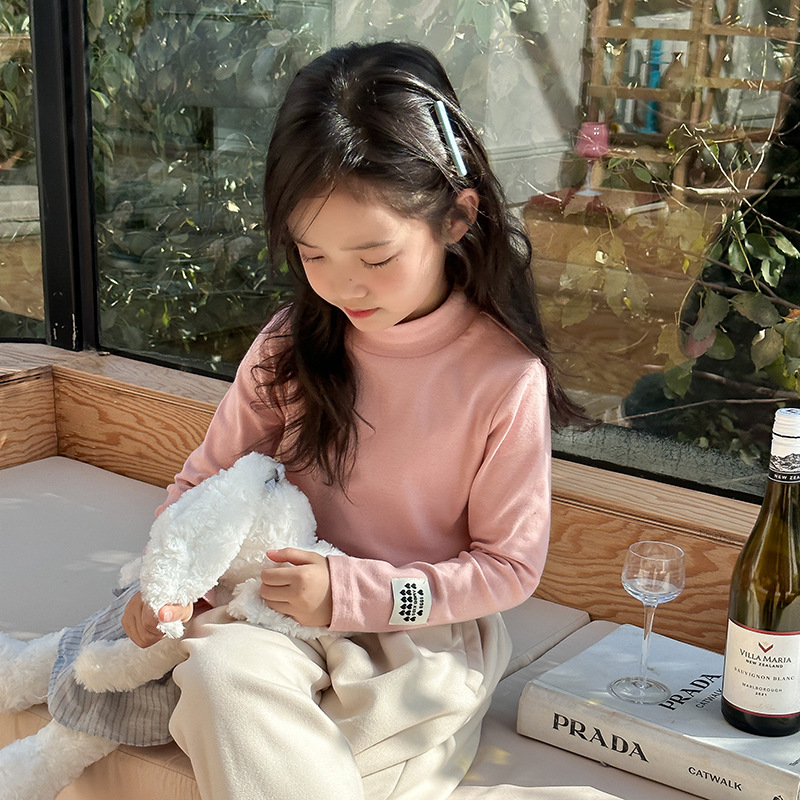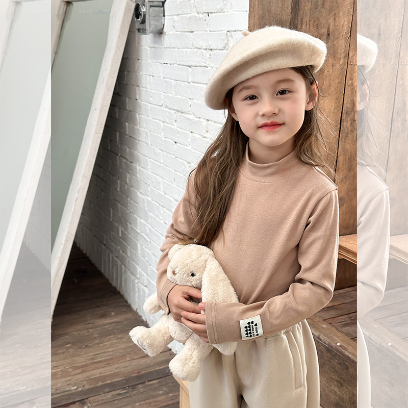 Emo Beibei 2023 가을 겨울 아동복 아동 울 풀 랙 세미 하이 칼라 베이스 셔츠 여아 라벨 미드 칼라 탑