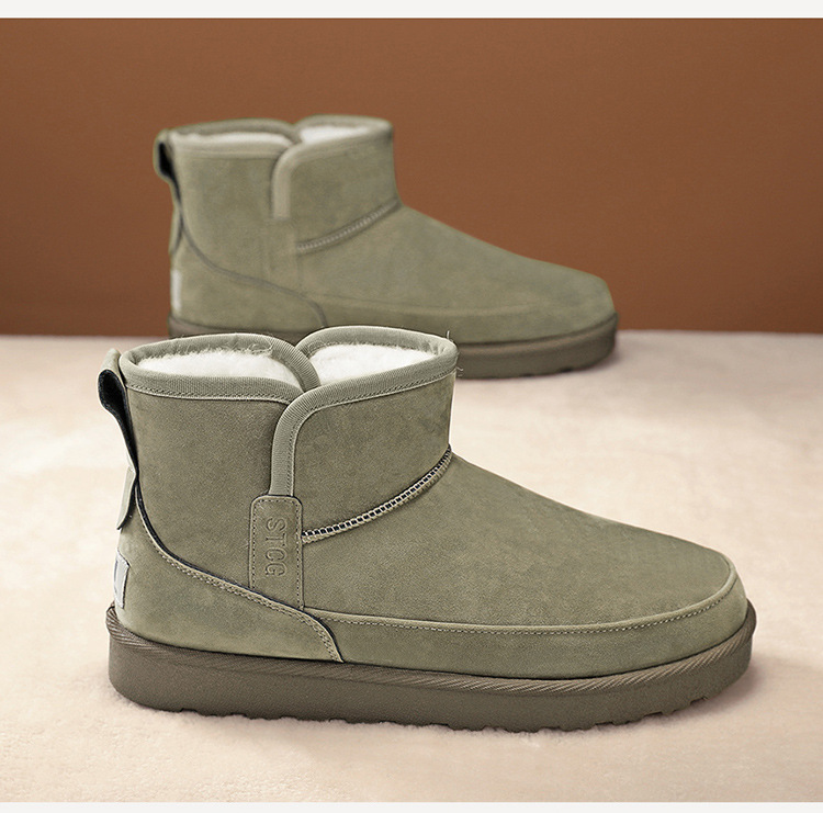 2024 년 겨울 새 패션 남성 슬리브 스노우 부츠 한국 스타일 야외 하이 탑 기모 남성용 따뜻한 코튼 슈즈