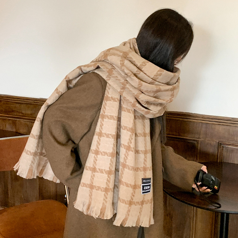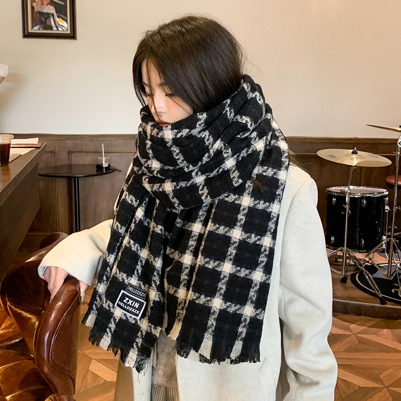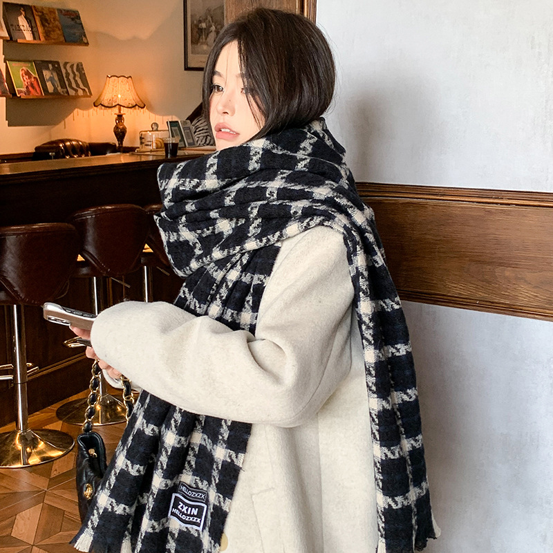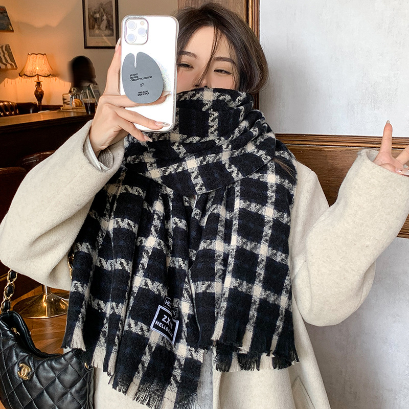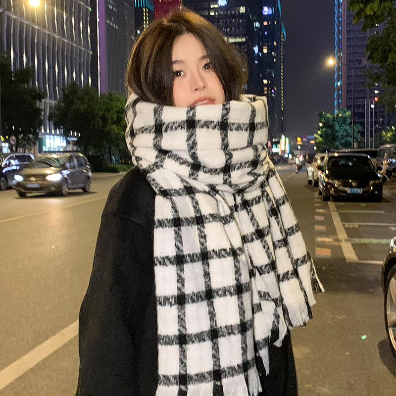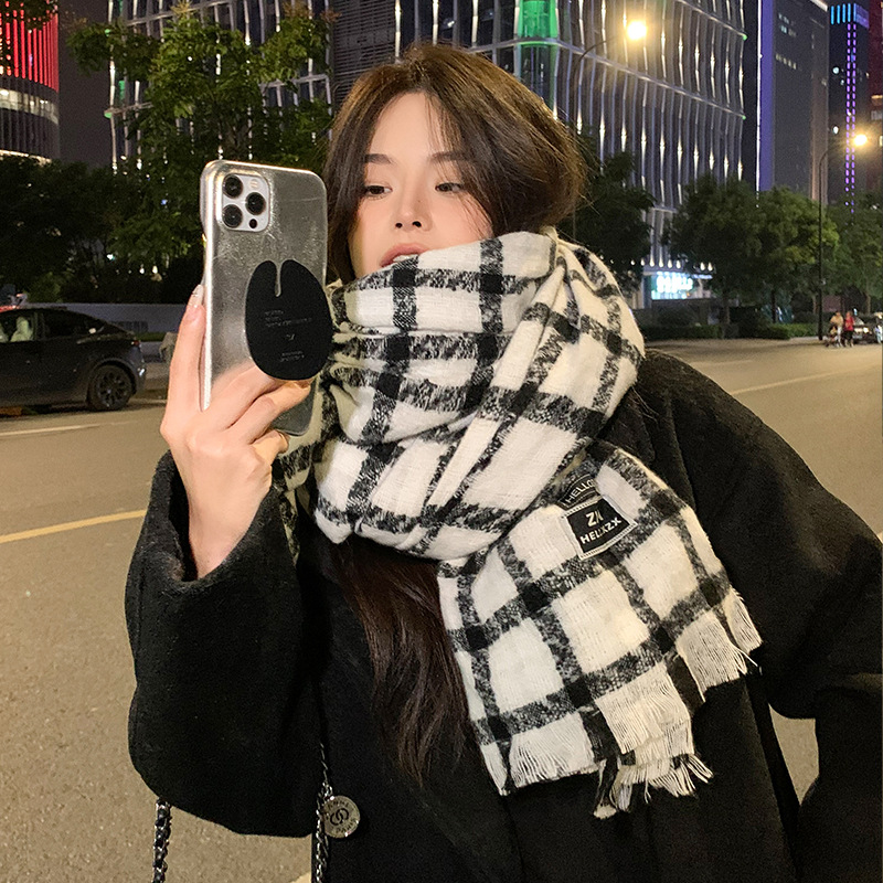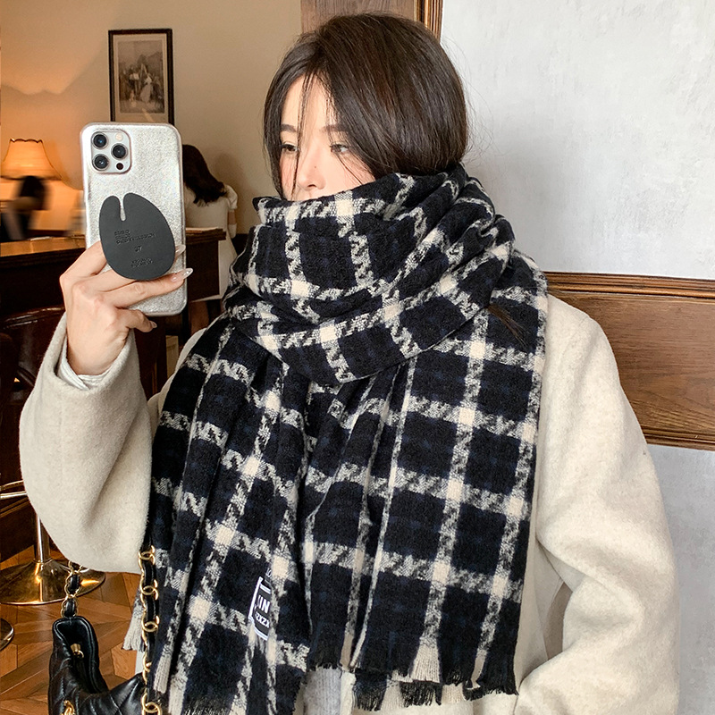 겨울 새로운 방한 따뜻한 목 보호 스카프 심플한 한국식 올매치 체크무늬 프린트 고급 분위기 특색있는 스카프스토어 가기