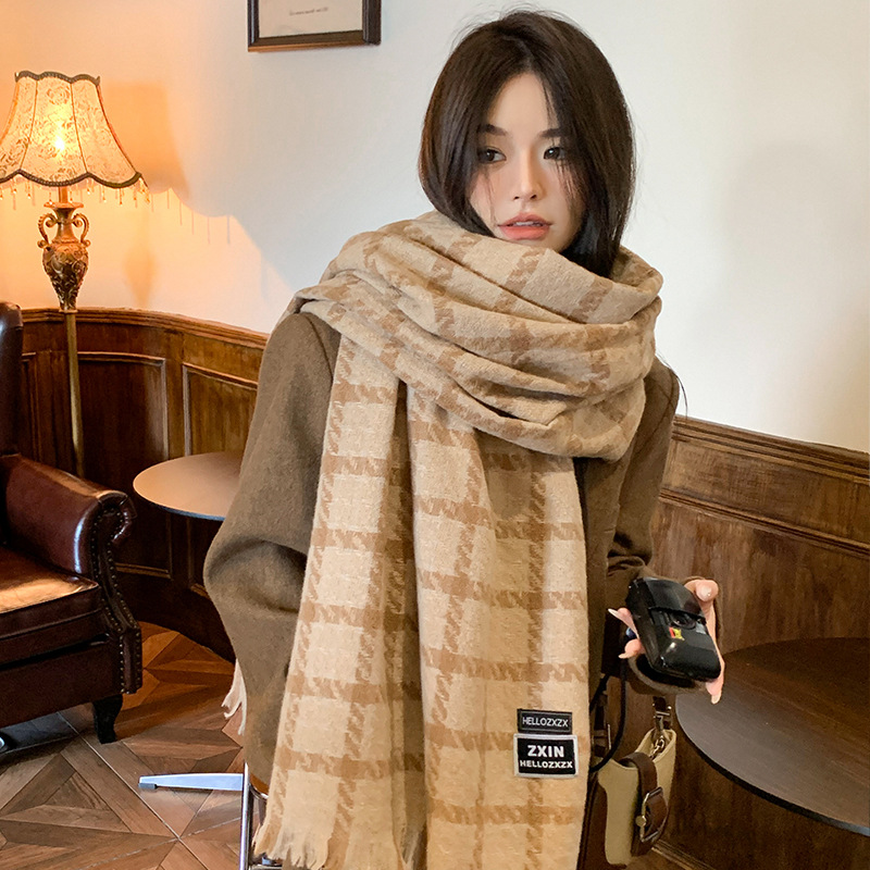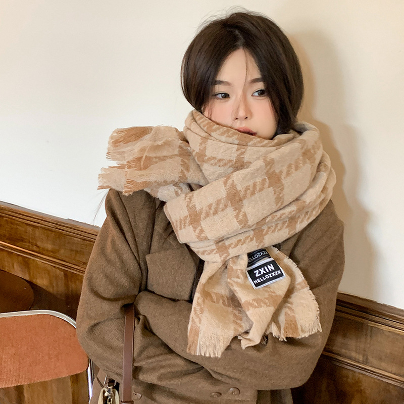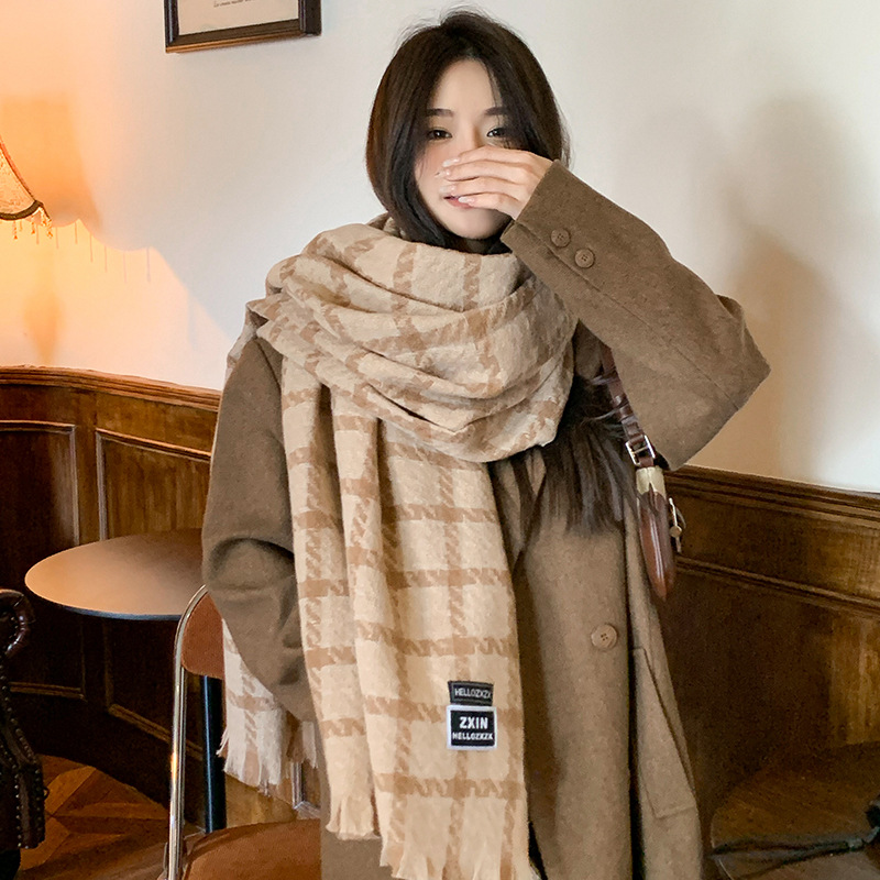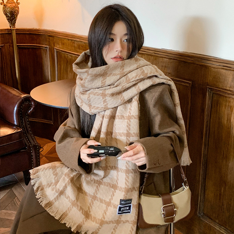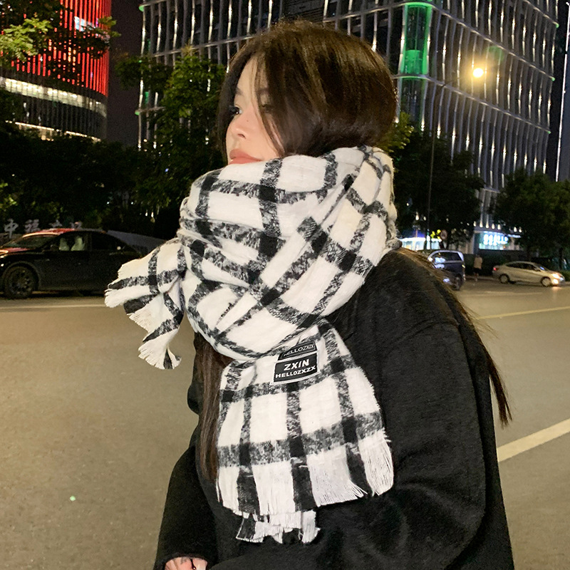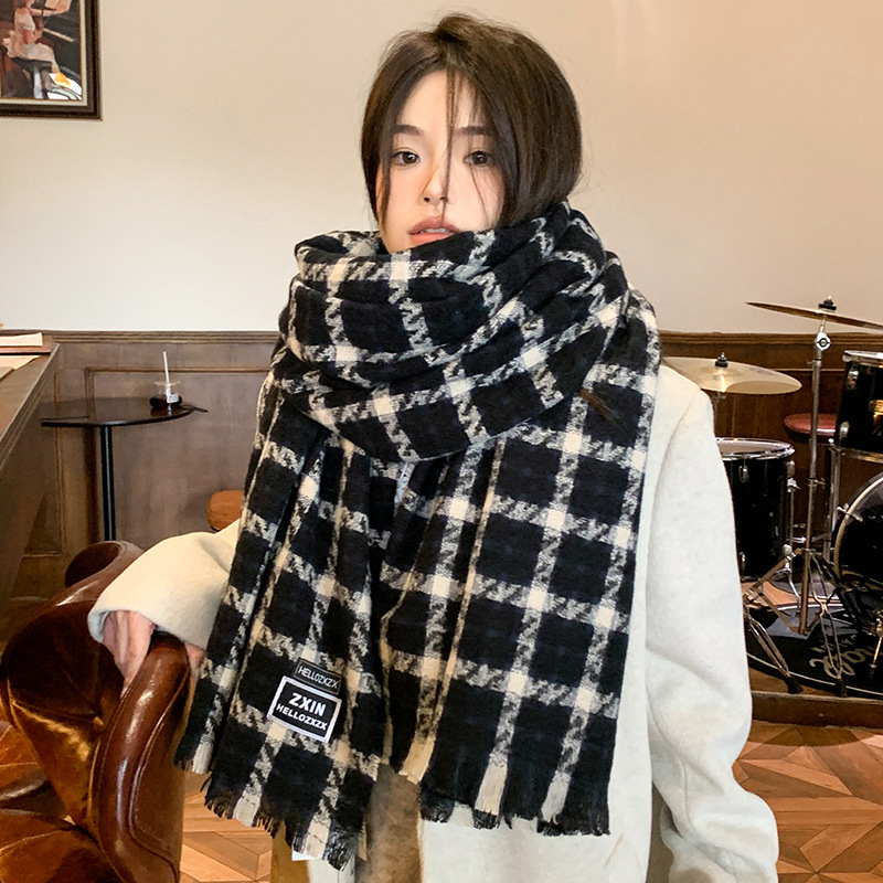 겨울 새로운 방한 따뜻한 목 보호 스카프 심플한 한국식 올매치 체크무늬 프린트 고급 분위기 특색있는 스카프스토어 가기
