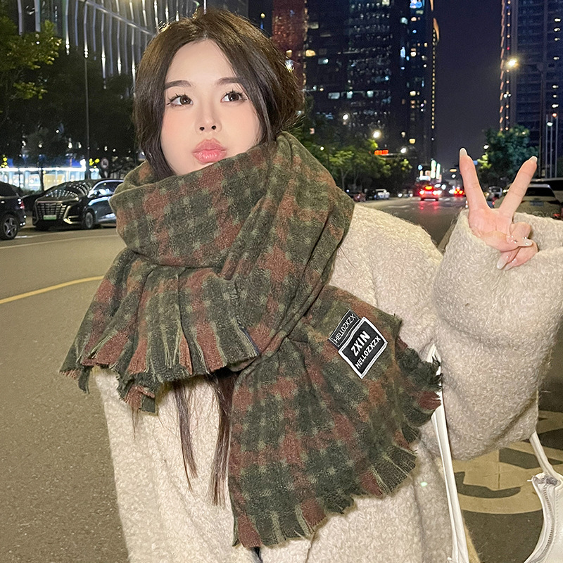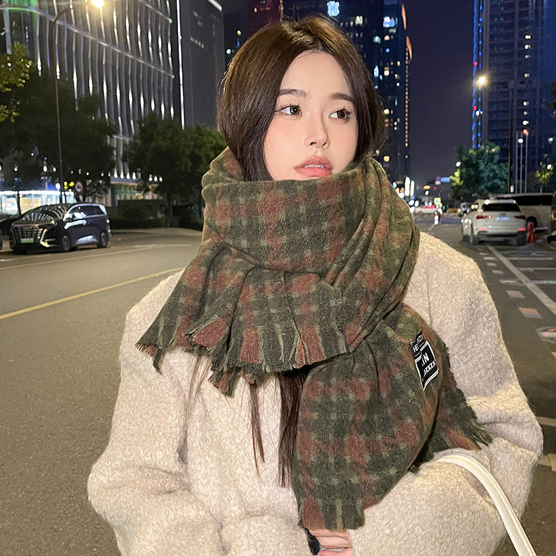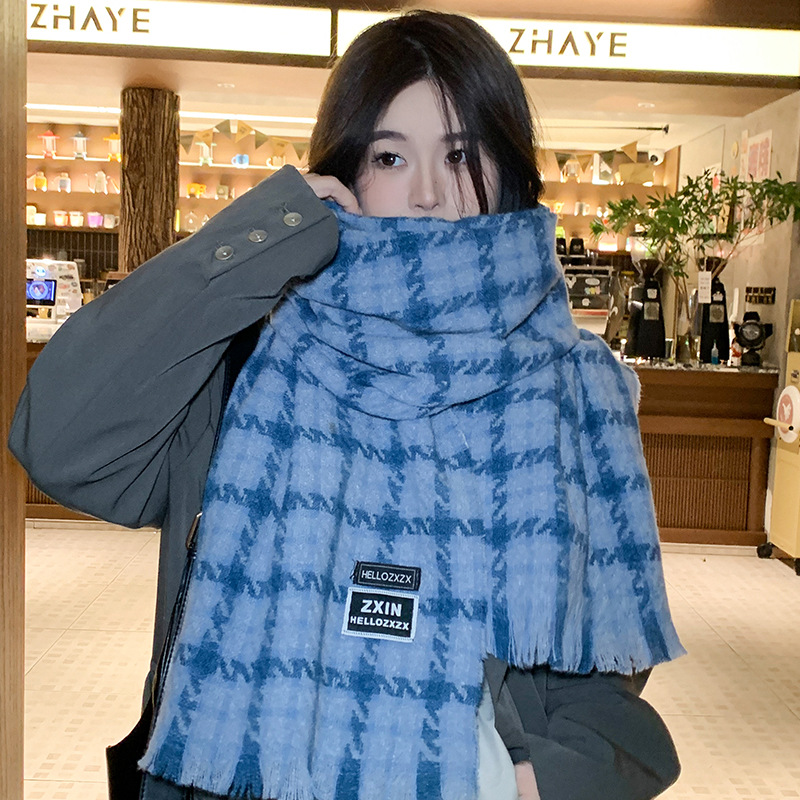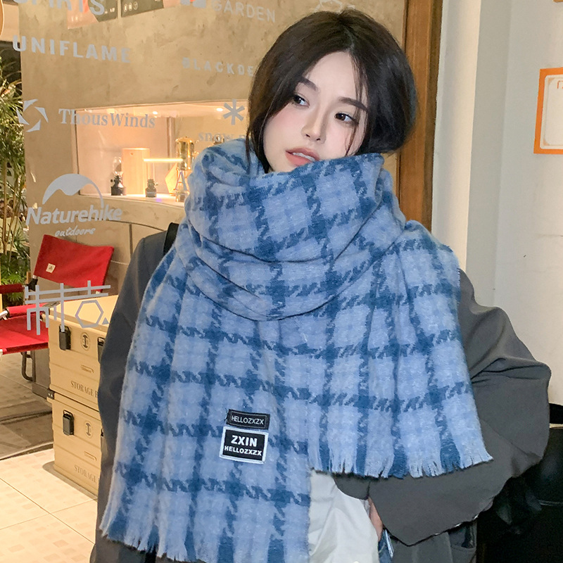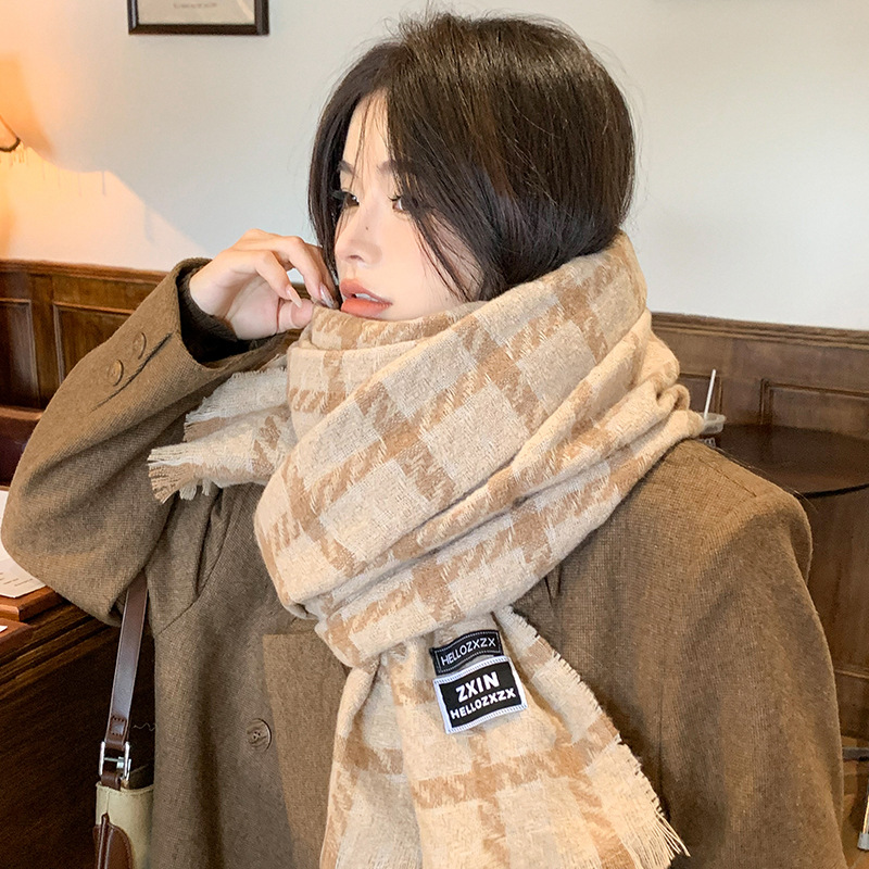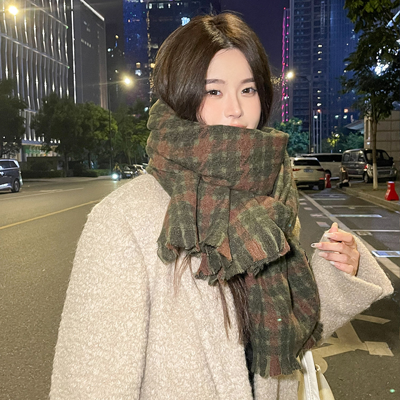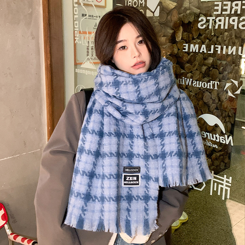 겨울 새로운 방한 따뜻한 목 보호 스카프 심플한 한국식 올매치 체크무늬 프린트 고급 분위기 특색있는 스카프스토어 가기